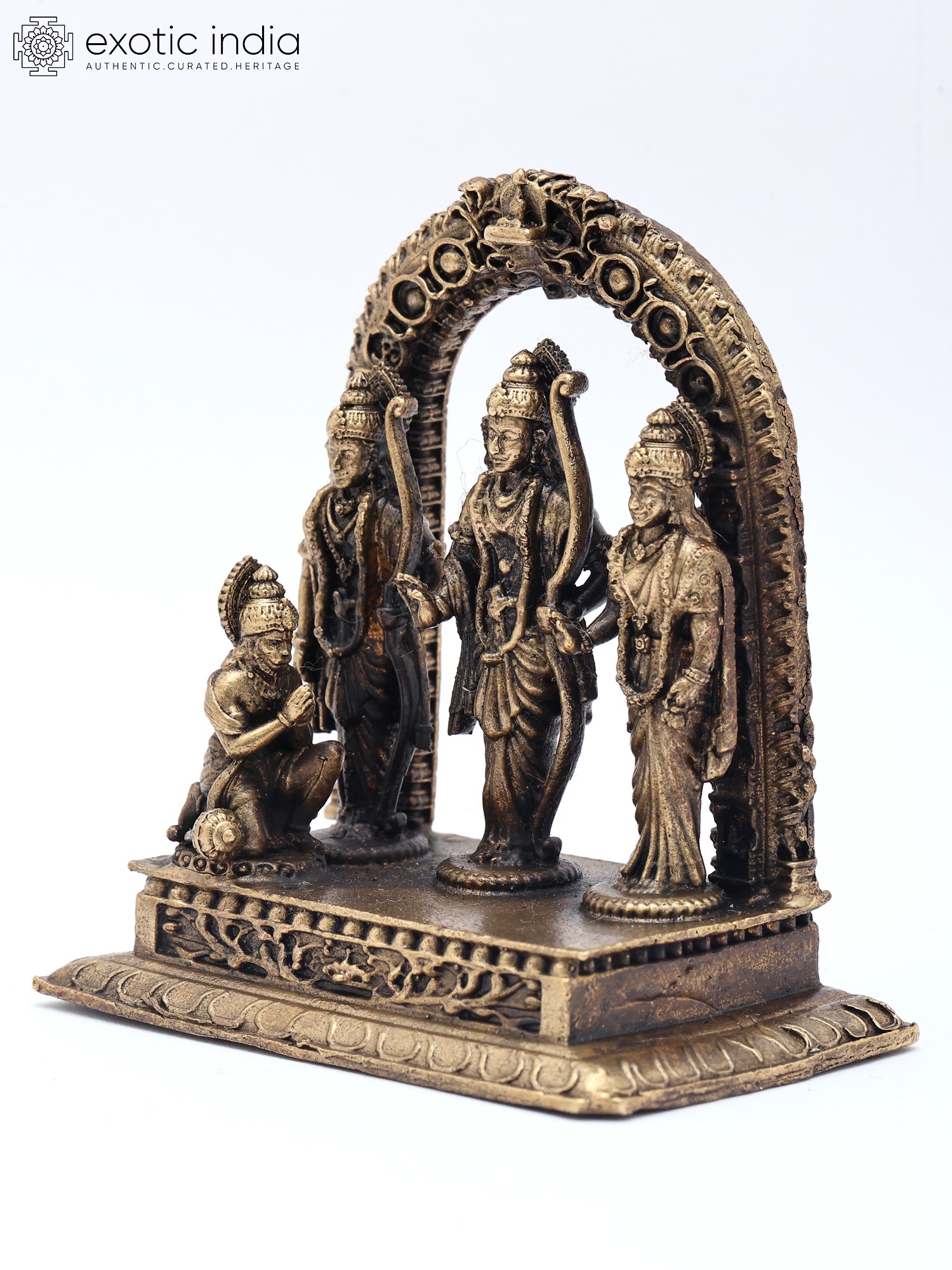 3" Small Ram Darbar - Family of Lord Ram with Bhakt Hanuman | Copper Statue | Made in India