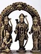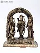 Observe the graceful posture of Lord Rama, poised with his divine bow, accompanied by the serene presence of Sita and the steadfast devotion of Hanuman. The overarching arch, adorned with delicate ornamentation, frames the figures in a way that enhances their presence. The rich, antique bronze finish lends an aura of timelessness, highlighting the subtle textures and flowing garments of each divine form.