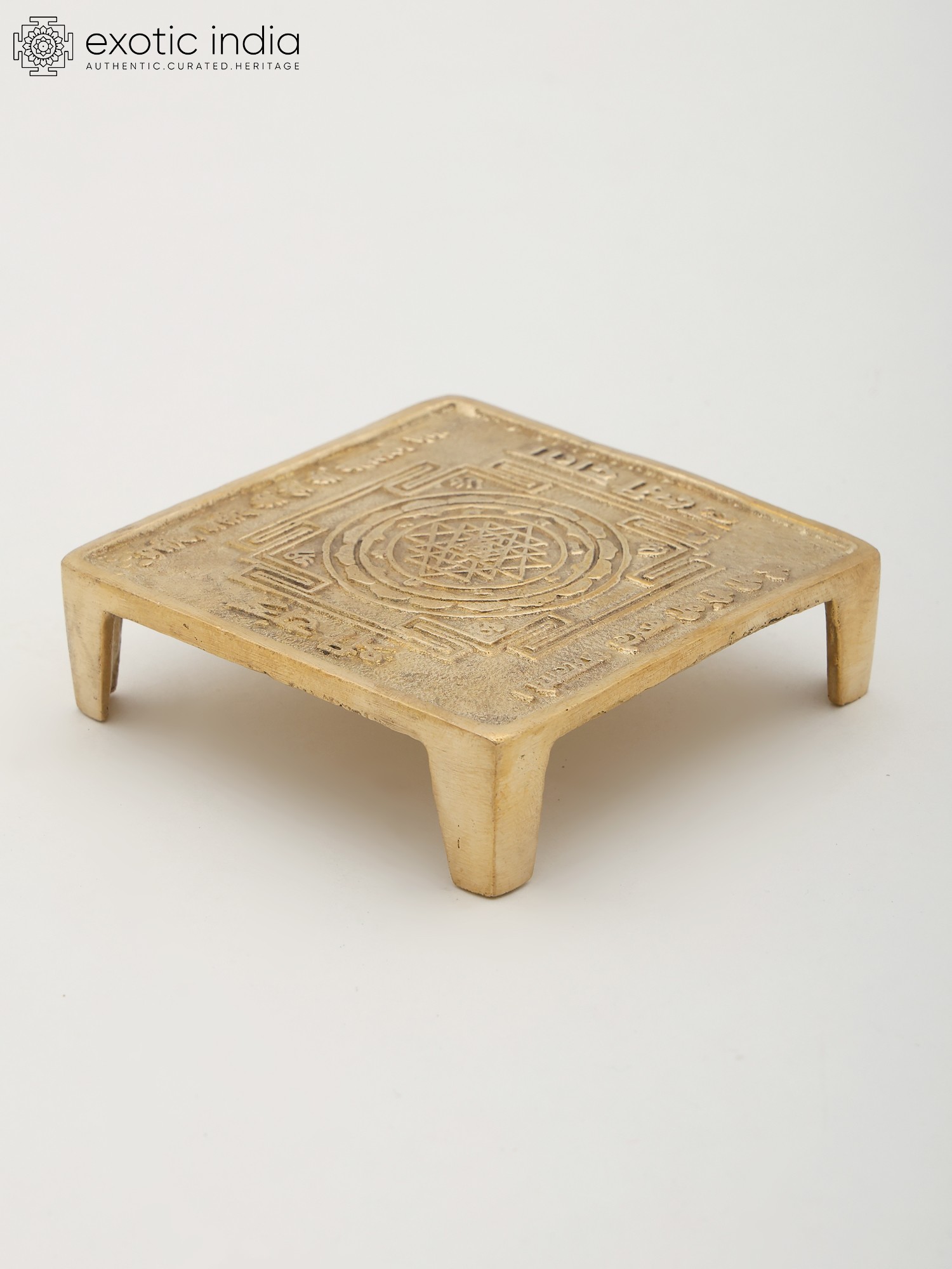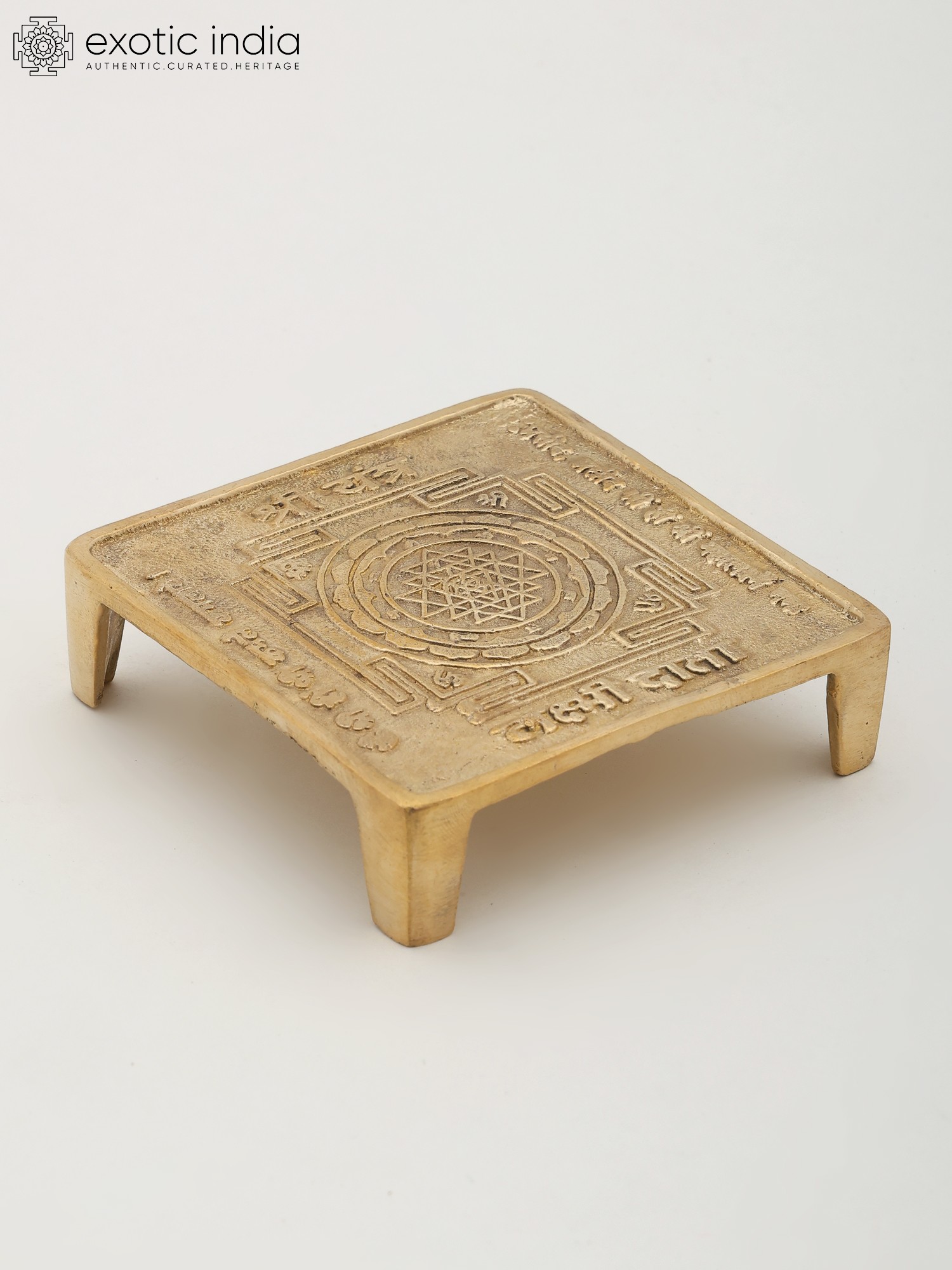 3" Shri Kuber Yantra Chowki in Brass - Sacred Seat of Wealth and Prosperity