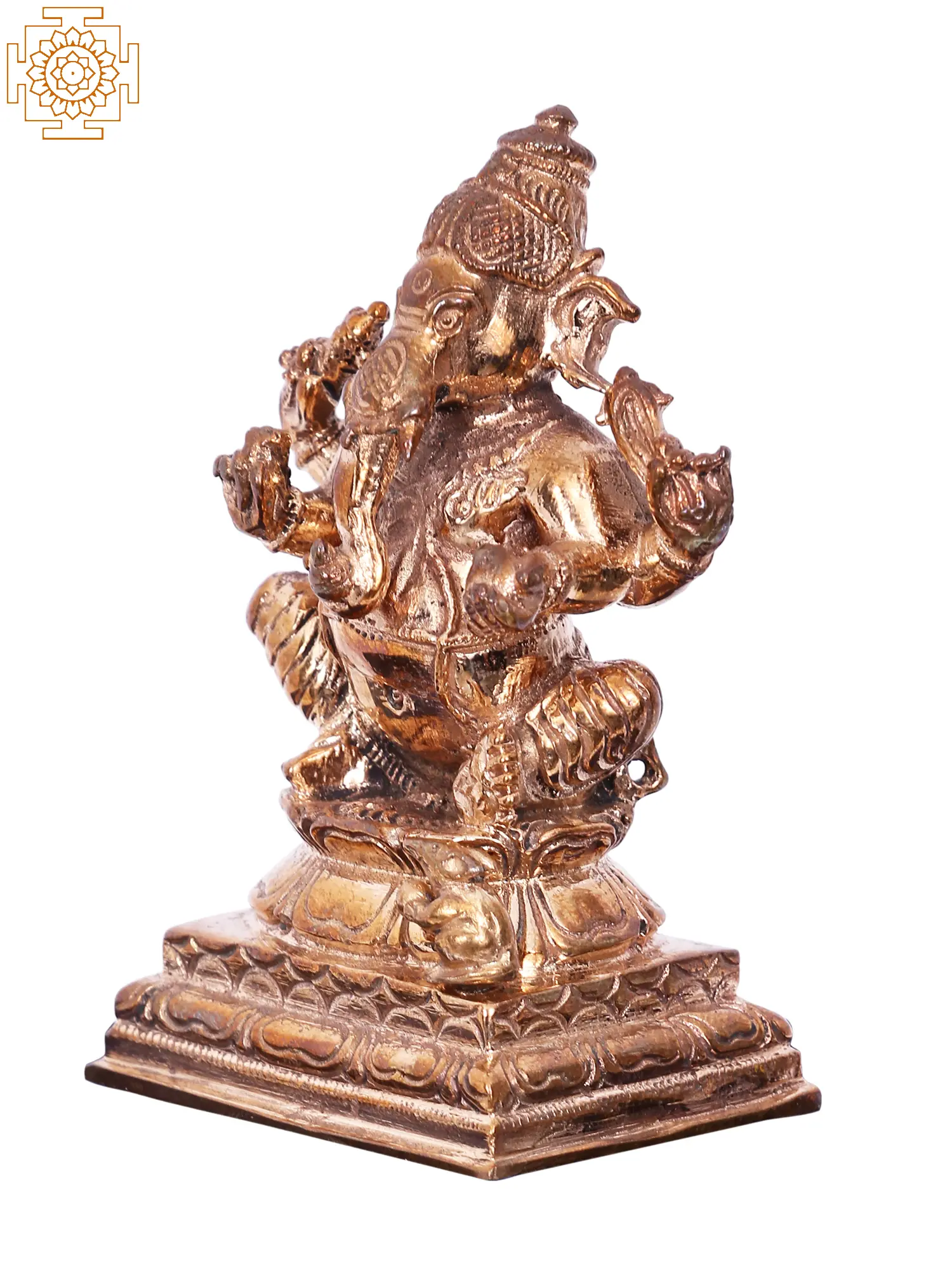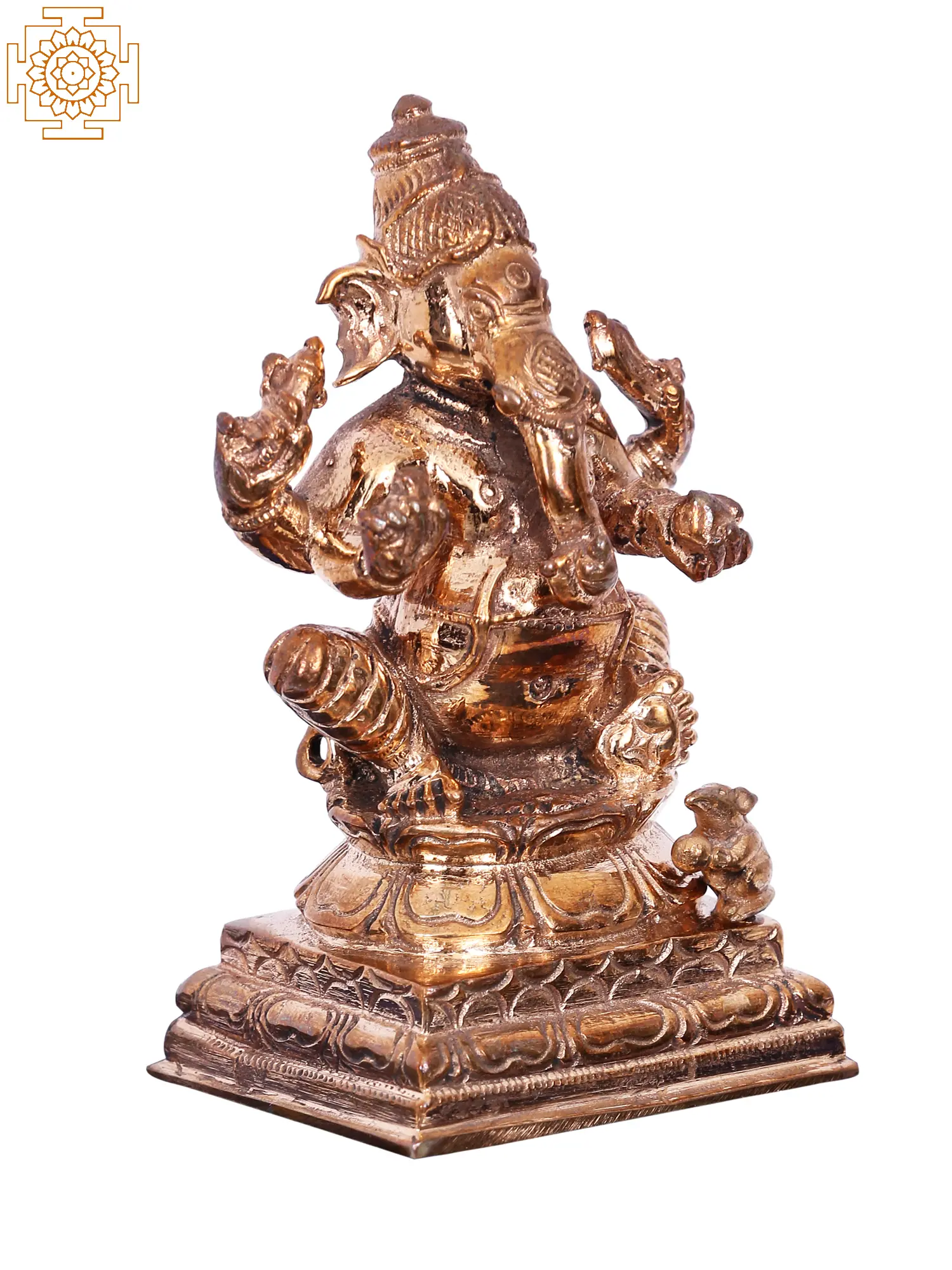Invite divine grace and overcome all obstacles with this exquisite Panchaloha bronze statue of Lord Ganesha. Crafted with the ancient and revered Madhuchista Vidhana (lost-wax) technique in Swamimalai, a region renowned for its bronze casting mastery, this deity embodies auspiciousness and the removal of hindrances. Lord Ganesha, the elephant-headed god, is invoked at the start of every new venture, ensuring success and prosperity. His form, with his characteristic trunk and potbelly, symbolizes wisdom, intellect, and abundance. This petite yet potent representation is perfect for adorning your personal altar, workspace, or any corner of your home where you seek blessings and positive energy.