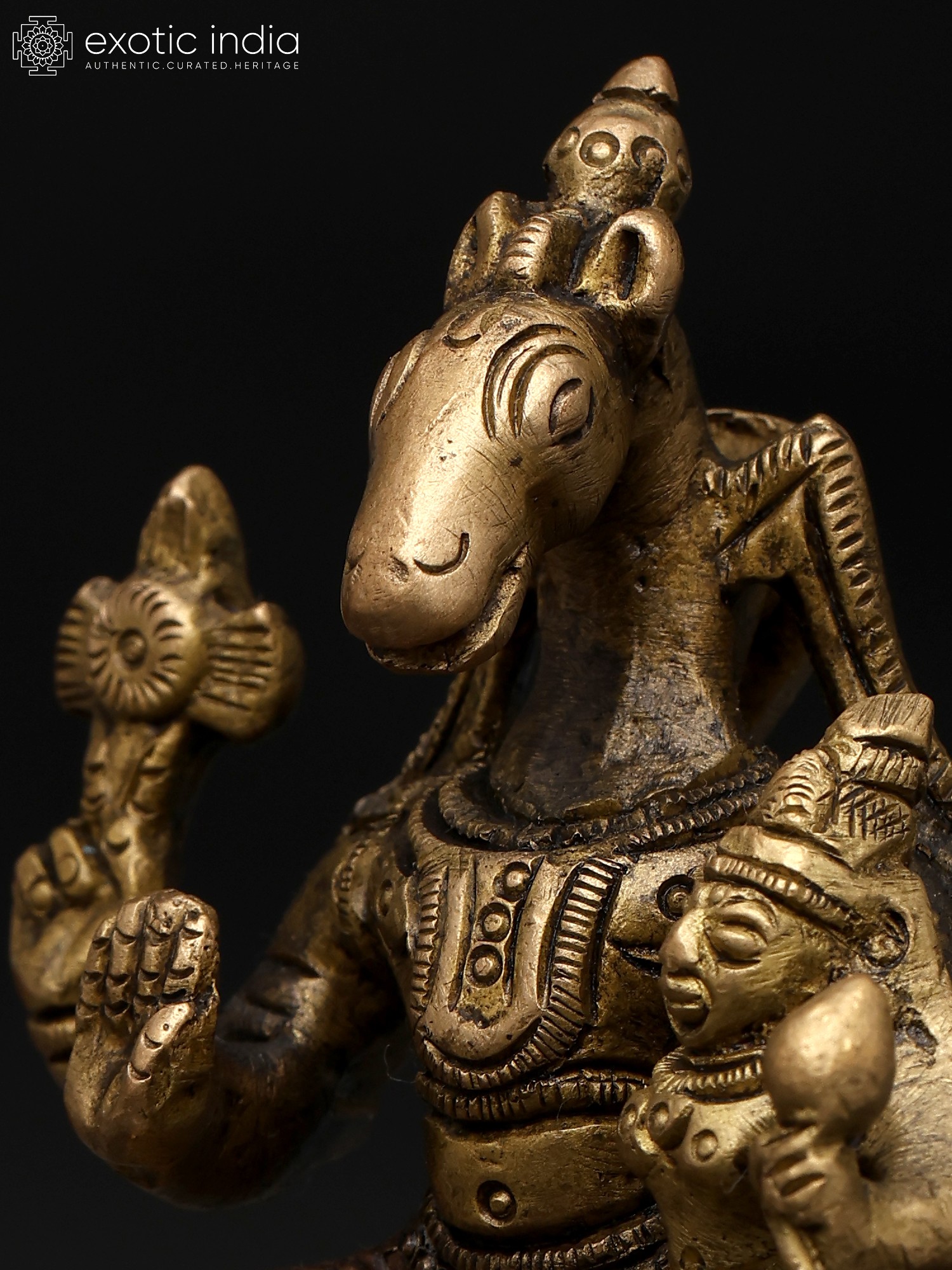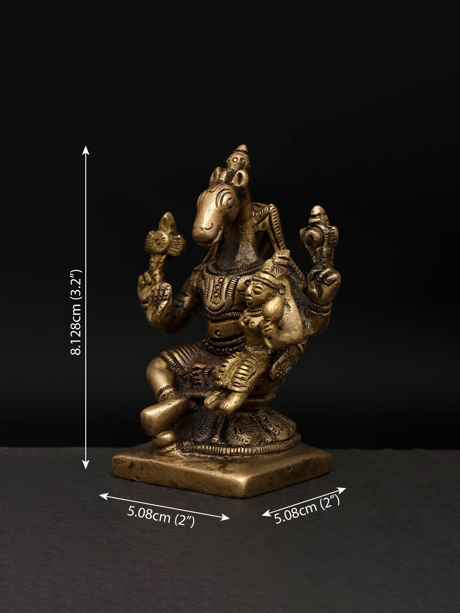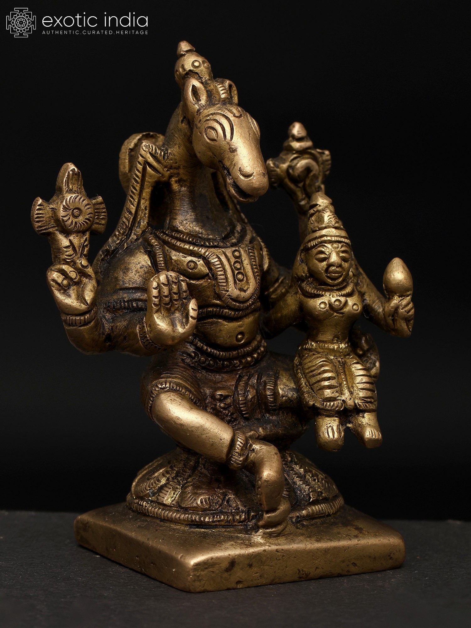 9" Superfine Ardhanarishvara with Nandi and Lion | Wall Hanging Framed Brass Statue