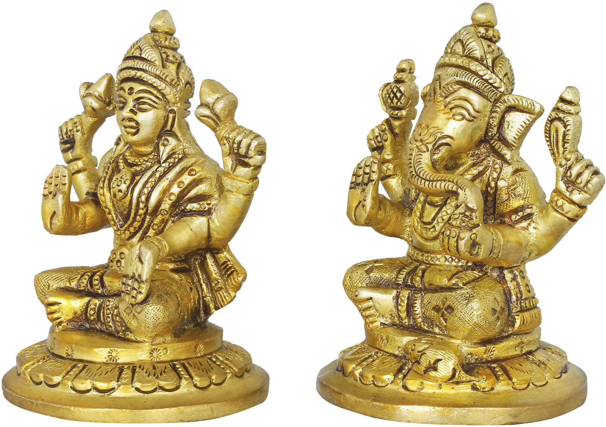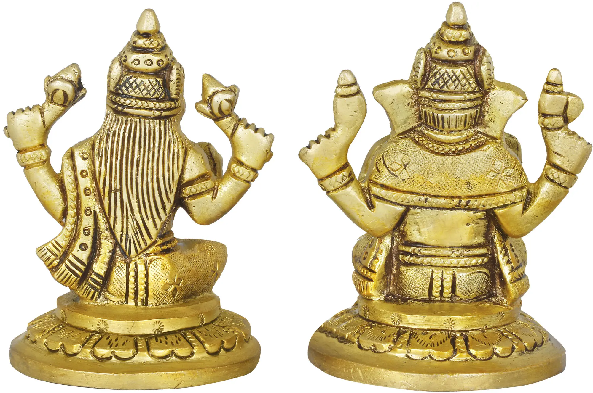 2" Small Size Lakshmi Ganesha and Kubera Statue in Brass | Handmade | Made in India