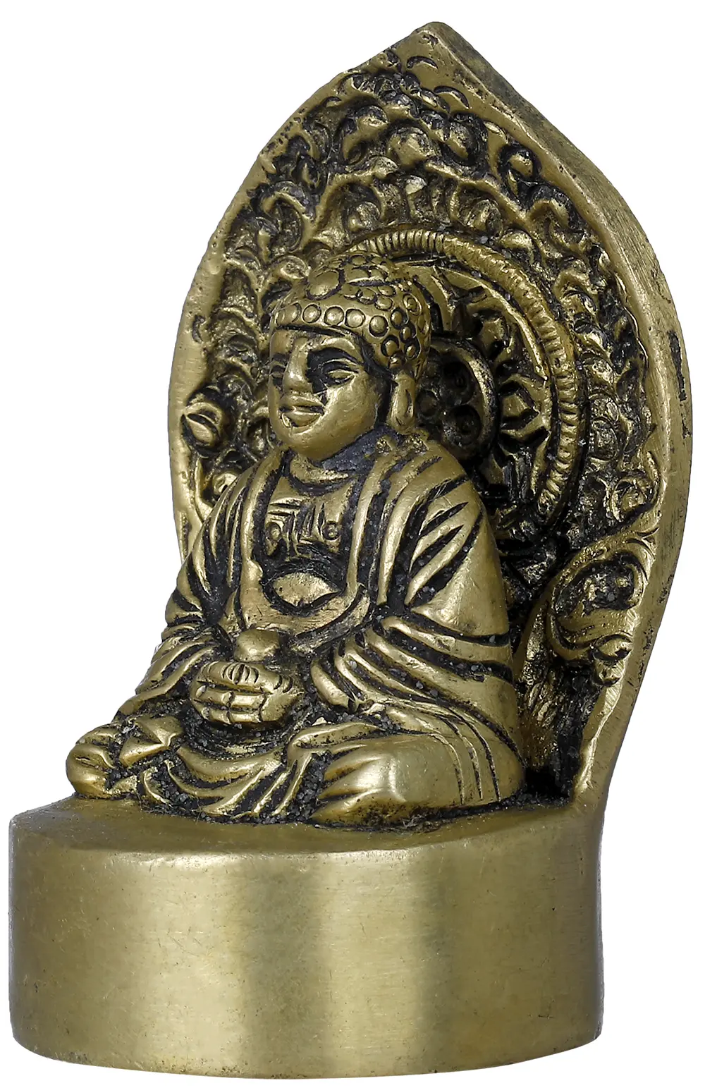 Seated in the “Dhyana Mudra” (Gesture of meditation), Lord Buddha symbolizes inner peace, mindfulness, and profound wisdom. His teachings revolve around the “Four Noble Truths”, and the “Eightfold Path”, guiding devotees towards liberation from suffering and achieving true happiness. The meditative posture signifies his journey towards self-discovery and liberation from the cycle of birth and rebirth. Crafted with meticulous artistry, this brass masterpiece inspires you to seek inner harmony and attain spiritual liberation.