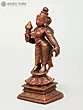 15" Four Armed Goddess Saraswati Standing with Veena | Red Stone Statue | Hand Carved