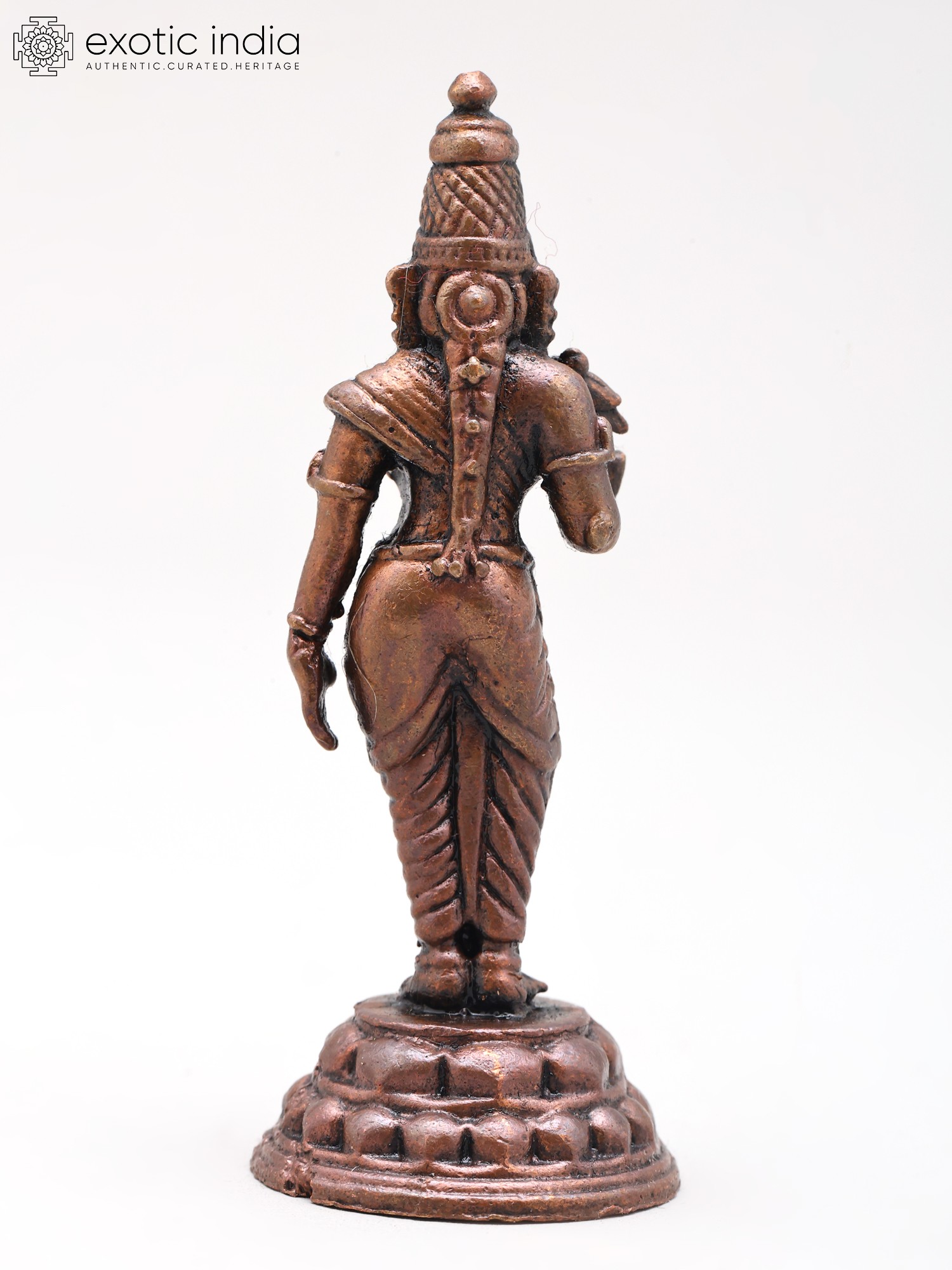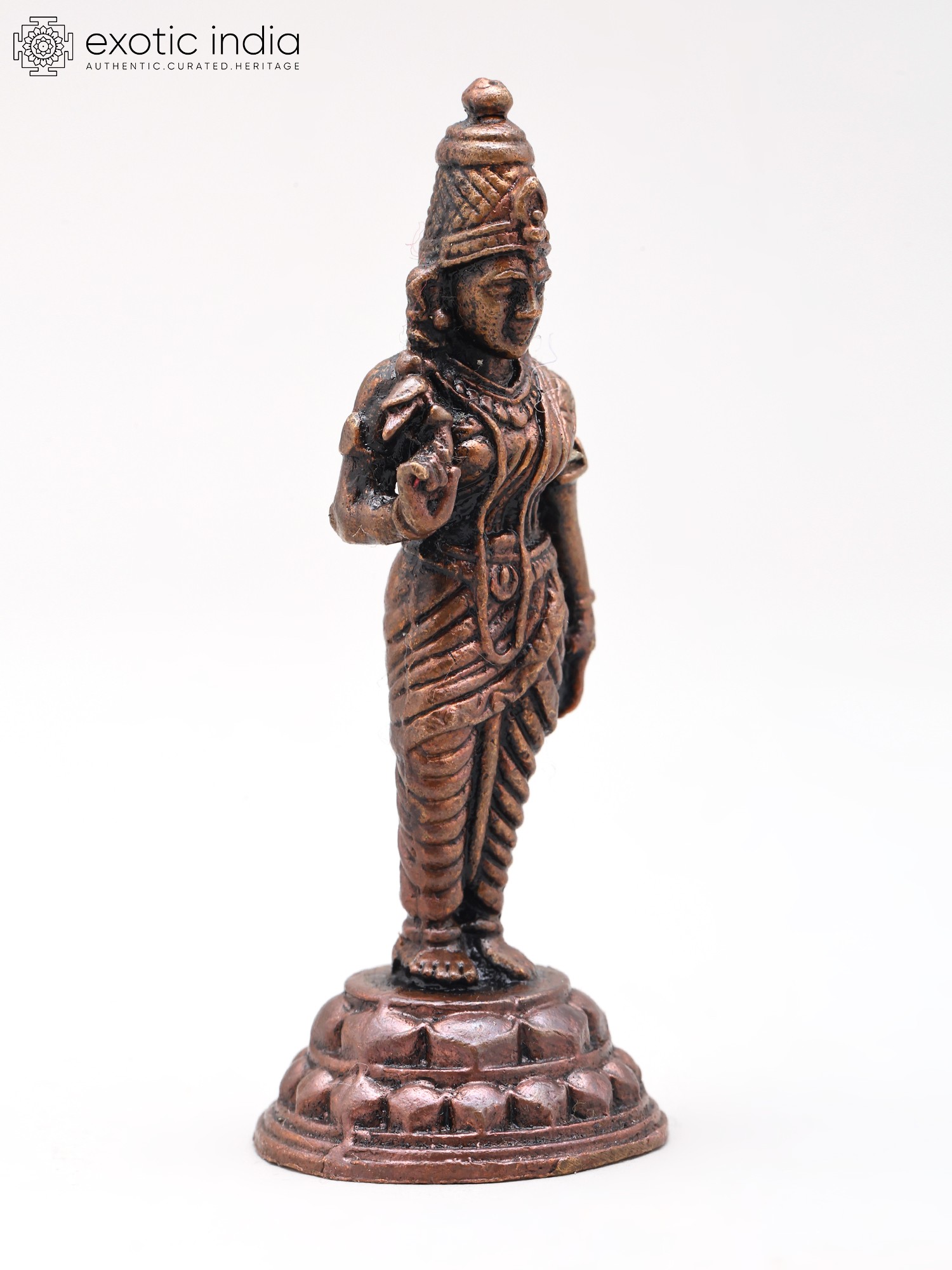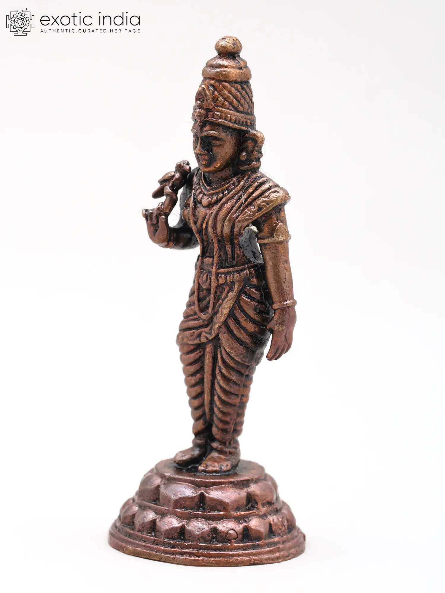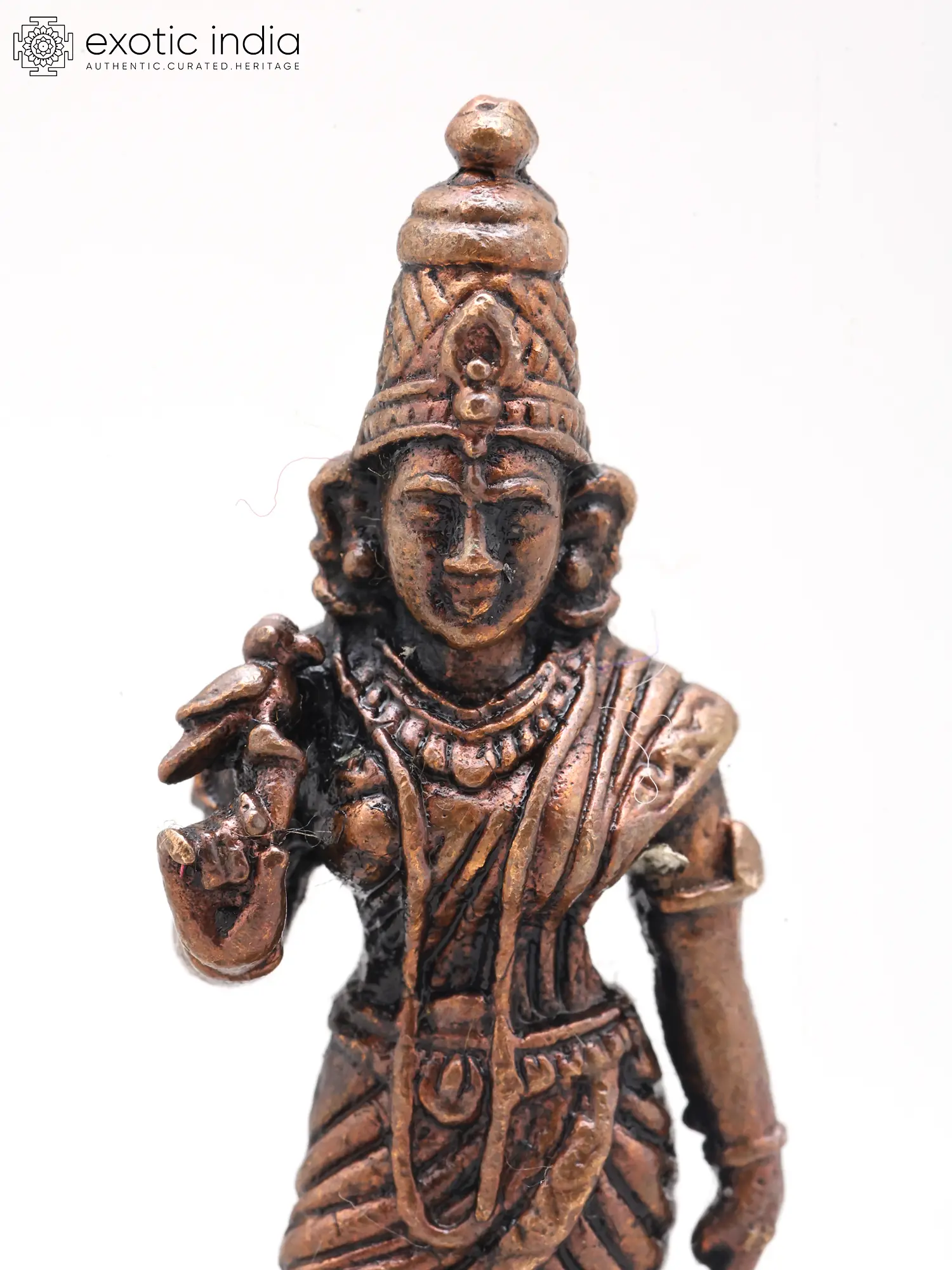 3" Small Goddess Meenakshi Standing on Pedestal - Form of Goddess Parvati | Copper Statue | Made in India