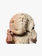 Lord Ganesha's form is rich with symbolism. His elephant head represents wisdom, intelligence, and the strength to overcome challenges. His large ears signify his ability to listen attentively to the prayers of his devotees, while his trunk, often depicted curled in various ways, symbolizes adaptability and eloquence. The mouse, his vahana (mount), represents desire, which Ganesha, as the lord of abundance and meditation, teaches us to control and channel constructively. In this particular carving, Ganesha stands tall, a posture that signifies his unwavering presence and readiness to guide and protect. He holds a laddoo, a sweet delicacy, symbolizing the rewards of spiritual discipline and the sweetness of enlightenment, in one hand, while another hand is raised in a gesture of blessing and assurance. ––––––––––––––––––––