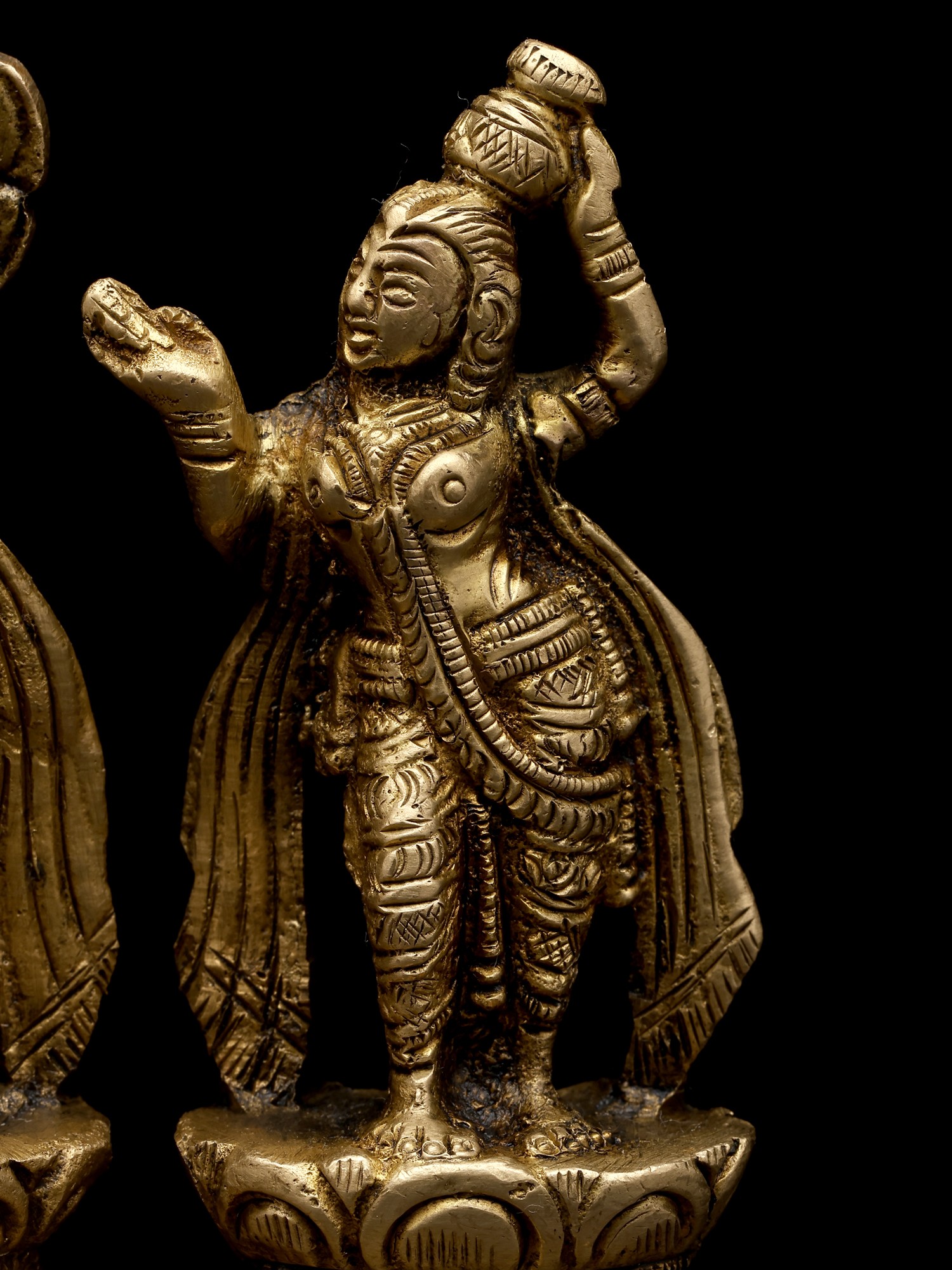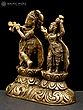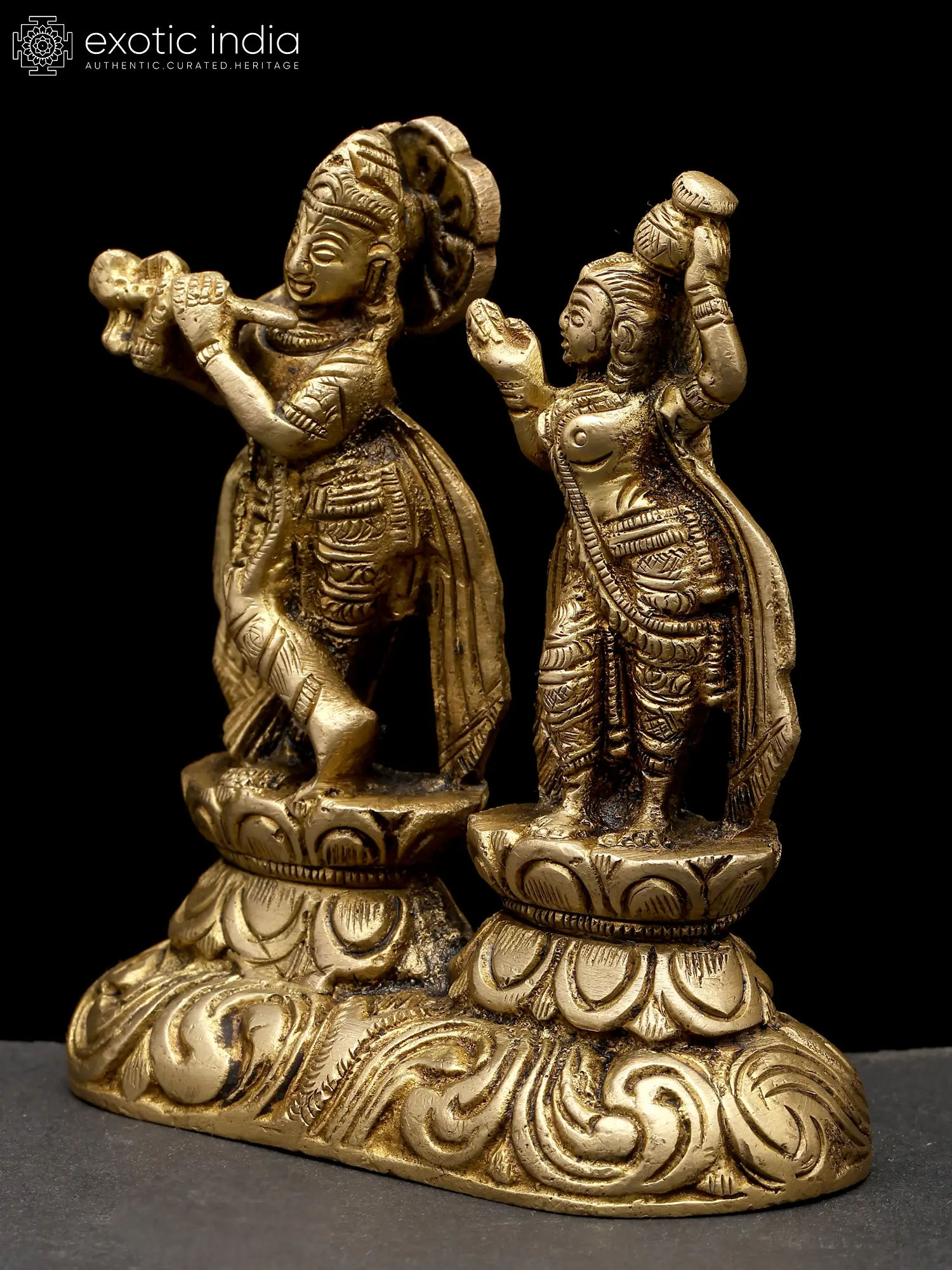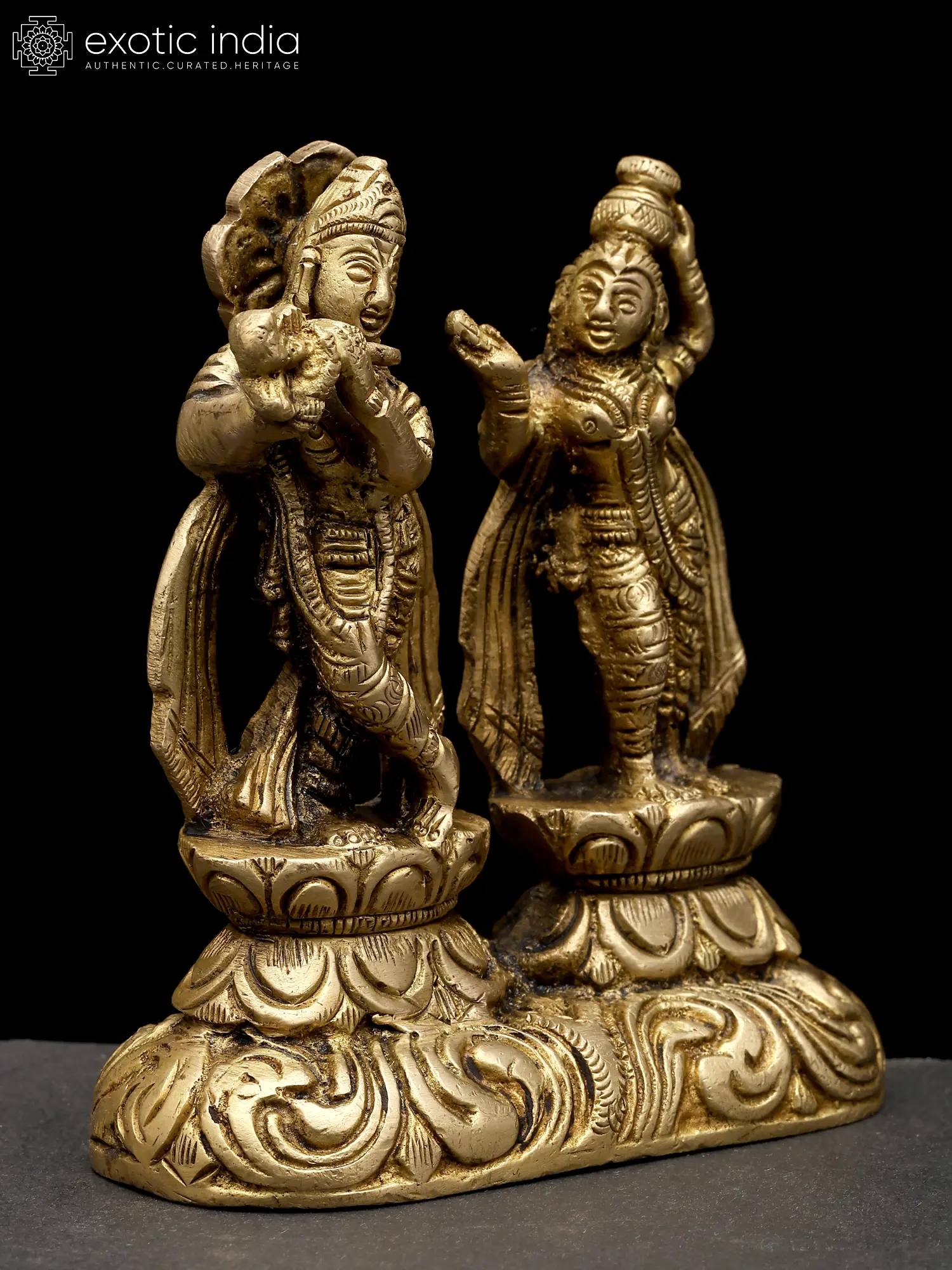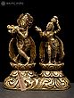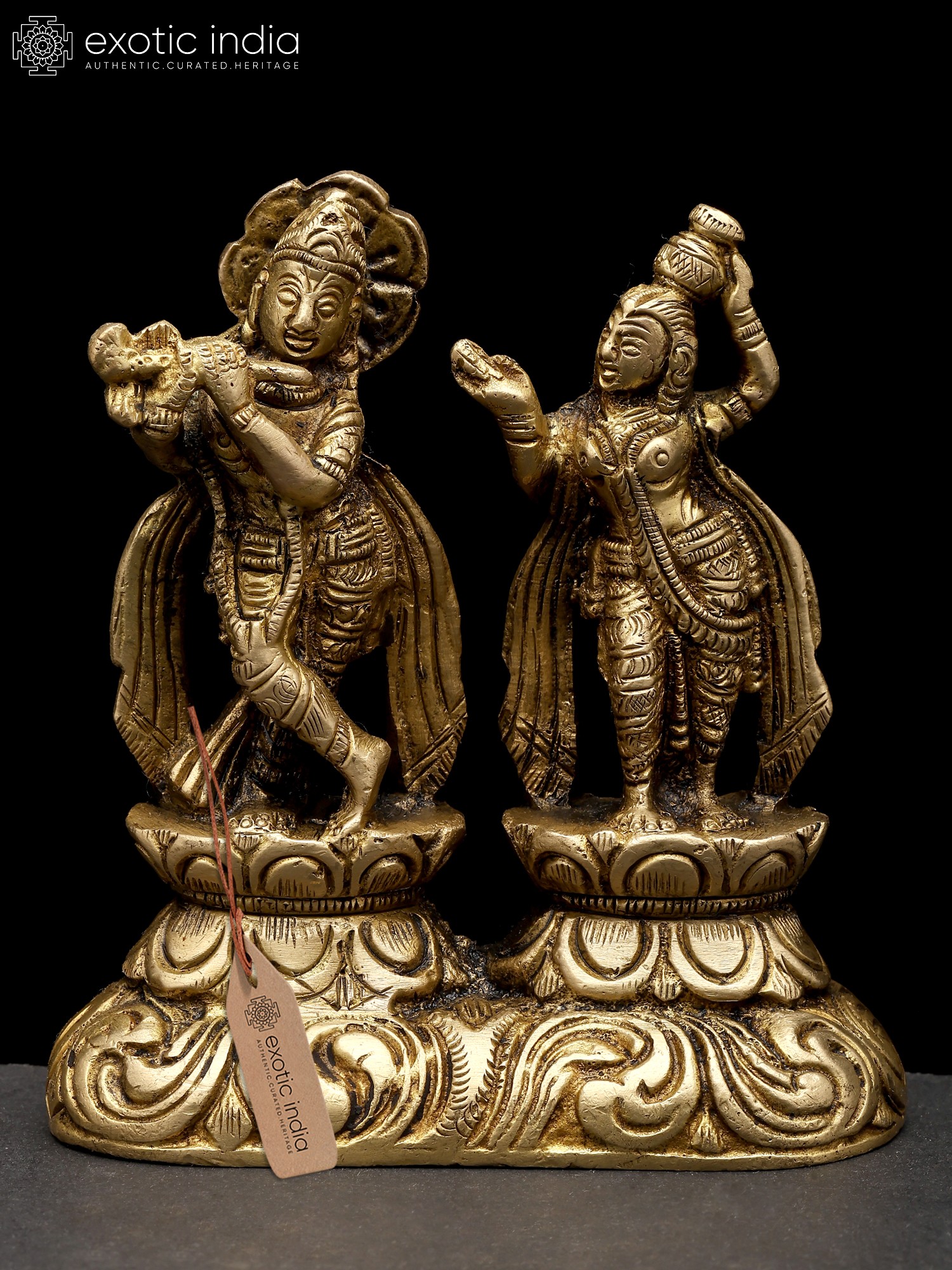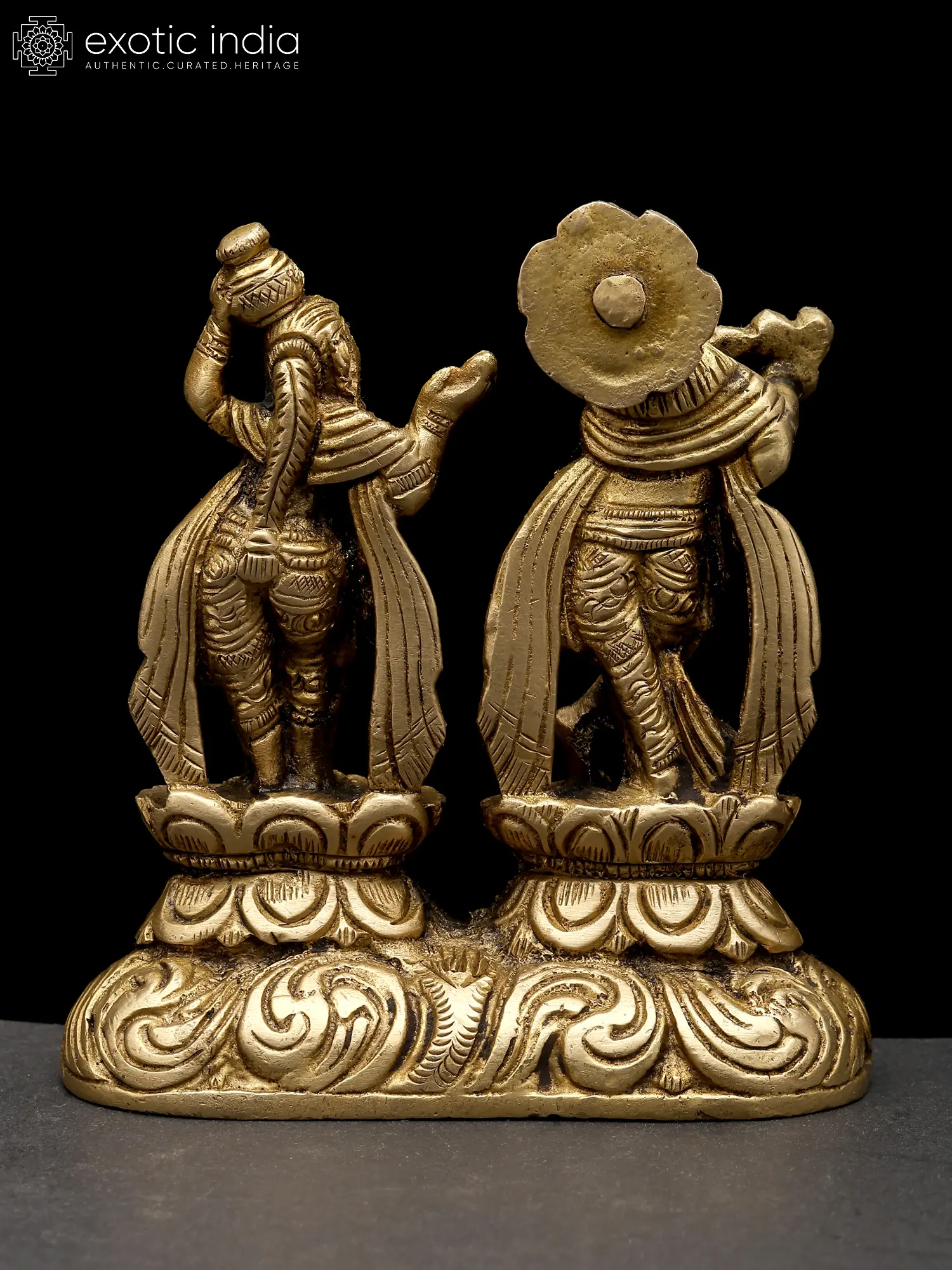 44" Brass Radha-Krishna Statues within an Aureole Engraved with Krishnaleela Episodes
