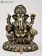 9" Four Armed Ganesha Seated on Throne In Brass | Handmade | Made In India