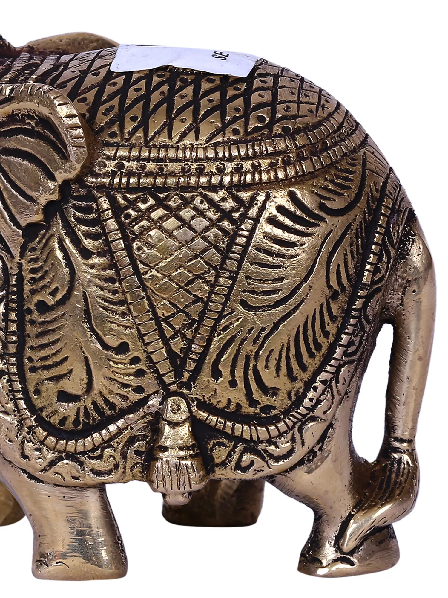 This elegant brass traditional Indian elephant sculpture serves as more than just a work of art; it is a captivating representation of the deep-rooted cultural heritage of India and the reverence for natural beings. Placed in your living room, study, or sacred space, this sculpture becomes a cherished centrepiece that evokes a sense of tradition, grace, and harmony.