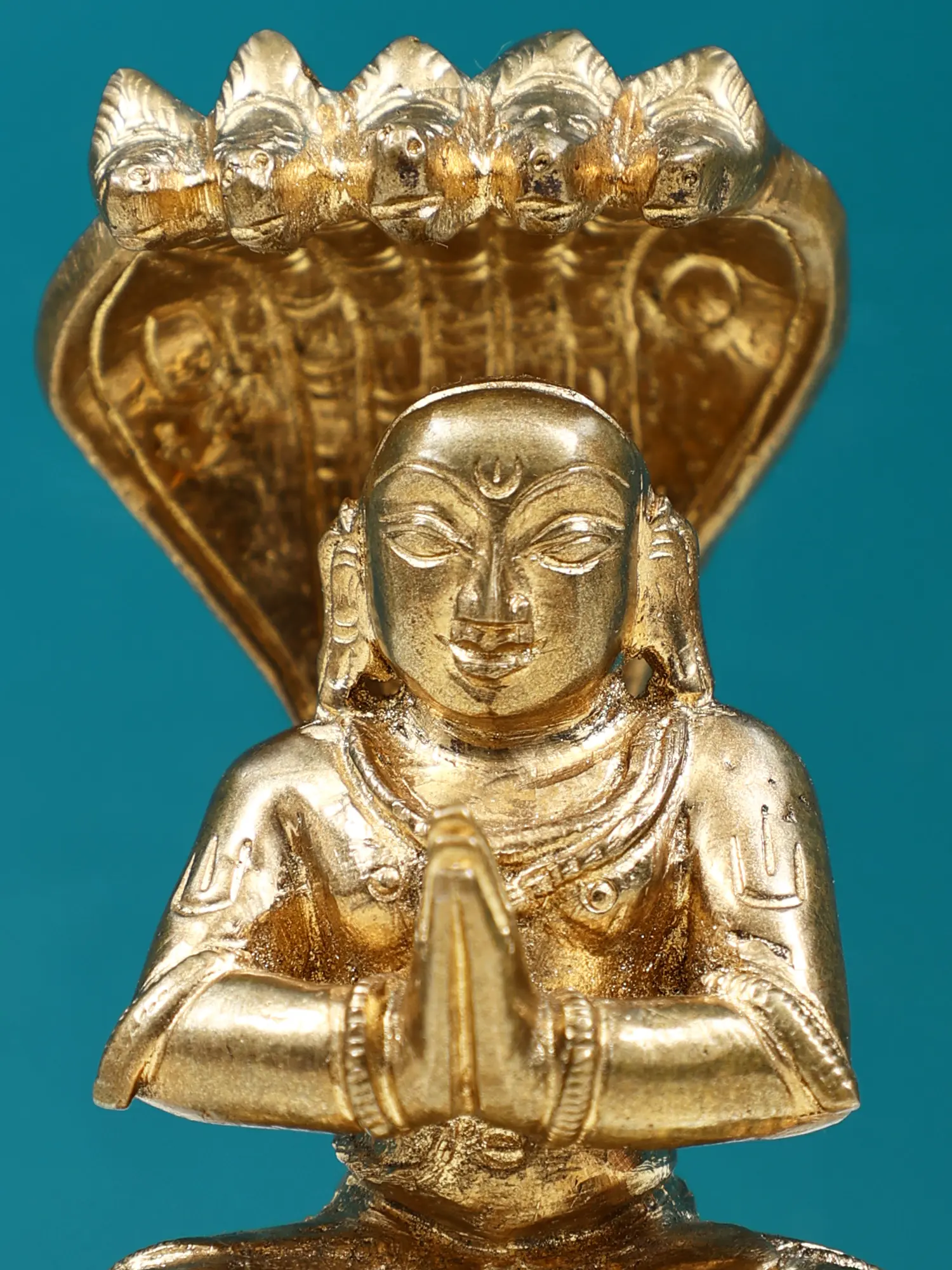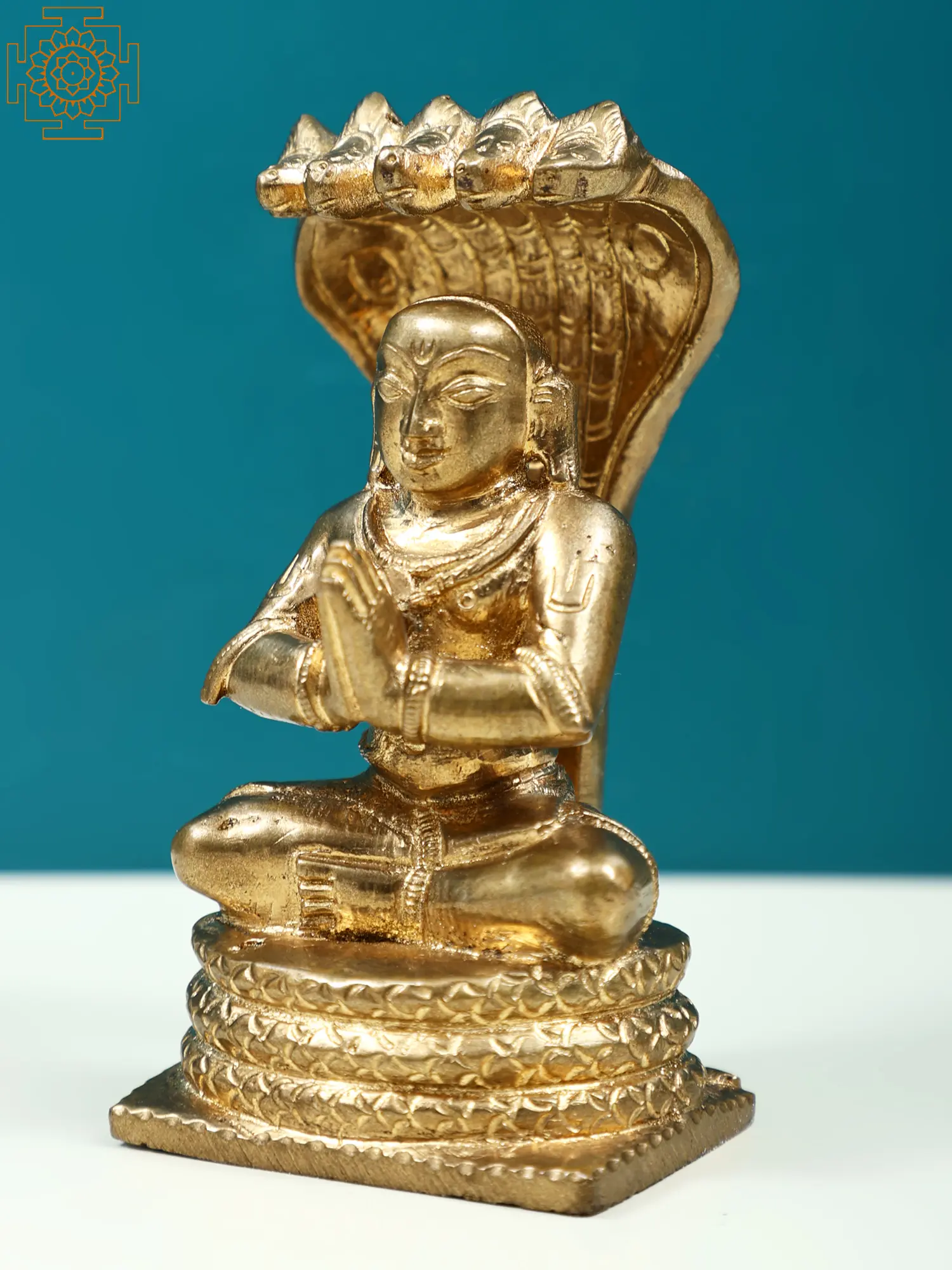Immerse yourself in the spiritual aura of our Handmade Sri Ramanujan. Cast through the ancient Madhuchista Vidhana, or Lost-Wax technique, this bronze sculpture captures the revered figure of Sri Ramanujan in a gesture of reverence and devotion. The Anjali Mudra symbolises humility and respect, making it a powerful portrayal of spiritual surrender. As you place this handmade statue in your sacred space, feel the energy of devotion and wisdom permeate your surroundings. The craftsmanship and the use of the Madhuchista Vidhana technique add layers of authenticity and cultural richness to this bronze inspiration for spiritual seekers and a reminder of the profound teachings embodied by Sri Ramanujan.
