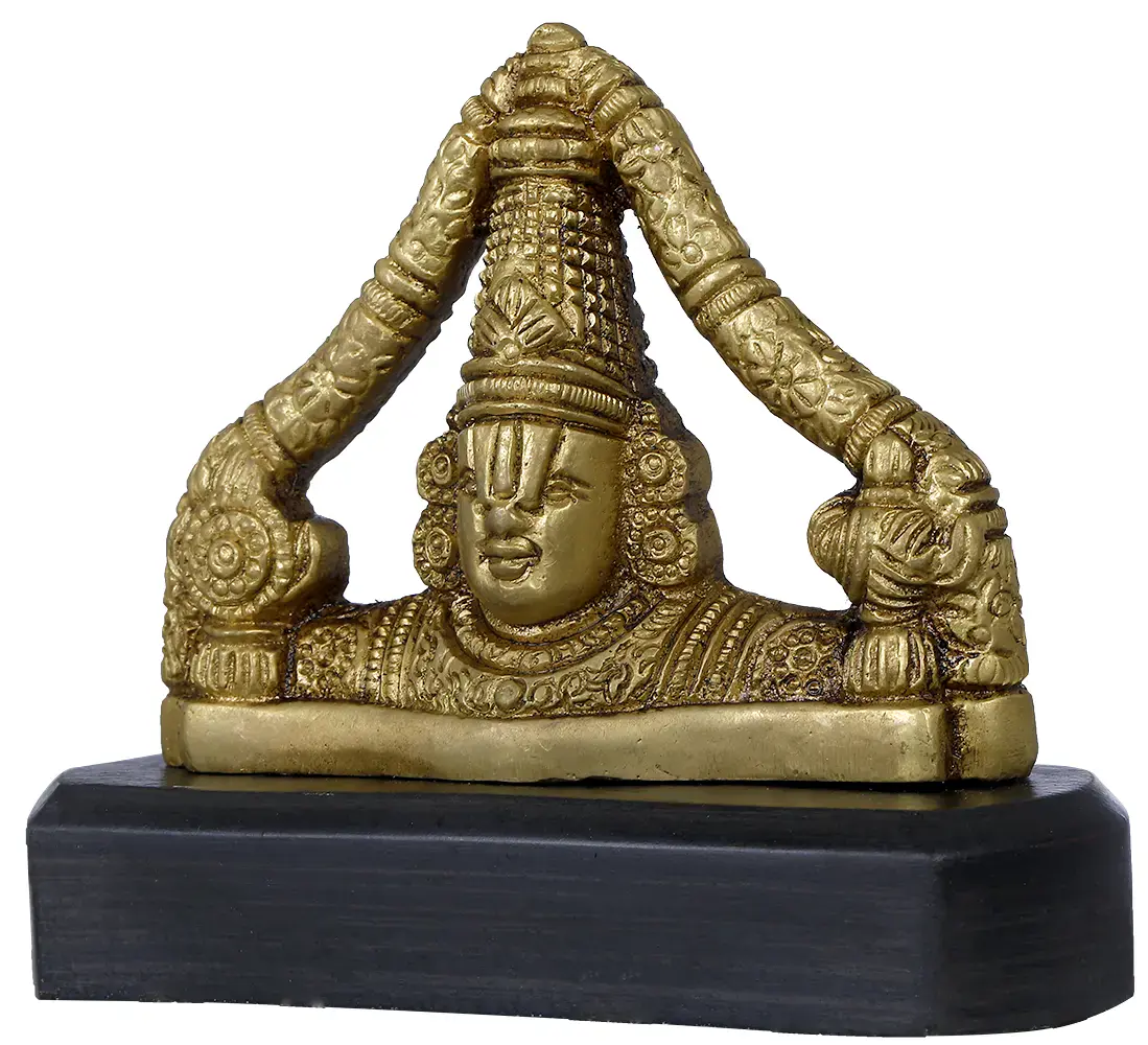 “Divine Guardian on the Go" - The Tirupati Balaji for Car Dashboard is a fusion of brass and wood, a handheld embodiment of protection. Handcrafted in India, it showcases Lord Tirupati Balaji, guardian of travelers and seekers. Holding his discus and conch, he signifies cosmic order and spiritual awakening. As we place this sculpture on our car dashboard, we invoke his blessings for safe journeys, both in the physical realm and on our spiritual quest. This miniature form serves as a steadfast companion, watching over us as we traverse life's highways.