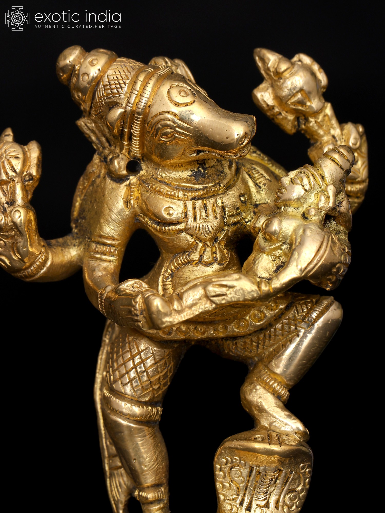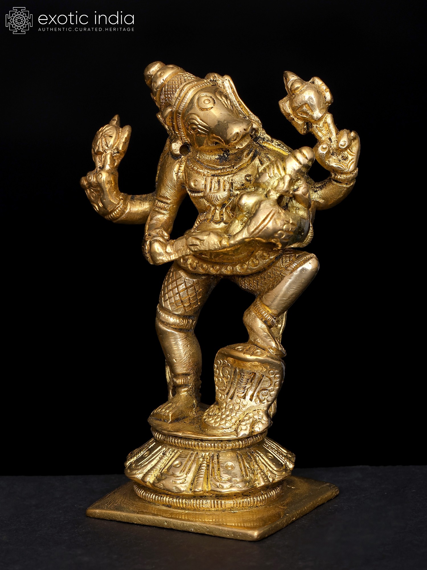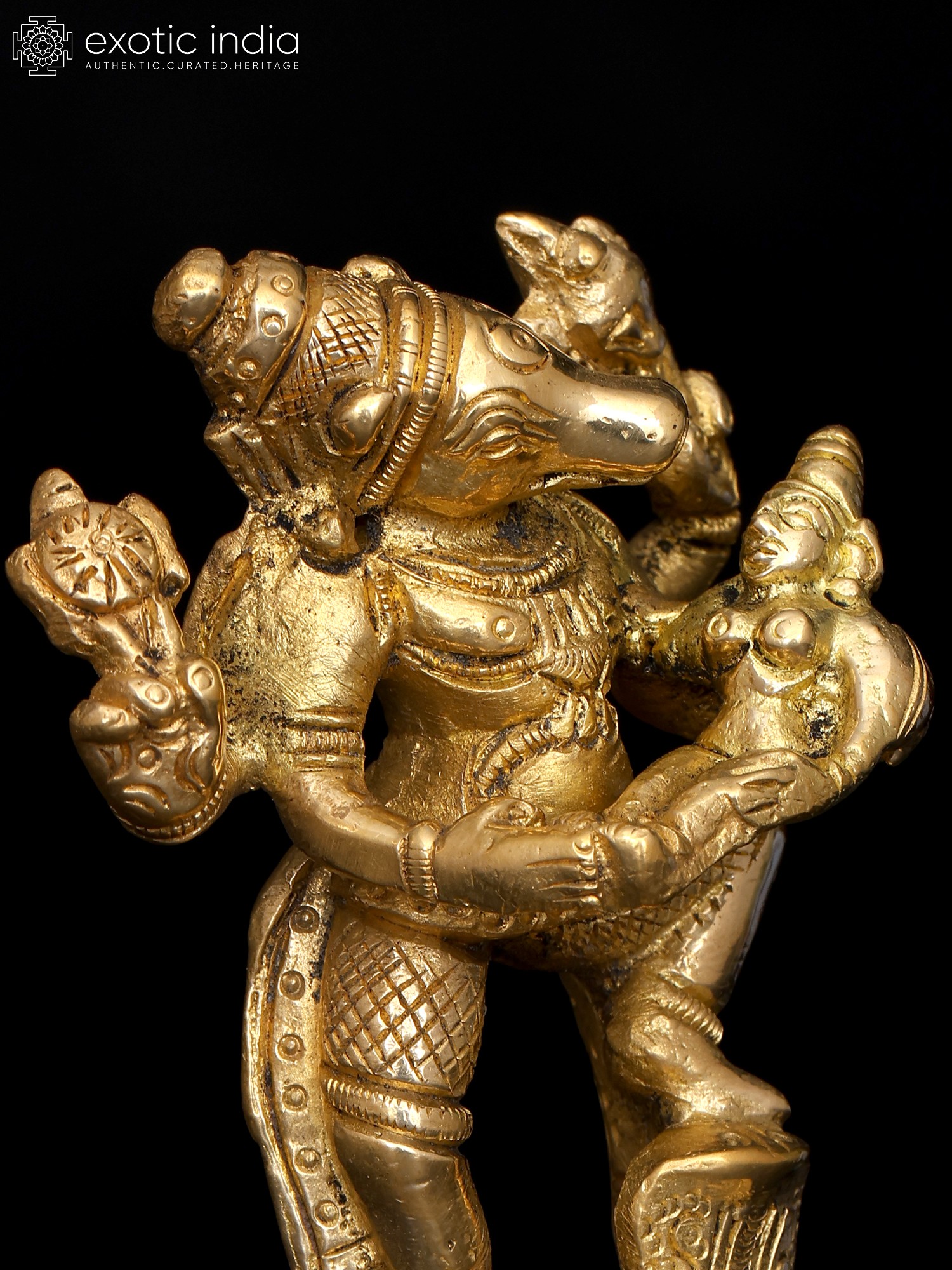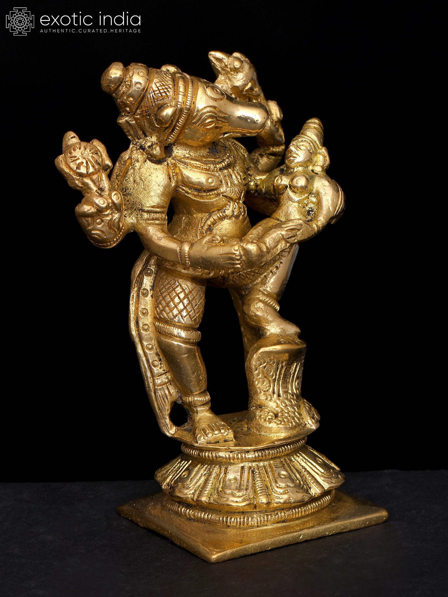 3" Varahavatara of Vishnu with Bhudevi (Small Statue) In Brass | Handmade | Made In India