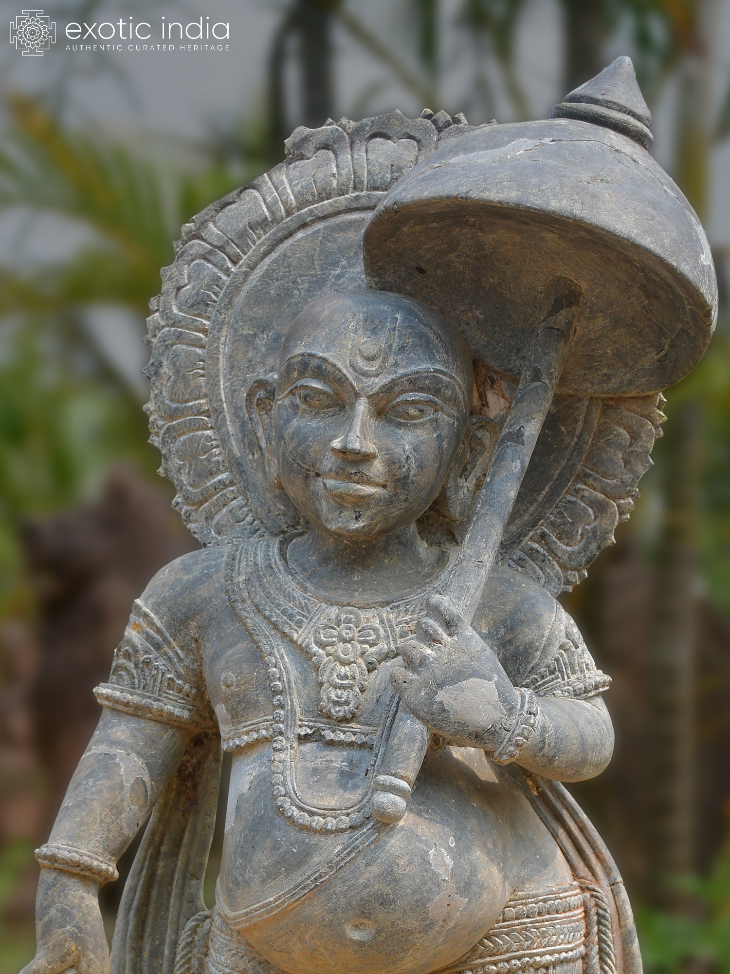 21" Shukra Graha With Vahana - Planet | Black Granite Stone Statue
