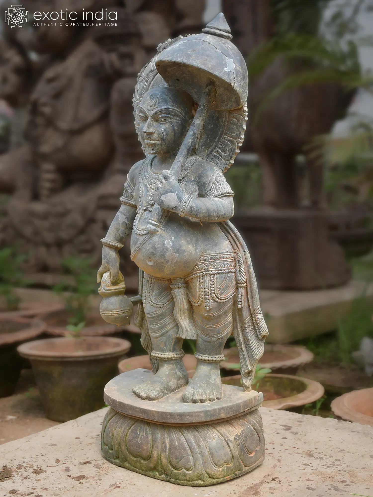 36" Pot Lady | Sandstone Statue | Exquisite Handmade Indian Art