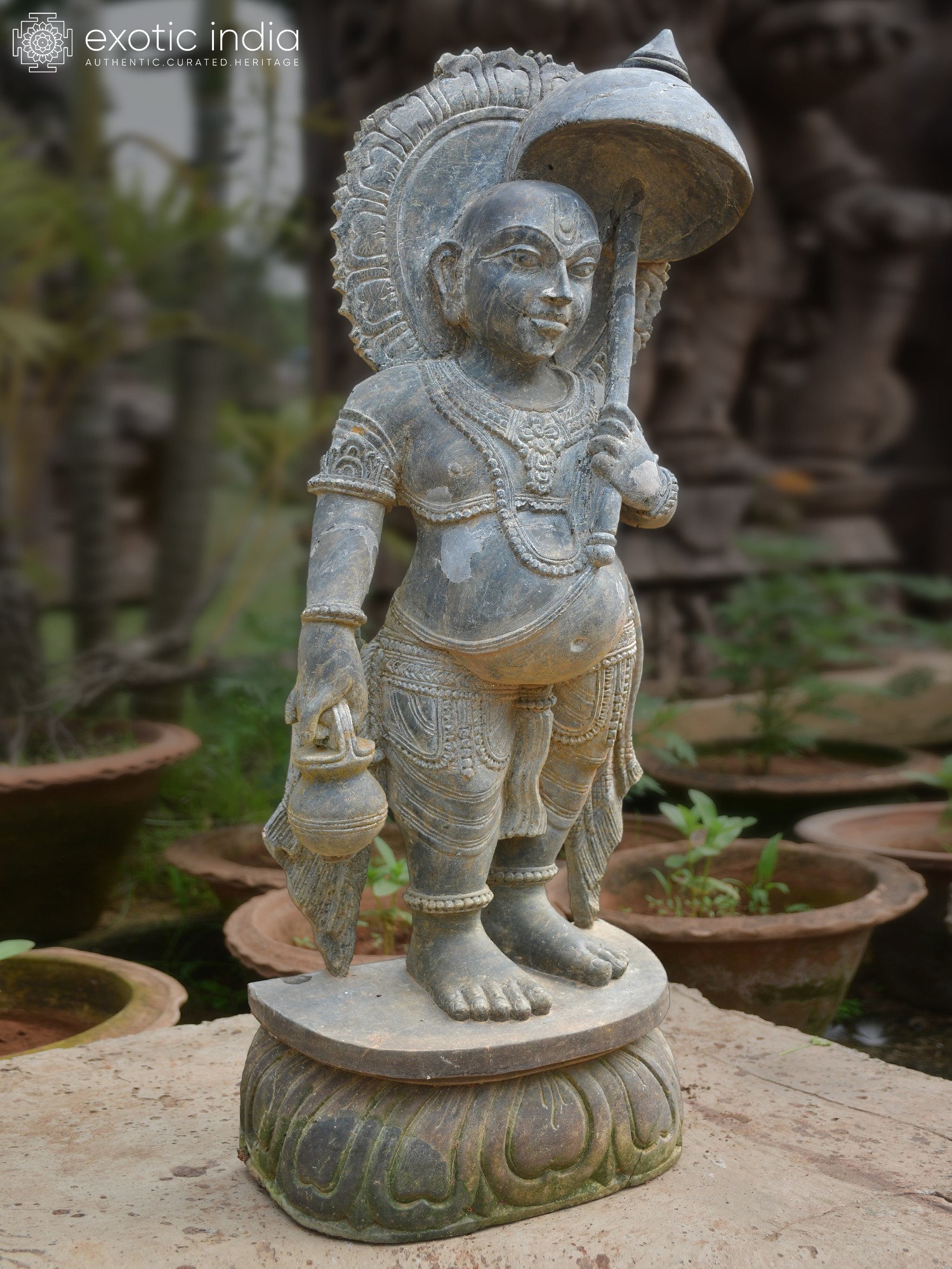 18" Lord Hanuman Carrying Sanjivani | Granite Stone Statue | Made In Orissa