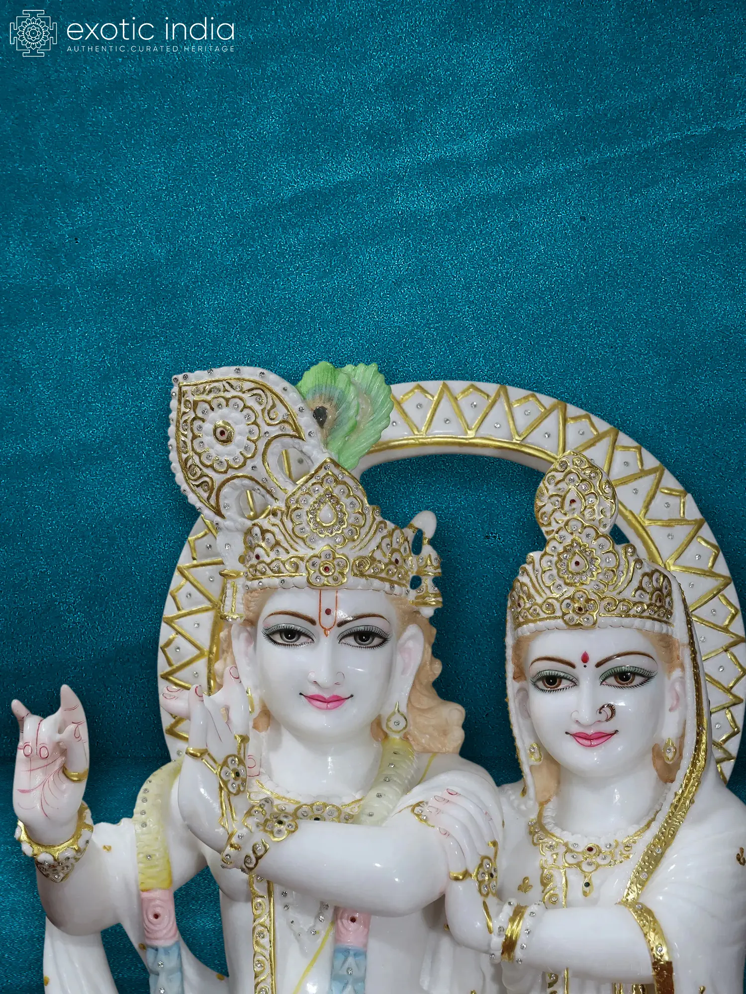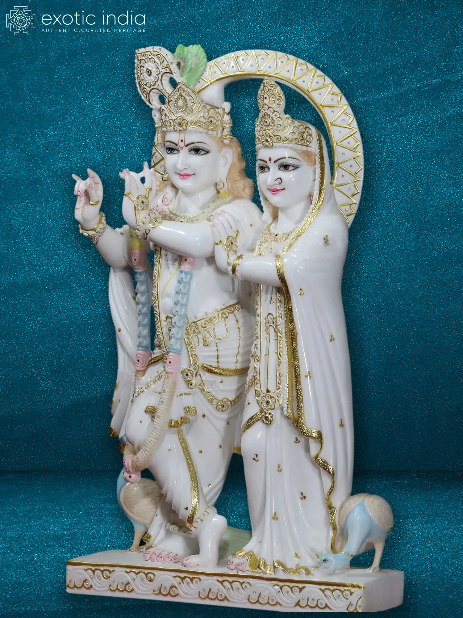27" Beautiful Jodi Radha And Krishna | Super White Vietnam Marble Statue