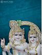 This magnificent statue captures the eternal love and divine play of Radha and Krishna, the beloved figures of Hindu devotion. Crafted from the finest Super White Makrana marble, renowned for its purity and luminous quality, this masterpiece stands as a testament to unparalleled artistry. The marble itself, sourced from the historic quarries of Makrana in Rajasthan, has been used for centuries to create monuments of enduring beauty, including the iconic Taj Mahal, imbuing this statue with a rich cultural lineage. The divine couple is depicted in a tender, intimate pose. Lord Krishna, with his characteristic peacock feather adorning his crown and a playful smile, is shown with his arm gently around Radha. Radha, radiating grace and devotion, is adorned in exquisite finery, her gaze filled with love and adoration for her beloved. The intricate embellishments in gold, sparkling with embedded stones, highlight their divine status and add a celestial glow to the figures. Every detail, from the delicate folds of their clothing to the gentle expressions on their faces, is rendered with meticulous care, inviting contemplation of their transcendental love story.