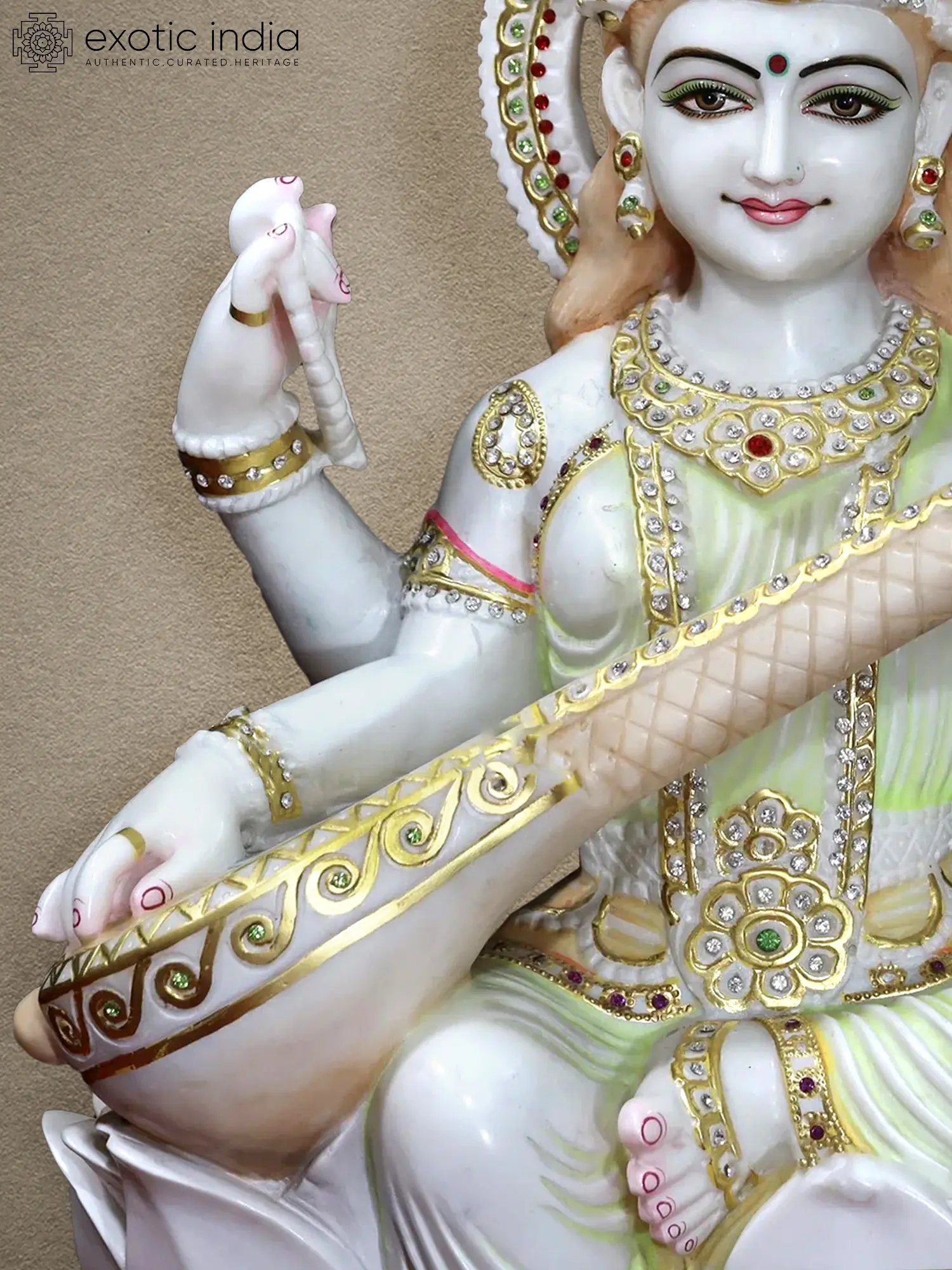 18" Handmade Statue Of Goddess Saraswati | White Makrana Marble Sculpture