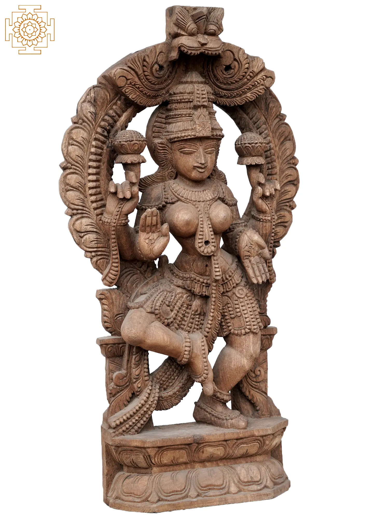 20" Blessing Goddess Lakshmi Seated on Lotus | Wood Carving