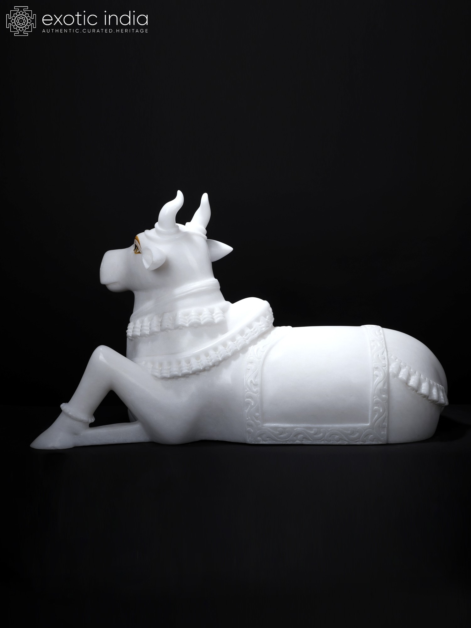 30" Large Nandi White Marble Statue - The Vehicle of Lord Shiva