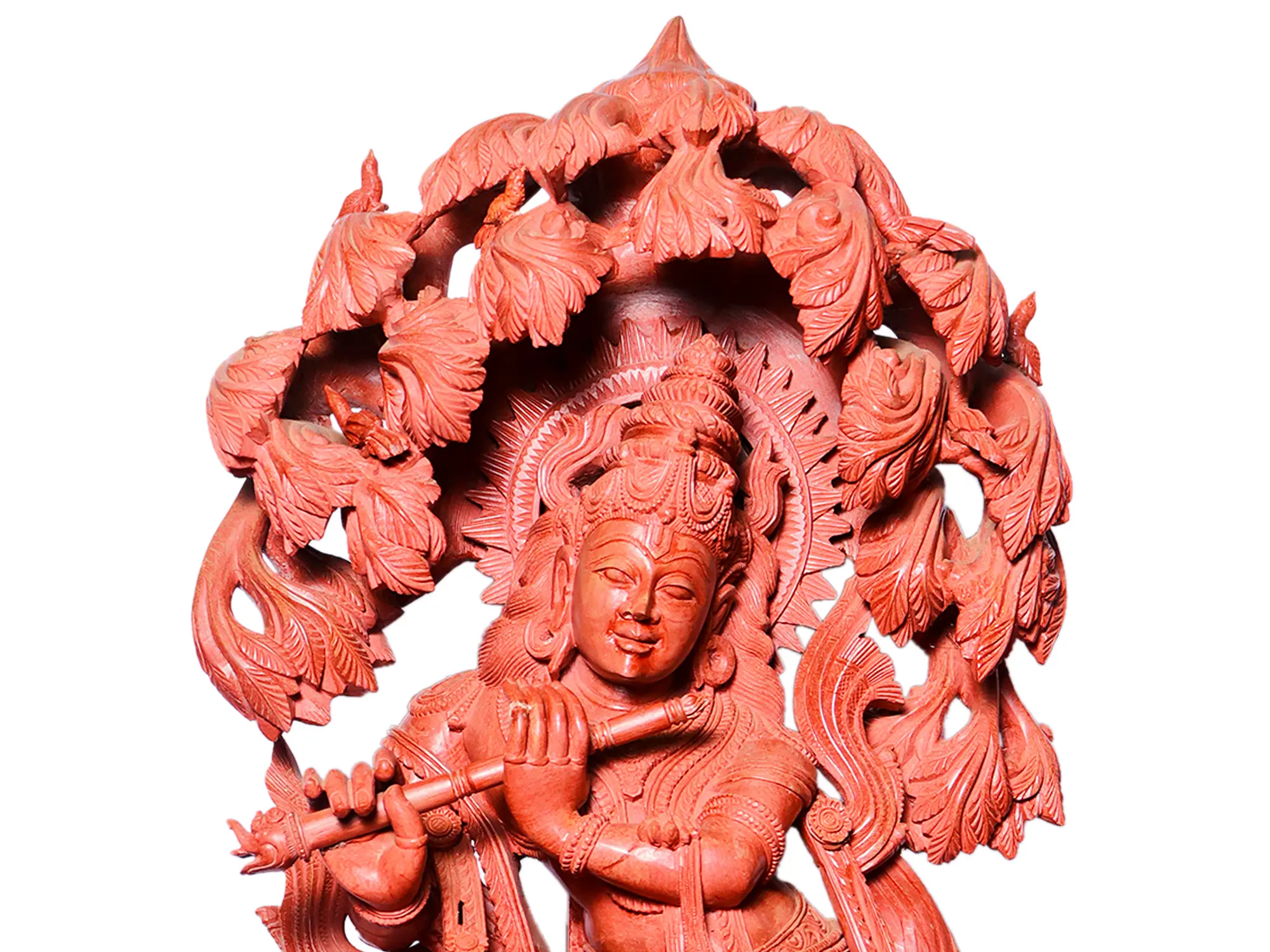 Standing a commanding 30 inches tall, this large-scale sculpture is designed to be a significant statement piece, perfect for a mandir, meditation room, or any living area where you seek to infuse a sense of divine presence and artistic grandeur. The solid red stone ensures its durability and timeless appeal, allowing it to become a cherished heirloom for generations to come. Let the soulful melody of this sculpted Krishna fill your home with divine resonance and artistic splendor.