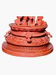 12" Radha Krishna with Gopis | Red Stone Statue | Hand Carved