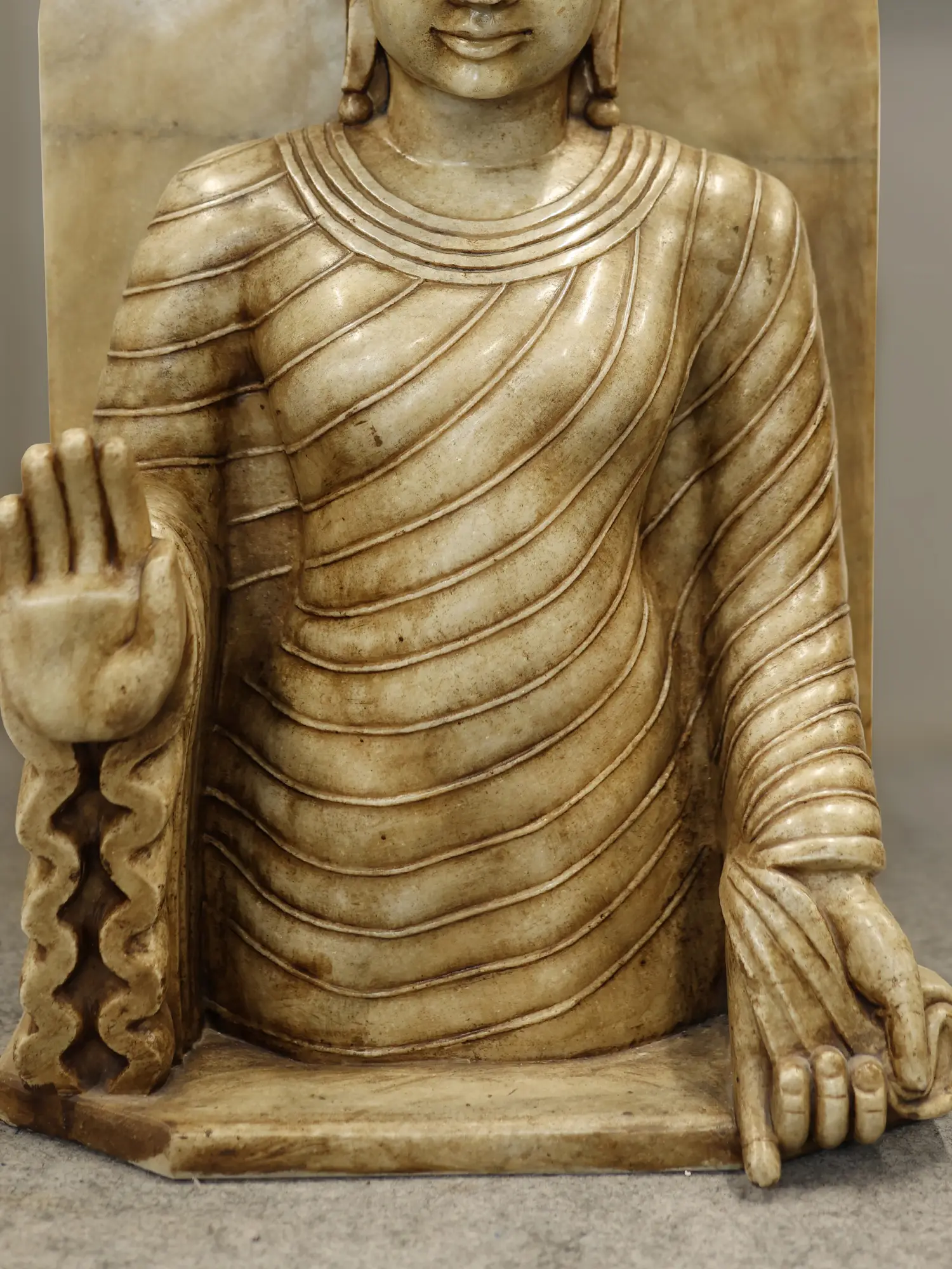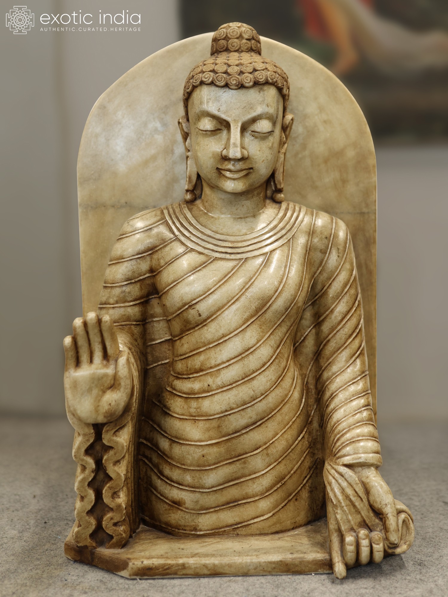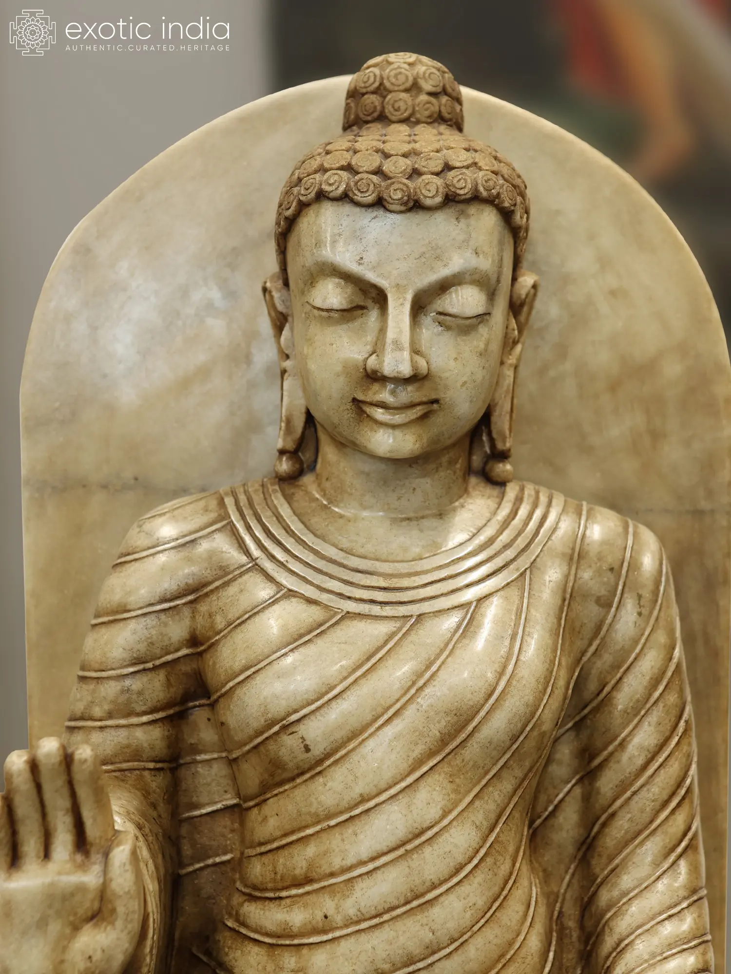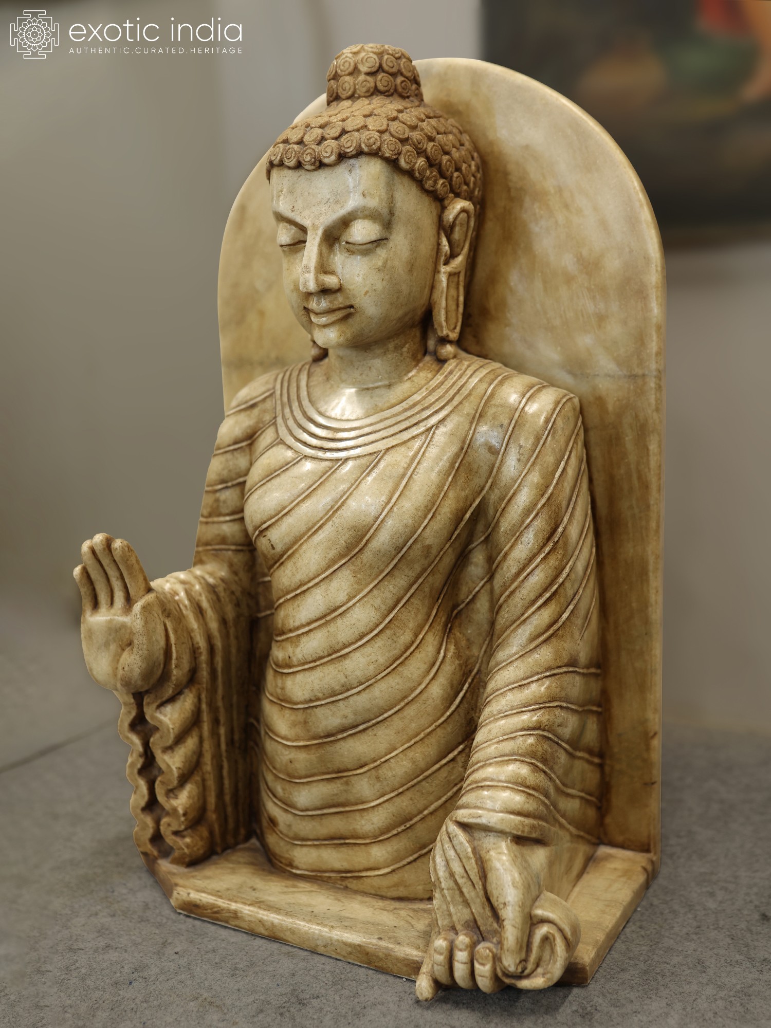 Rooted in the rich traditions of Indian Buddhist art, this sculpture draws inspiration from centuries of spiritual expression and artistic evolution. It evokes the serenity and wisdom associated with the Buddha's teachings, offering a tangible connection to a profound philosophical heritage. You'll appreciate its modern interpretation of classical iconography, making it a piece that resonates both historically and contemporarily.