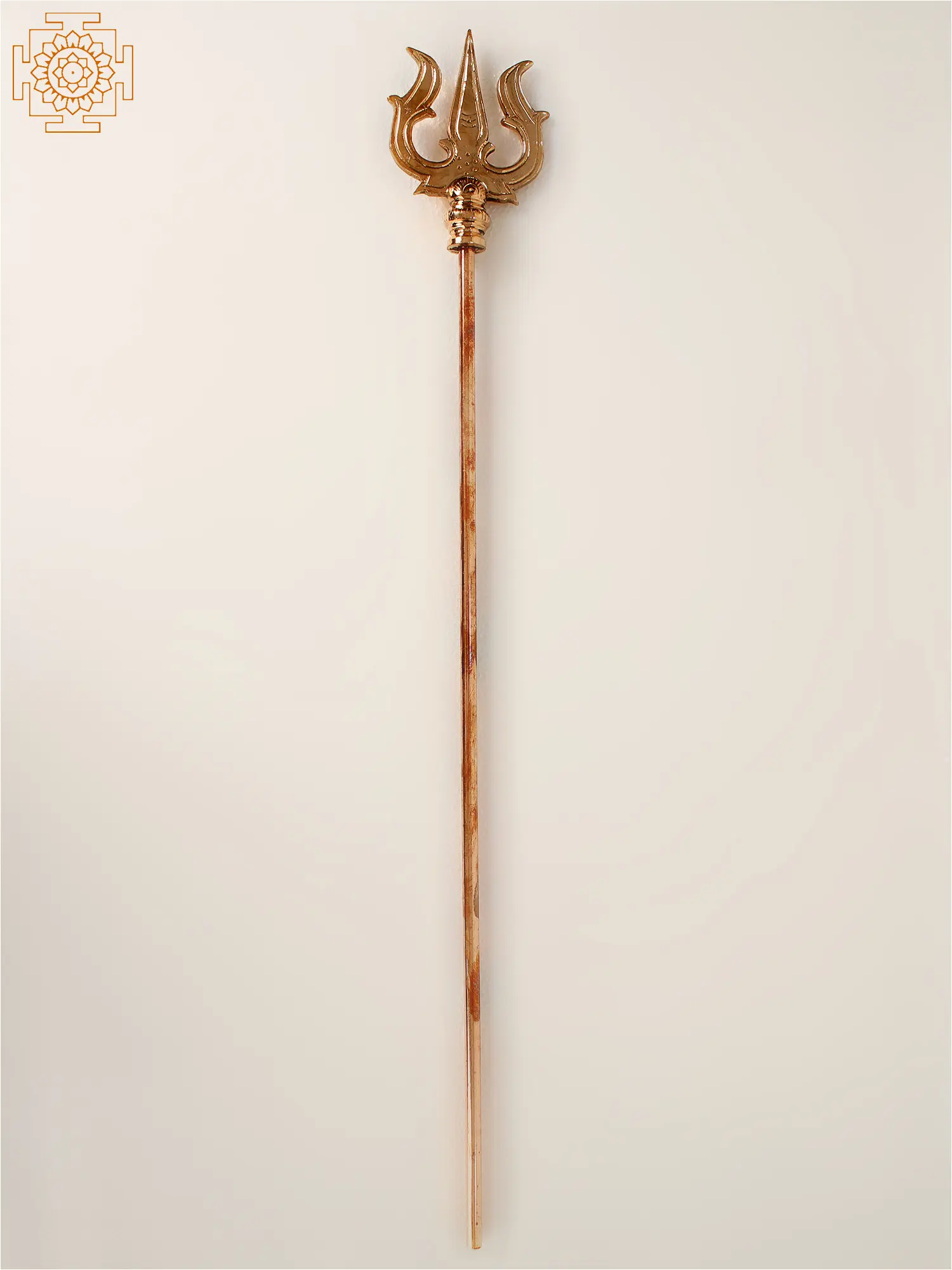 7" The Trident of Lord Shiva with Damaru and Parrot Pair in Brass | Handmade | Made in India