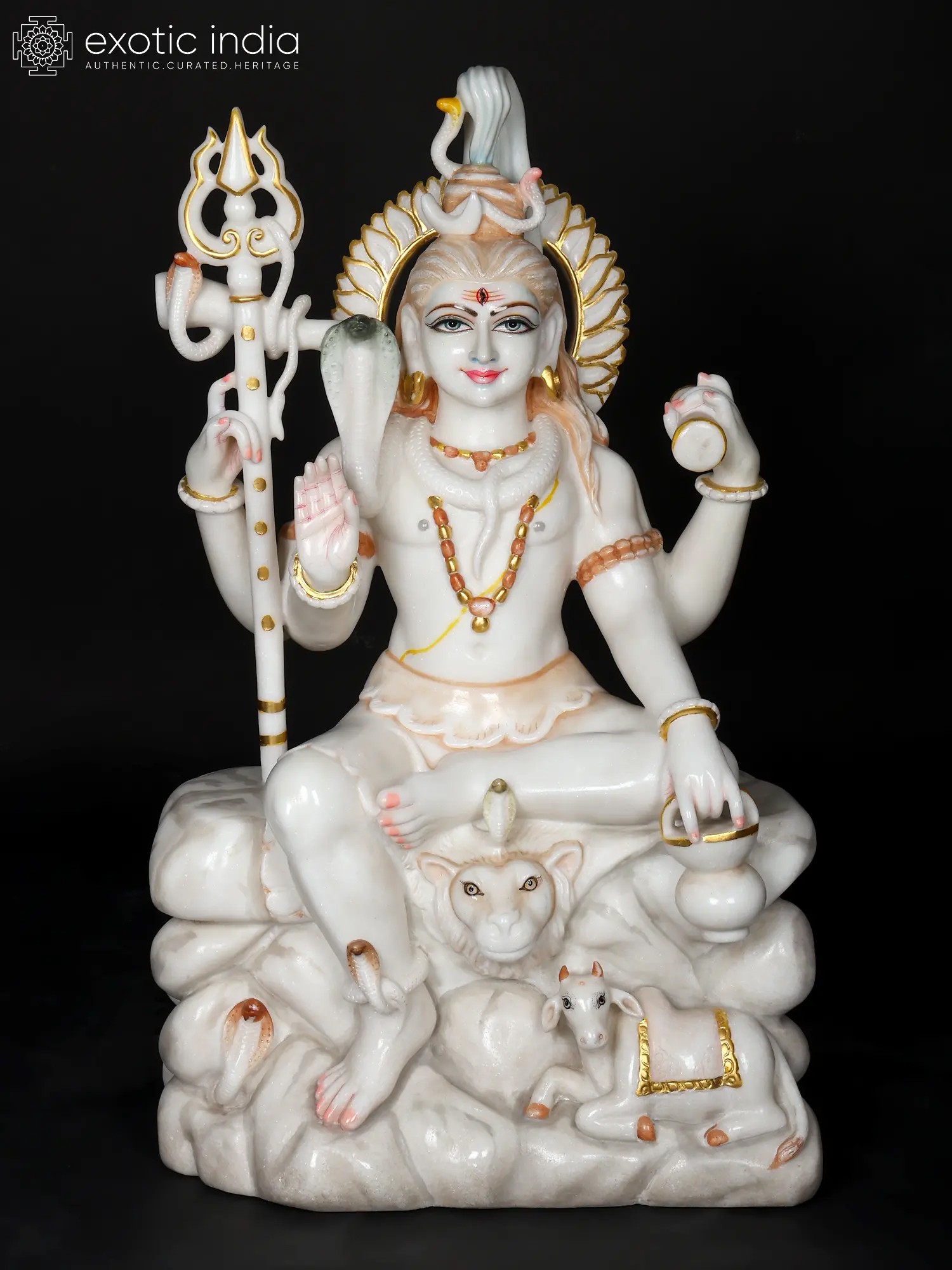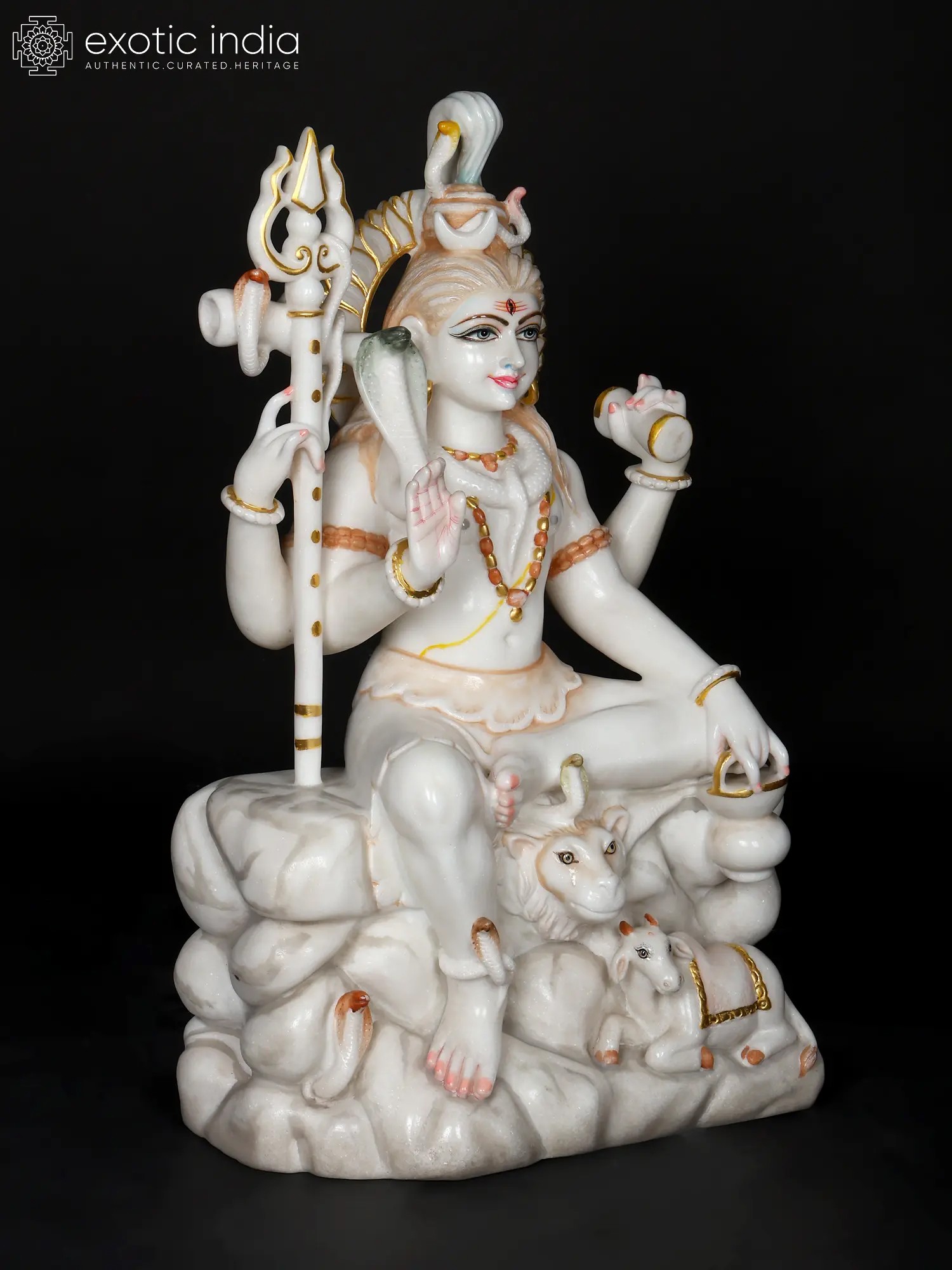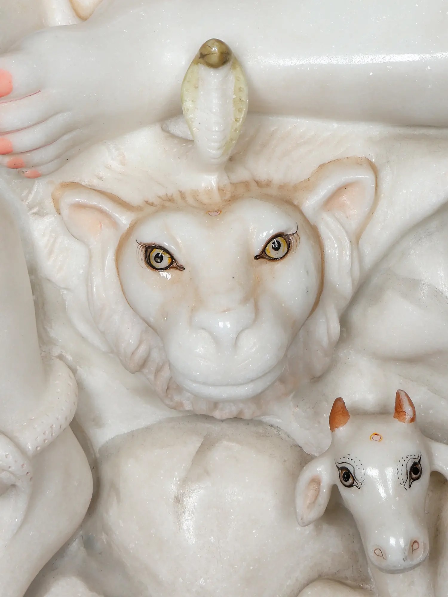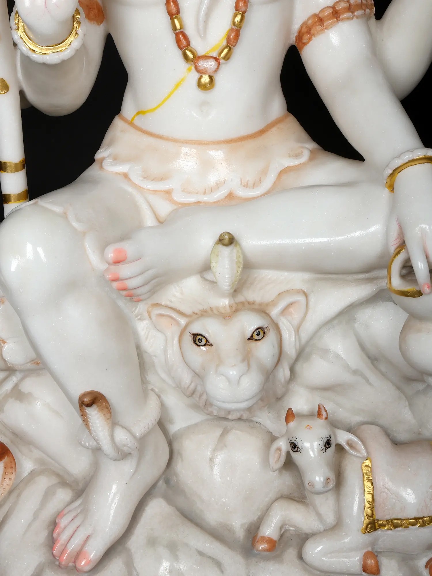 12" Nandi Waiting of Lord Shiva | White Makrana Marble Sculpture