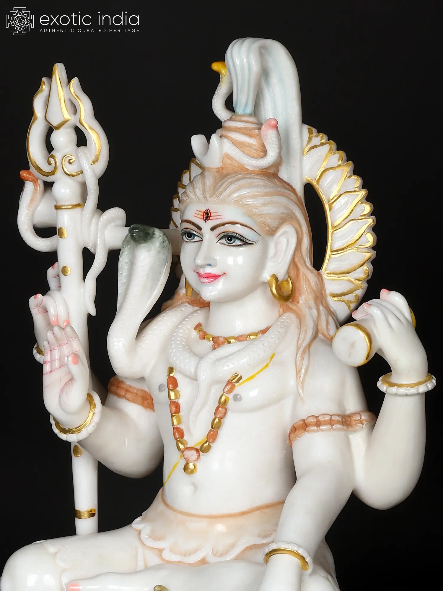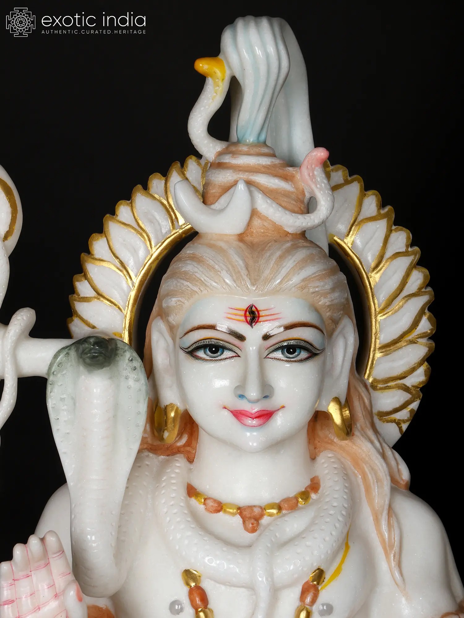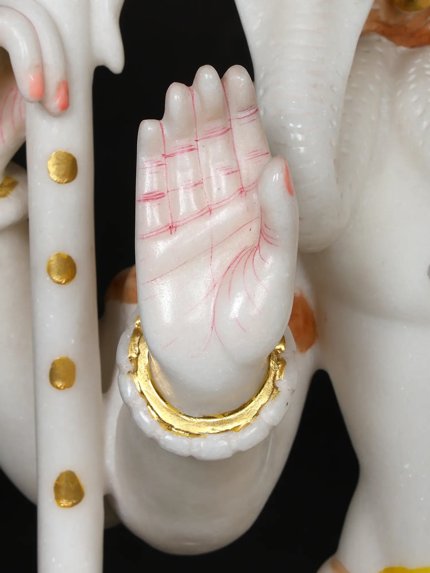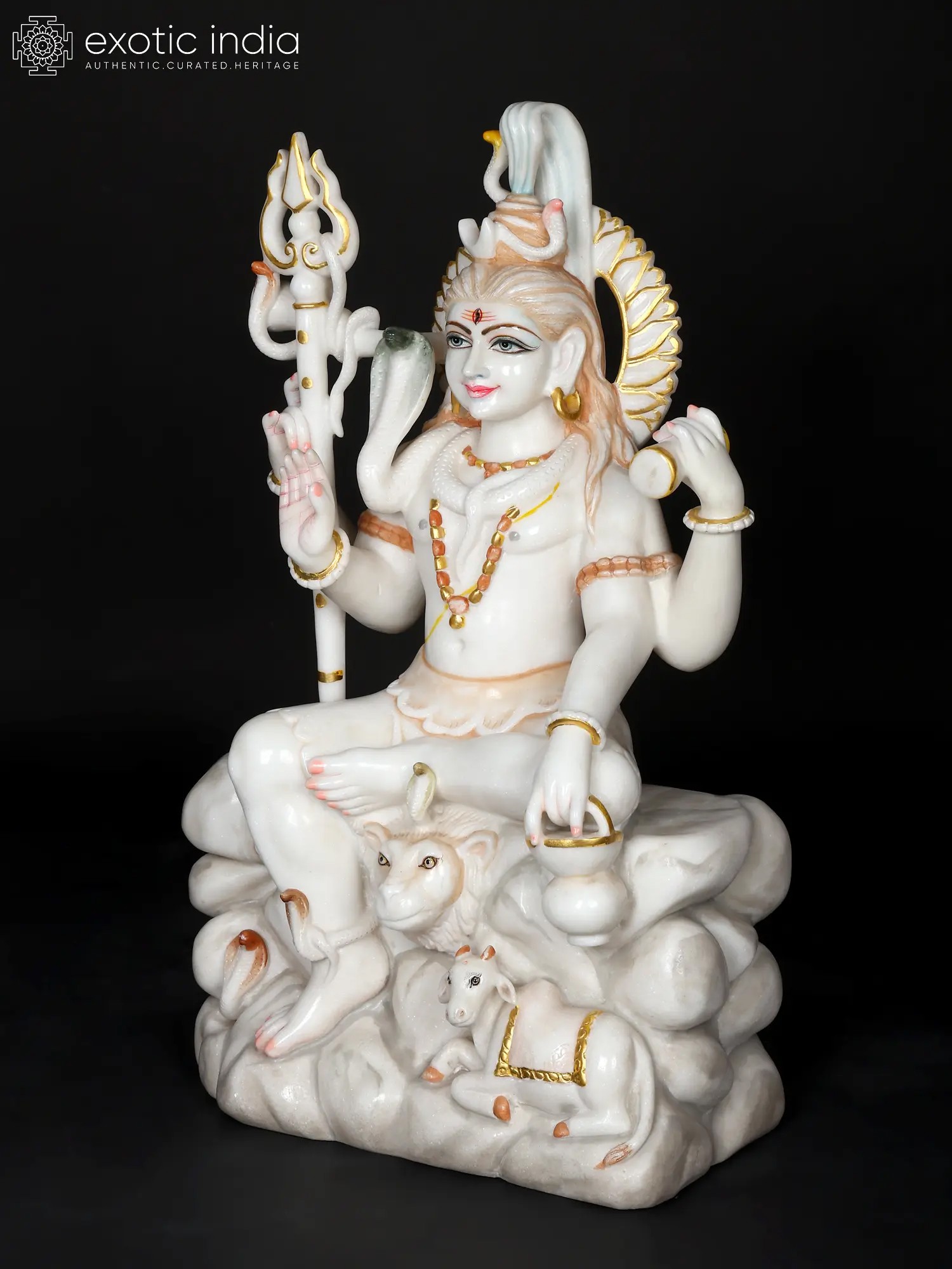 12" Nandi Waiting of Lord Shiva | White Makrana Marble Sculpture