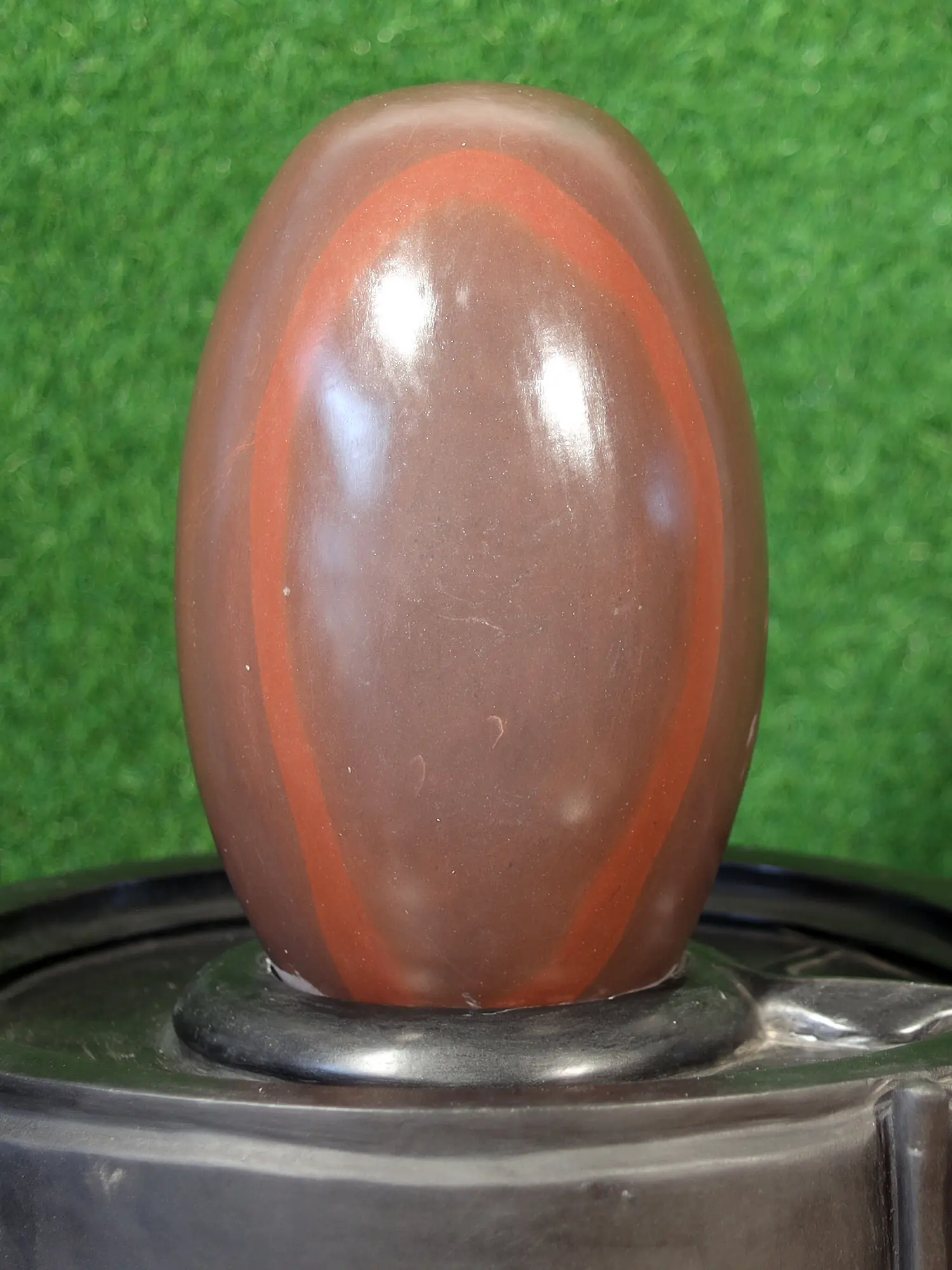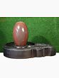 The Shiva Lingam is the aniconic representation of Lord Shiva, symbolizing his creative, preservative, and destructive aspects. It is the formless, abstract representation of the divine masculine energy that pervades the cosmos. This particular lingam, with its natural form and the distinctive reddish markings, echoes the ancient traditions where such stones were highly prized for their spiritual potency. The oval shape signifies the cosmic egg, from which all creation emerged, and the presence of the reddish bands is often interpreted as the primal energy or the eternal flame of Shiva. The base, a traditional yoni, represents the divine feminine energy, Shakti, the creative force that supports and nourishes the universe. Together, the lingam and yoni symbolize the harmonious union of Shiva and Shakti, the cosmic dance of creation and dissolution that governs existence. Worshipping the Shiva Lingam is believed to bring spiritual growth, prosperity, and the removal of obstacles.