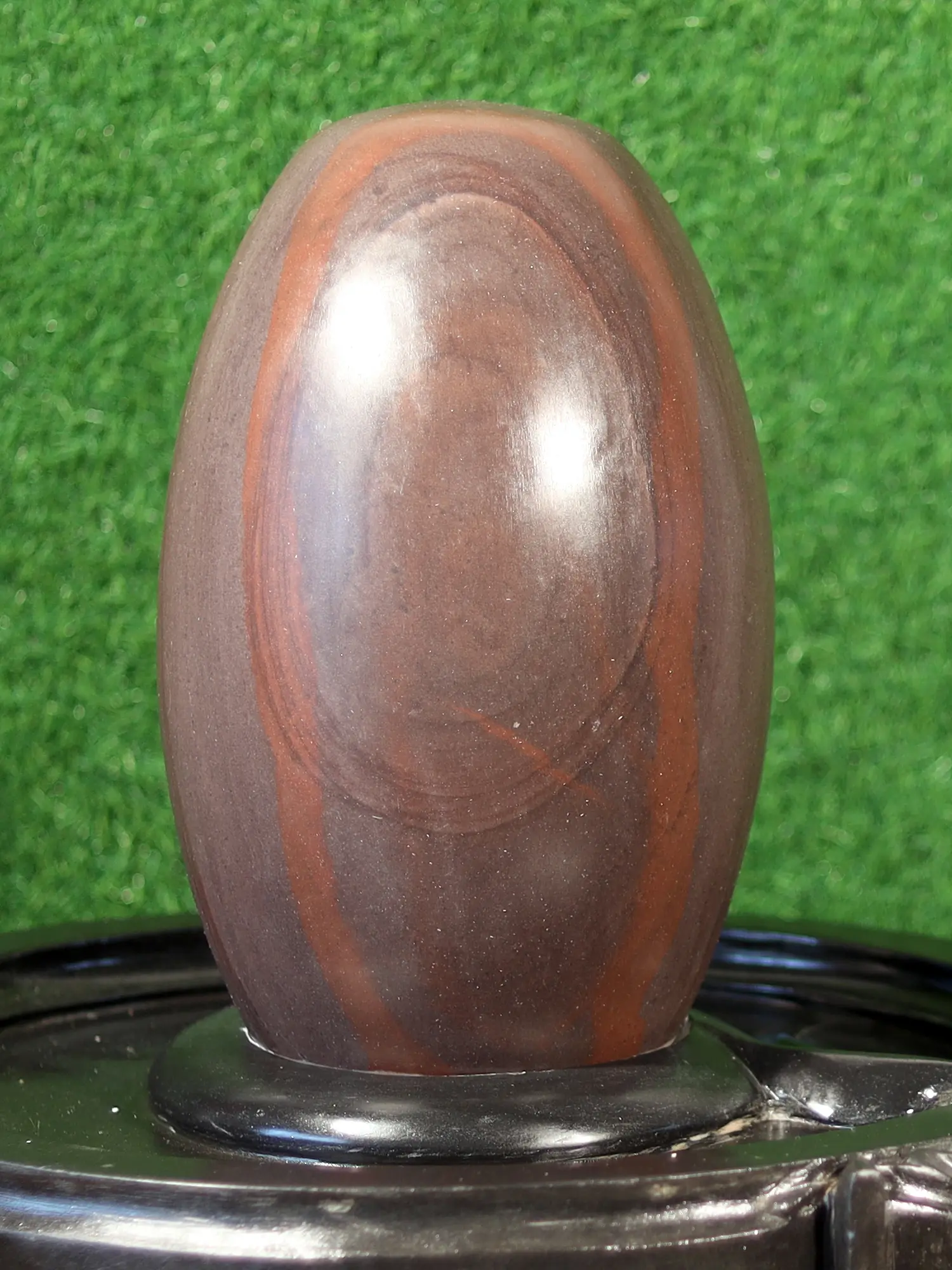 The Shiva Lingam represents the unmanifest, primordial creative energy of the universe. It is the formless form of Lord Shiva, the source from which all creation springs and to which all things return. The smooth, ovular shape signifies the boundless and eternal nature of the divine consciousness. The mesmerizing, natural bands of color within the stone further enhance its inherent beauty and spiritual significance, whispering tales of the earth's ancient creation. In Hindu mythology, Shiva's lingam form is often depicted as a pillar of light or cosmic fire, symbolizing his boundless power and omnipresence. It is worshipped not as an idol, but as a representation of the formless Brahman, the ultimate reality.