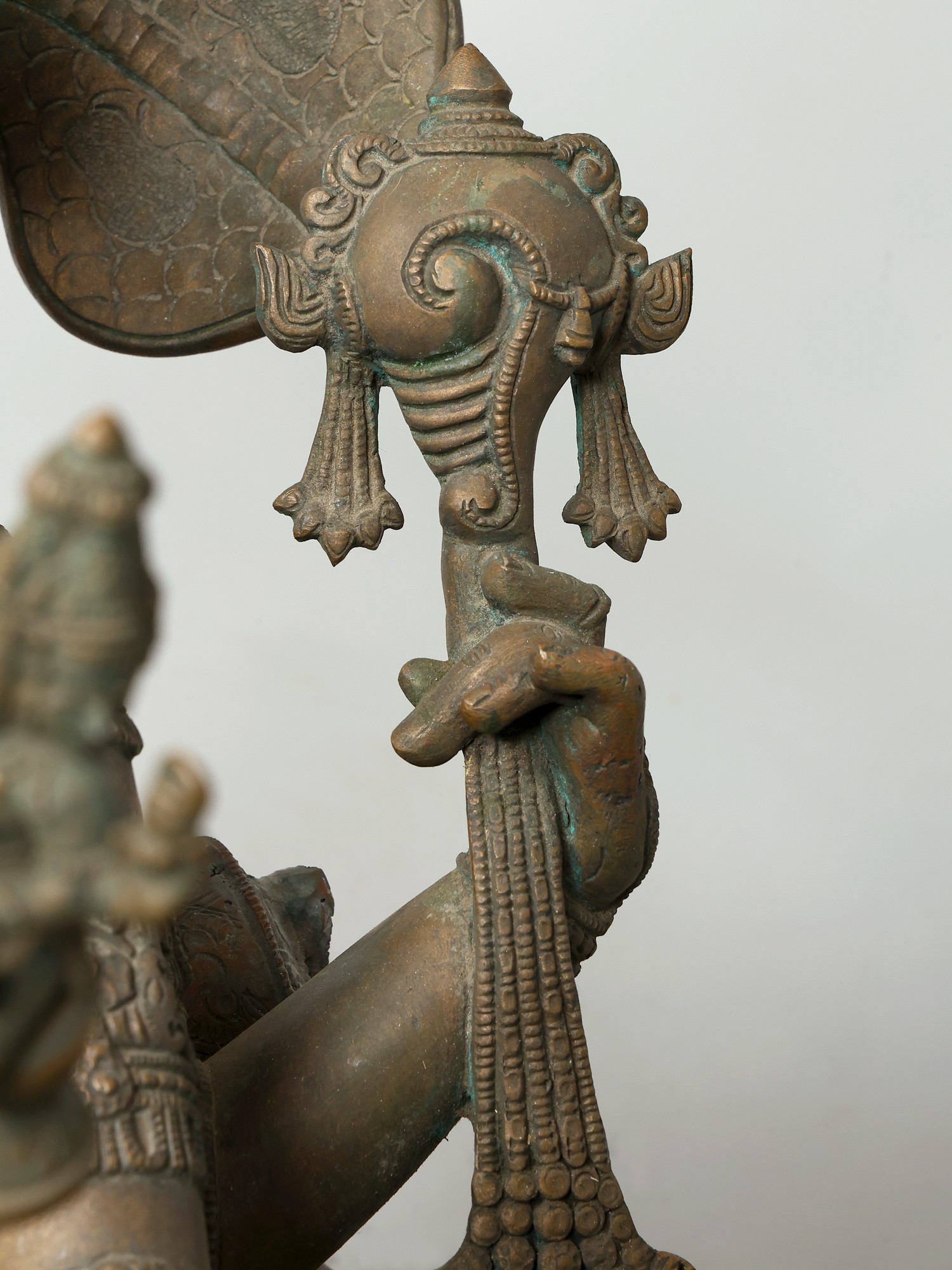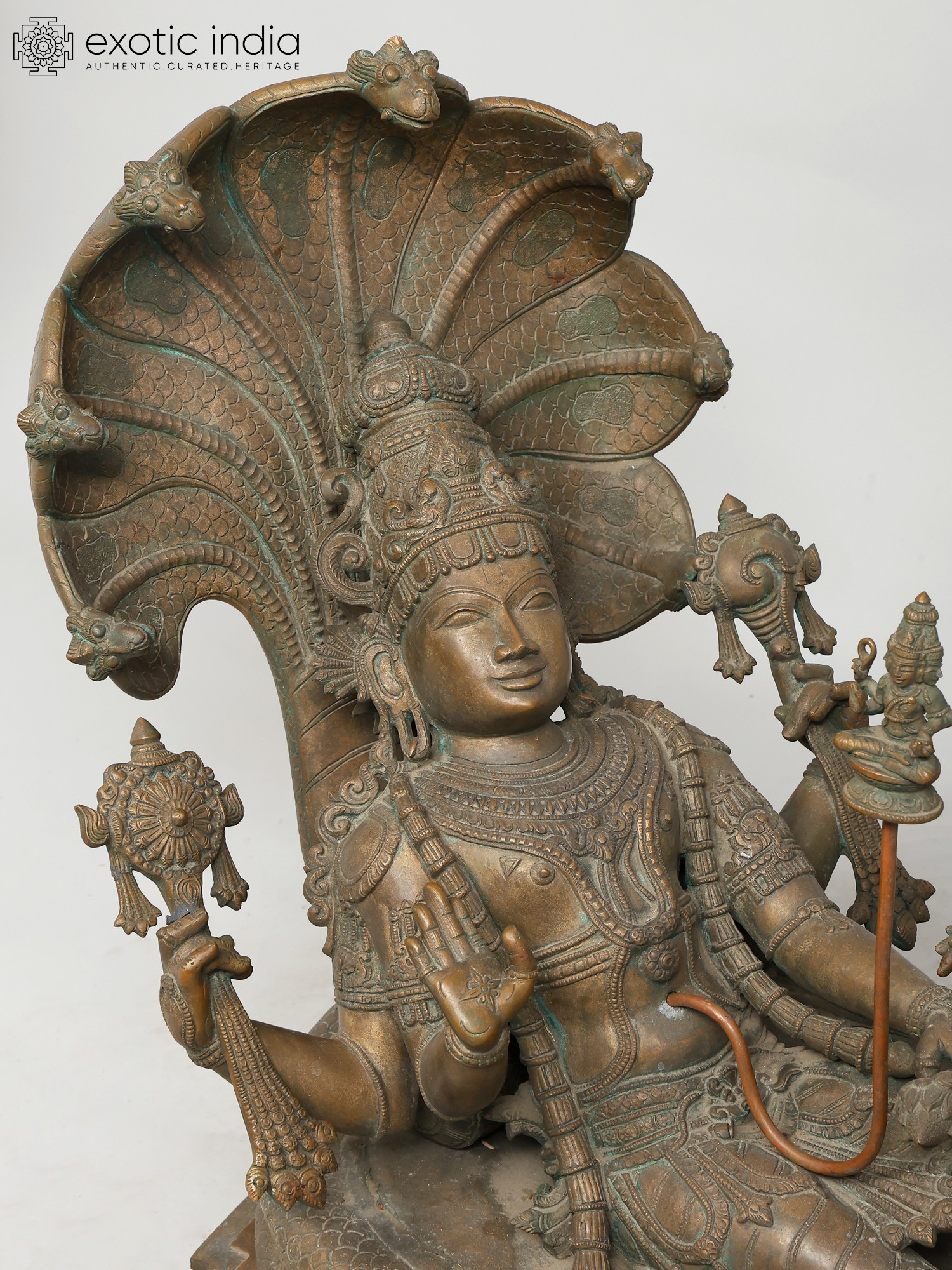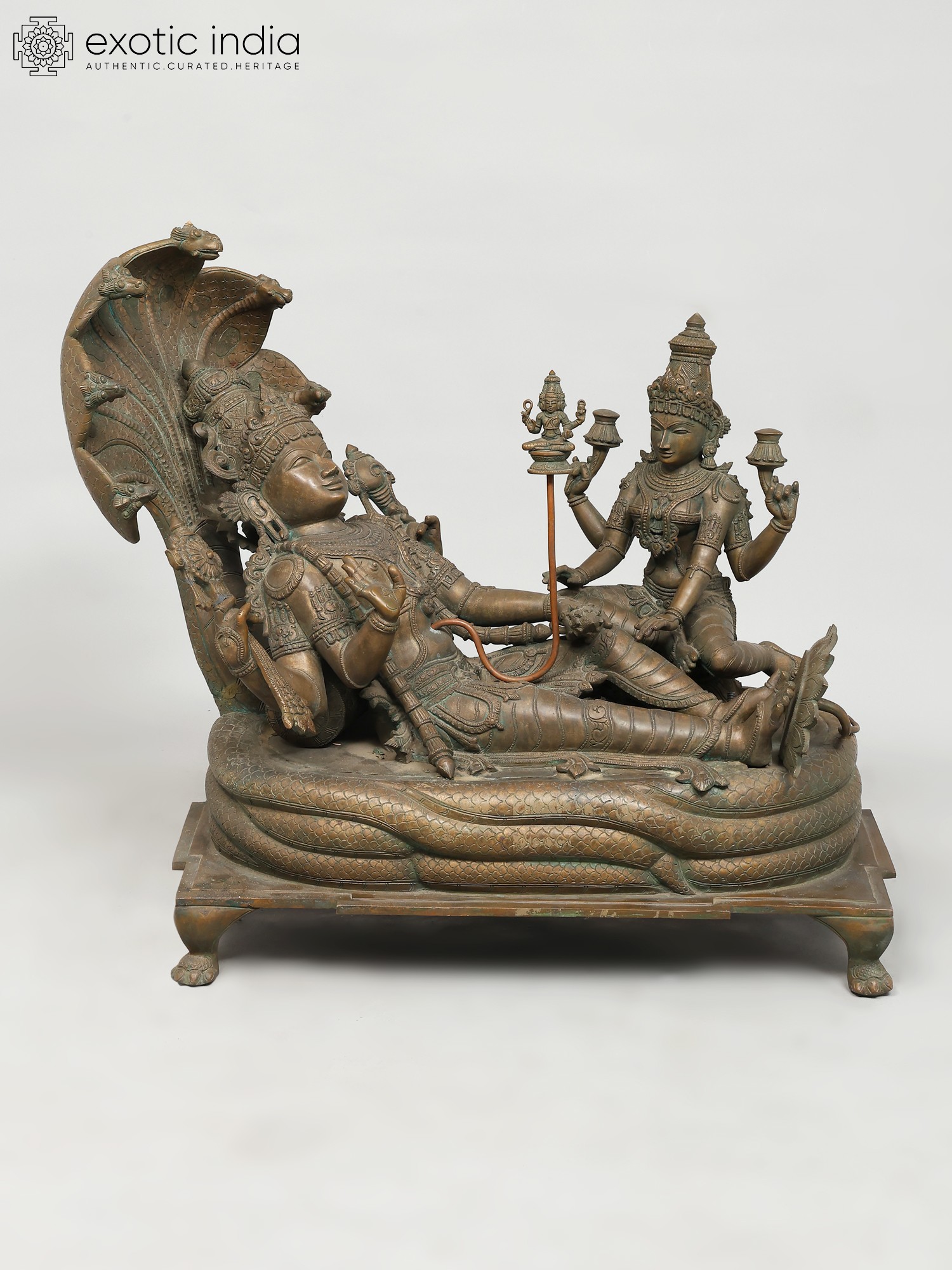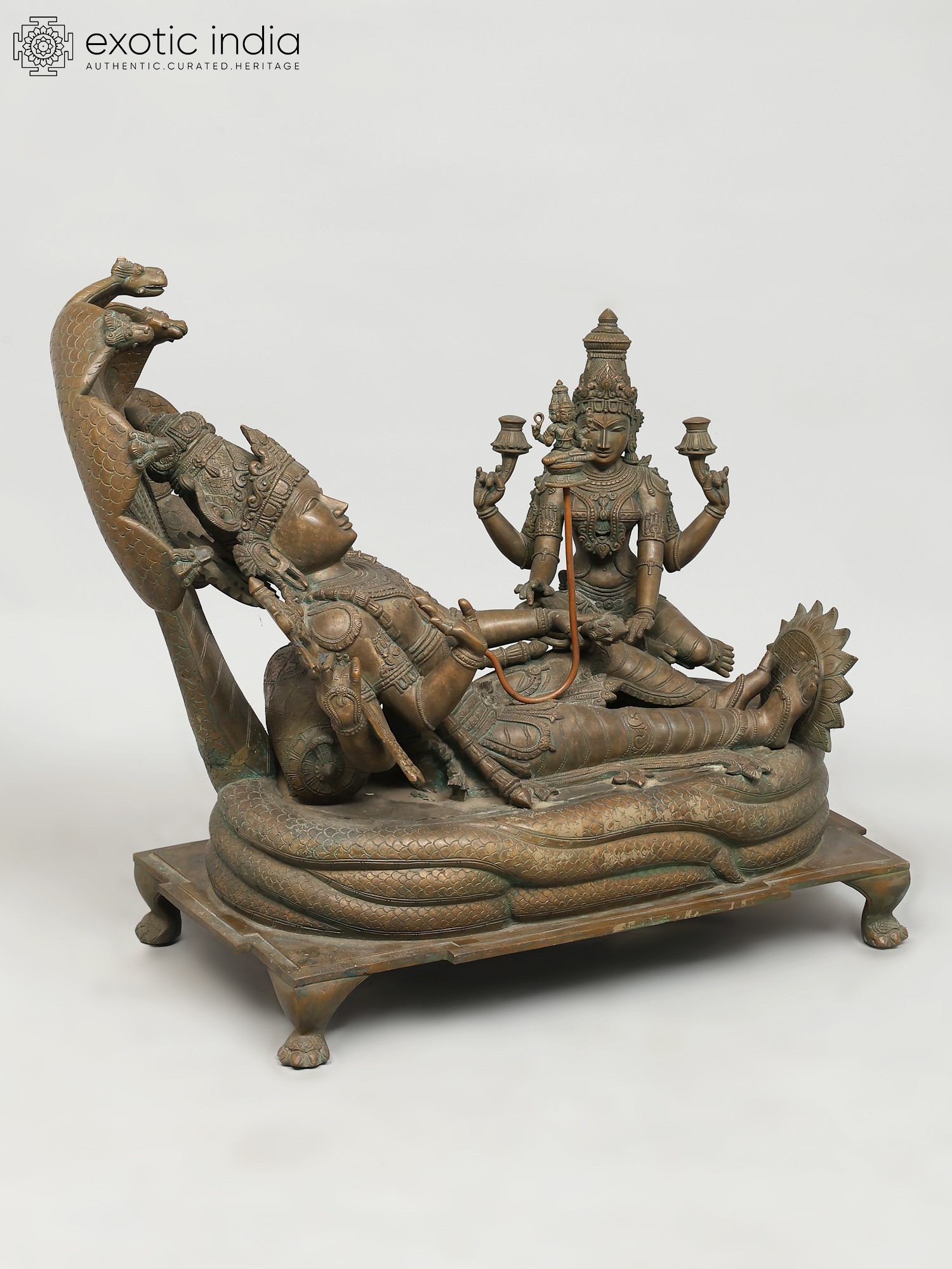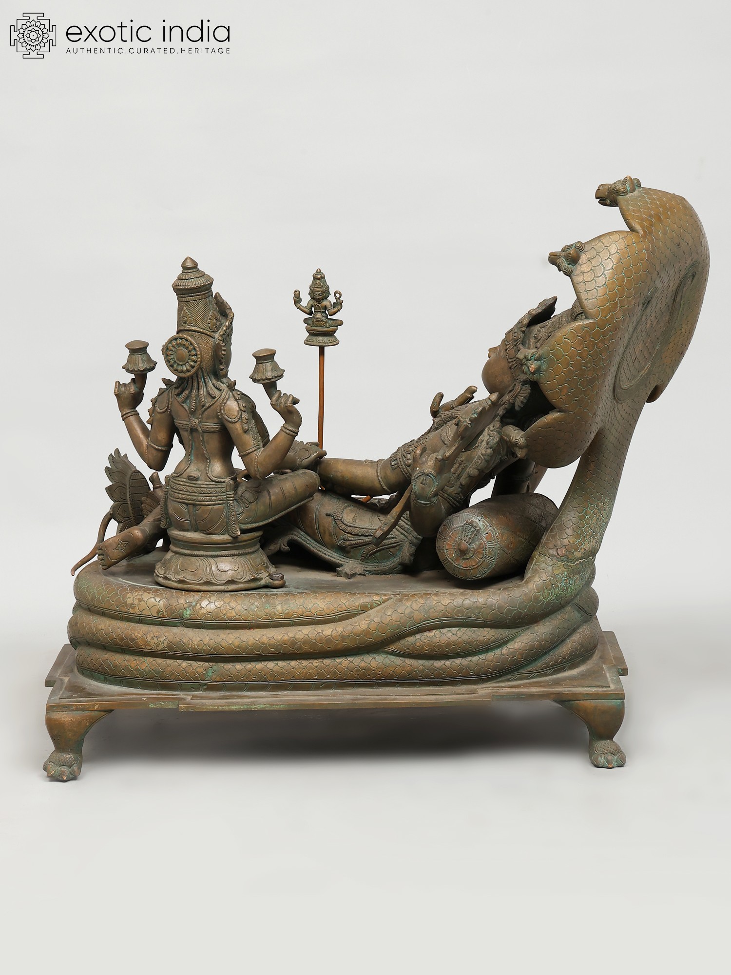 This description of Vishnu-Narayana in his cosmic ocean or Ksheersagar has been transformed into a divine vision in the bronze sculpture.