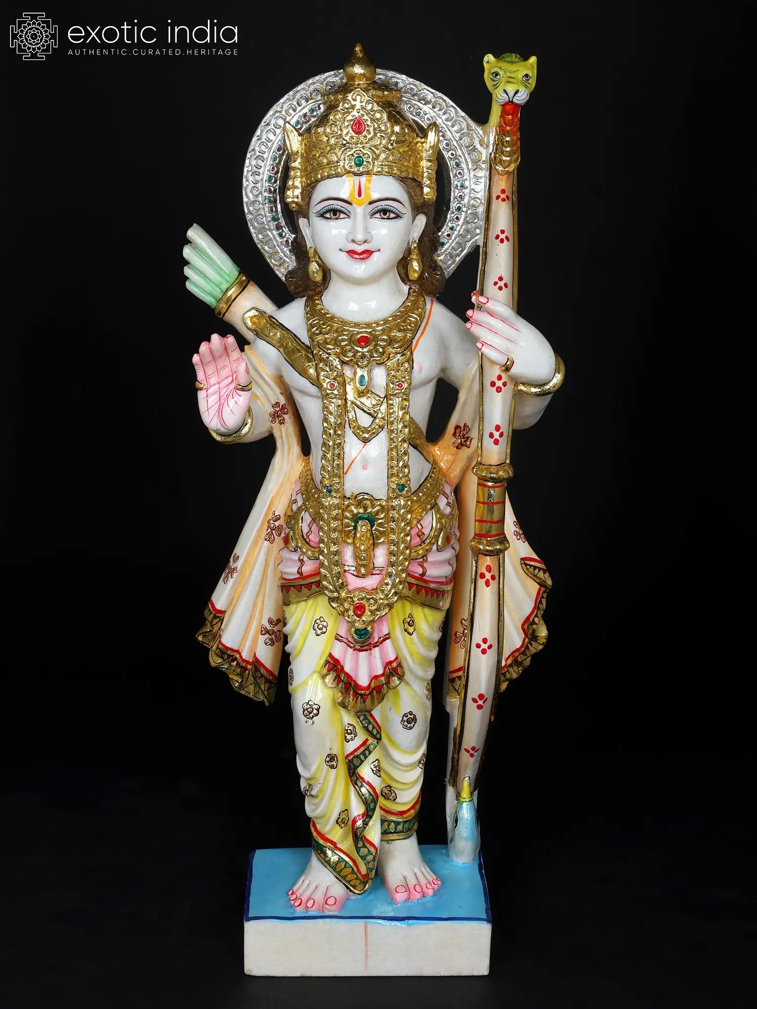 30" Large Durga Maa Statue Seated On Lion In Marble