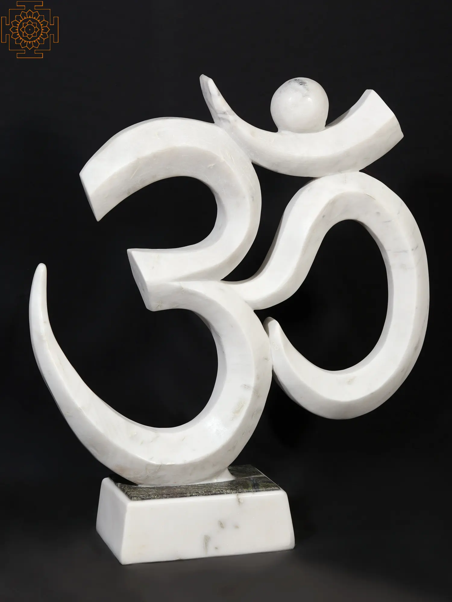 In Yoga, Om is the Beej Mantra for the third eye chakra center. Regular recitation of the Om mantra helps one calm one's nervous system and connect with nature. This Large Om, crafted from pristine white marble, is a revered symbol of deep meditation. The white marble's pristine luster complementing Om's divine shape is a beautiful sight for the beholder. Om, considered the primordial sound of the universe, embodies profound significance in Hindu tradition. When placed in homes or temples, this statue serves as a focal point for meditation and prayer. Its presence signifies the pursuit of spiritual awakening, inner peace, and an eternal connection with the cosmos.