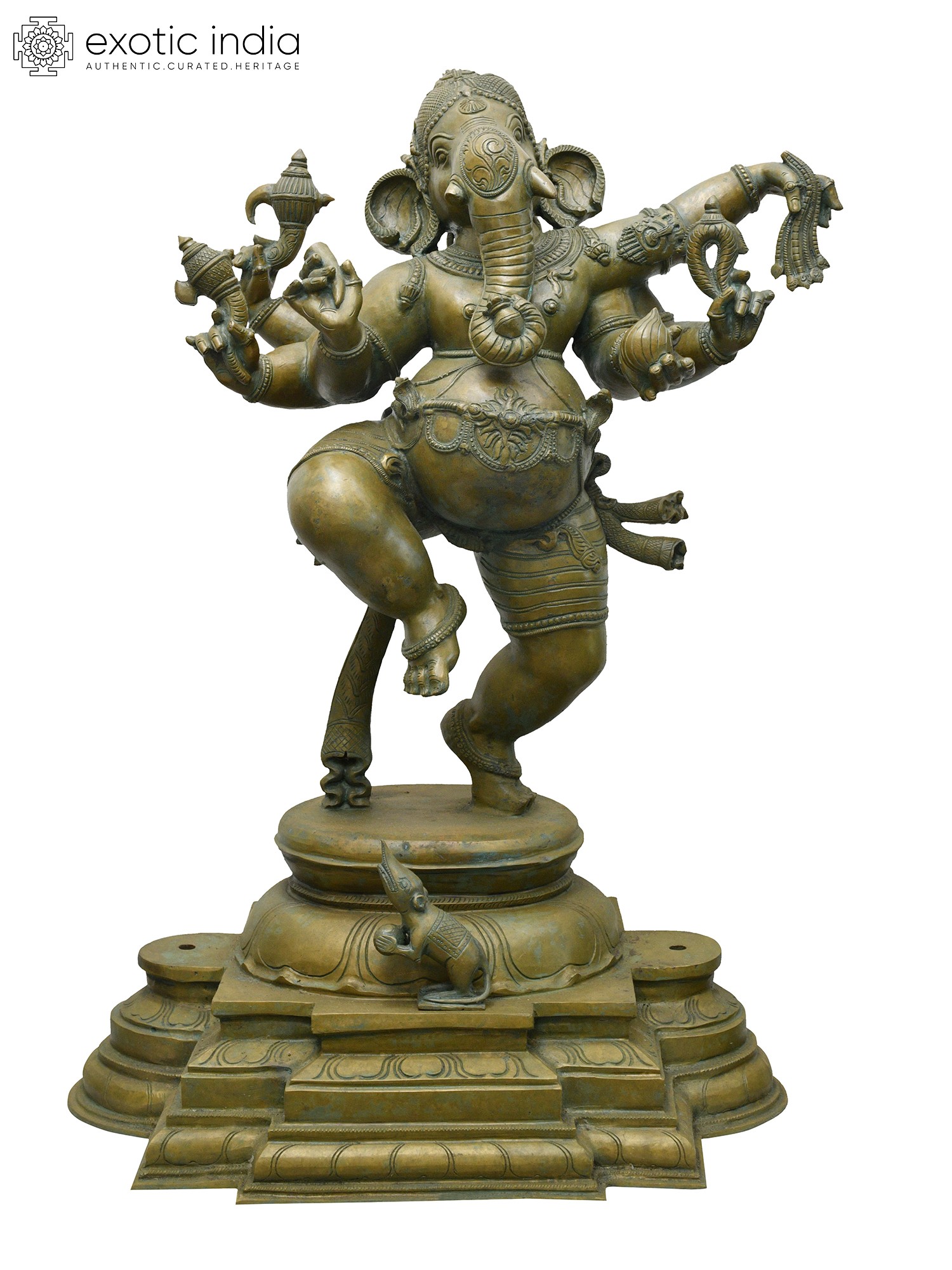 30" Dancing Ganesha Panchaloha Bronze Statue from Swamimalai | Madhuchista Vidhana (Lost-Wax)