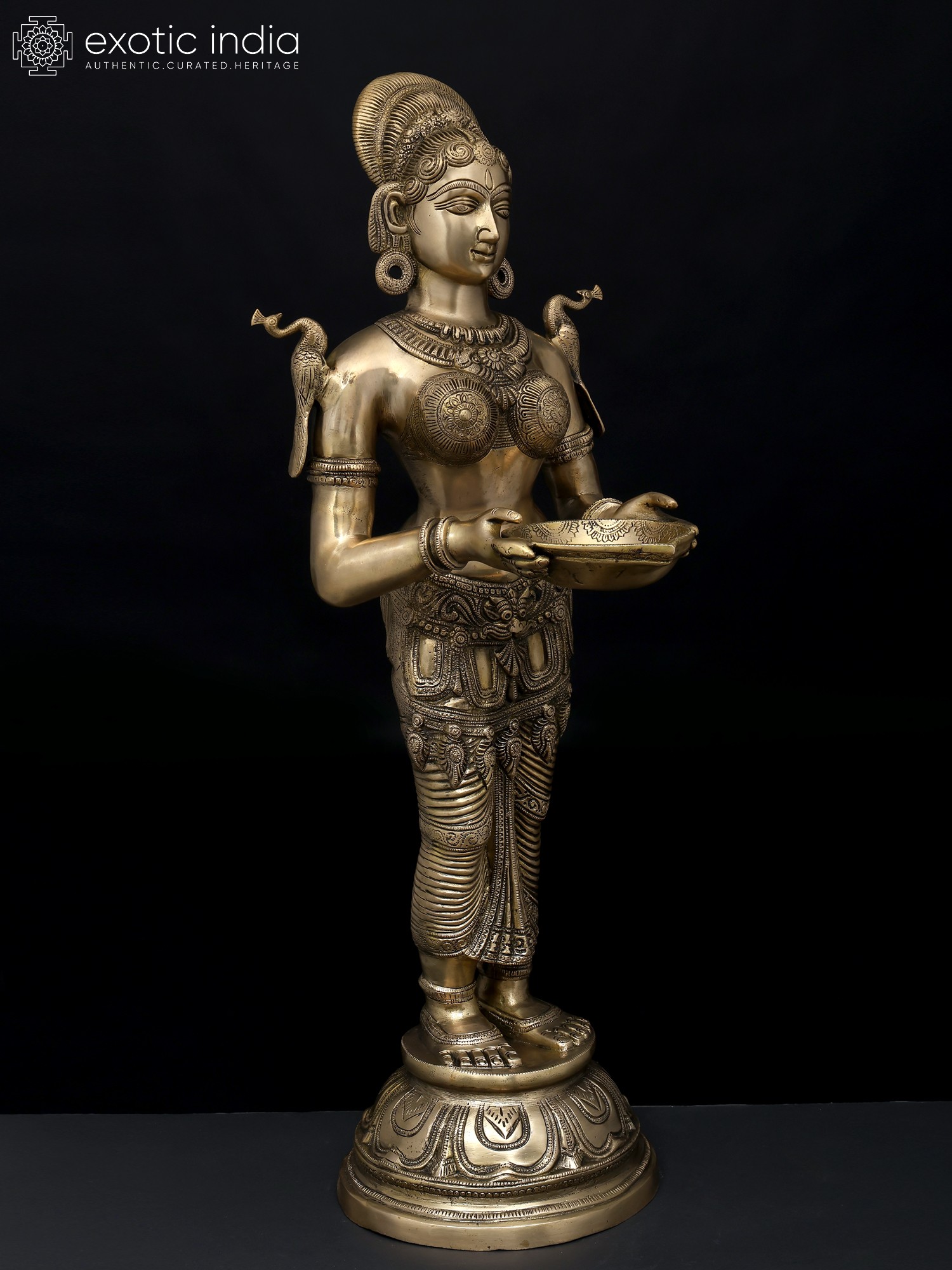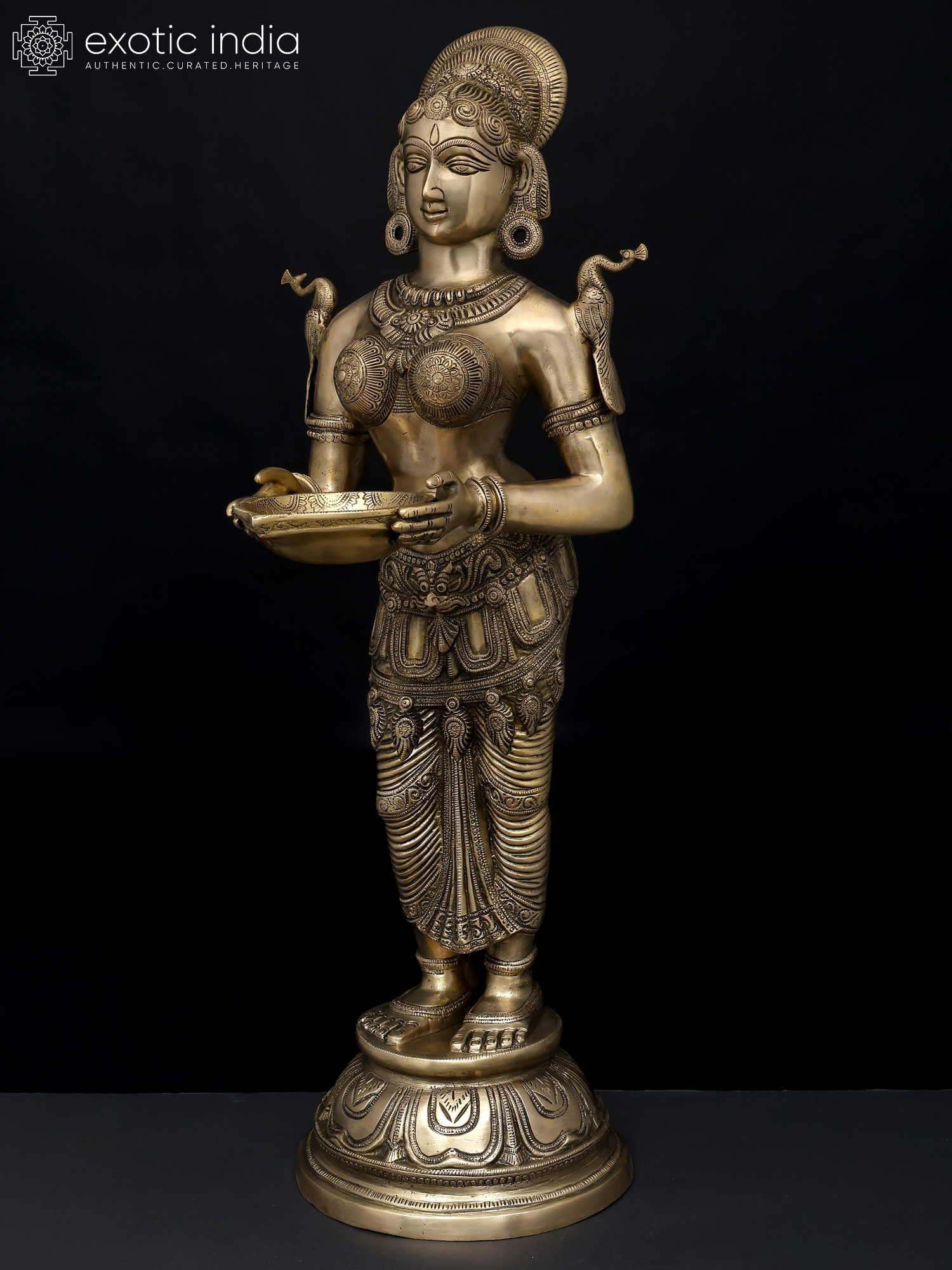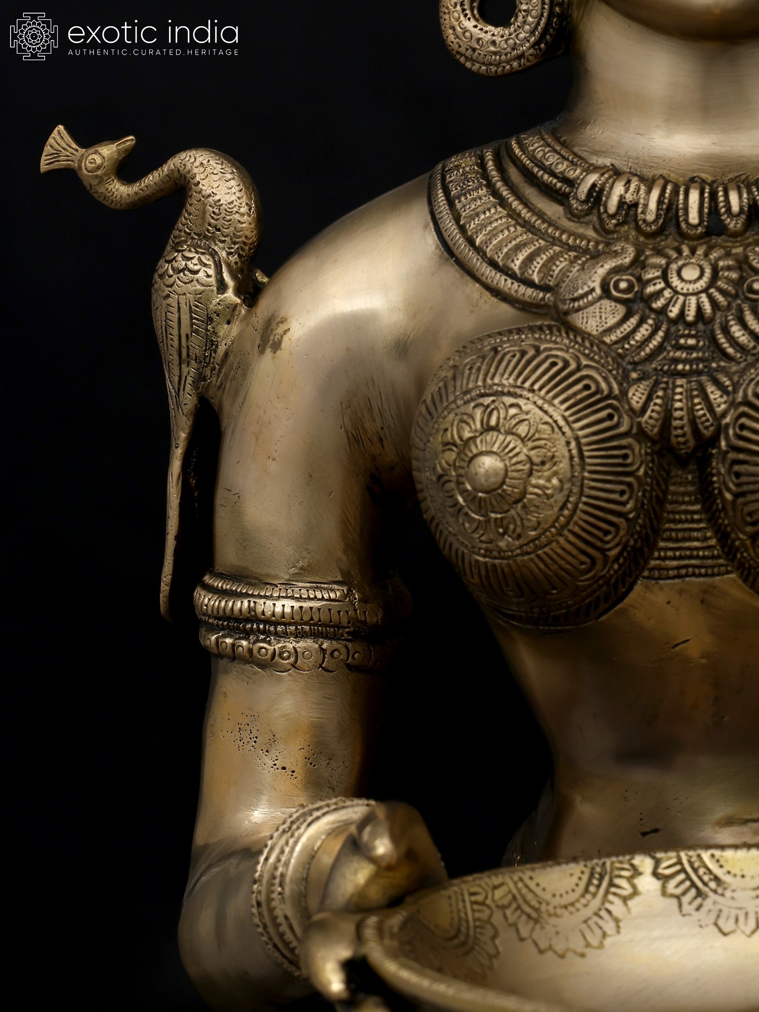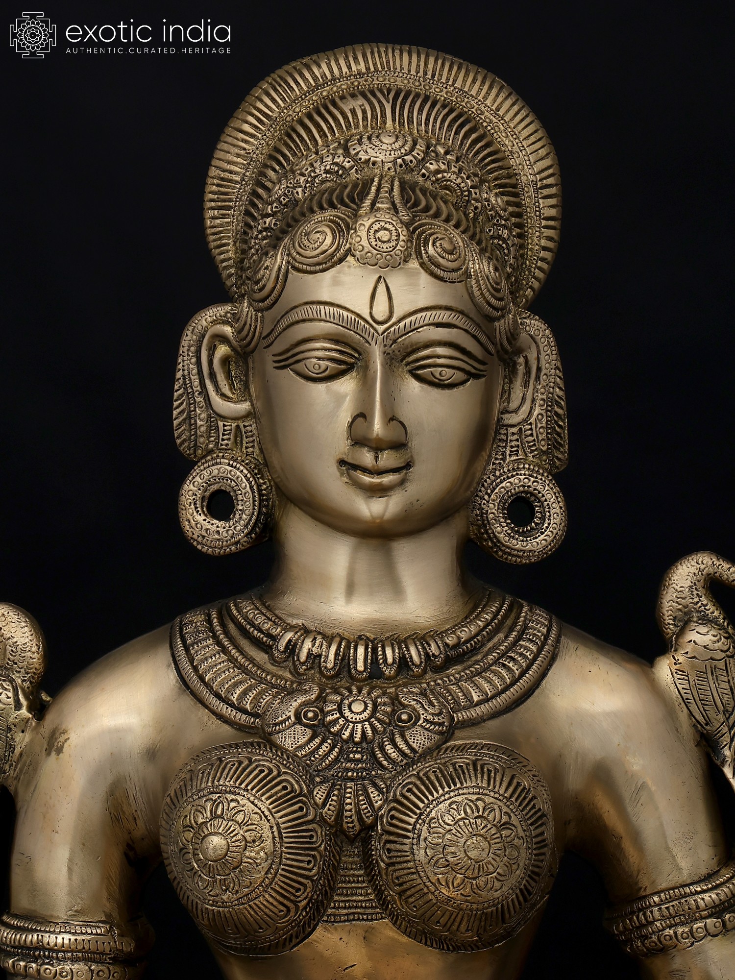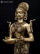 14" Pair of Deep Lakshmi Brass Statues with Inlay Work