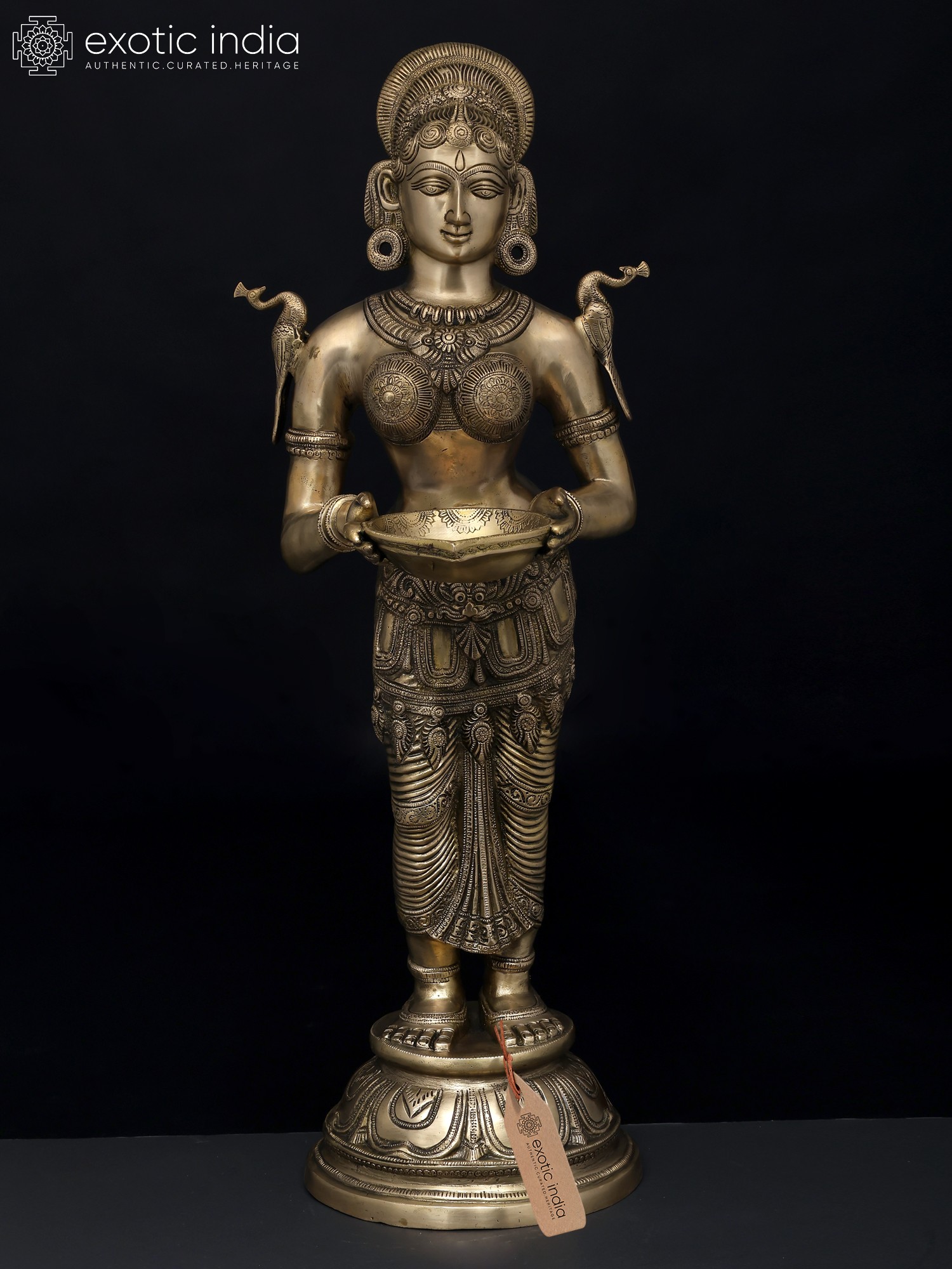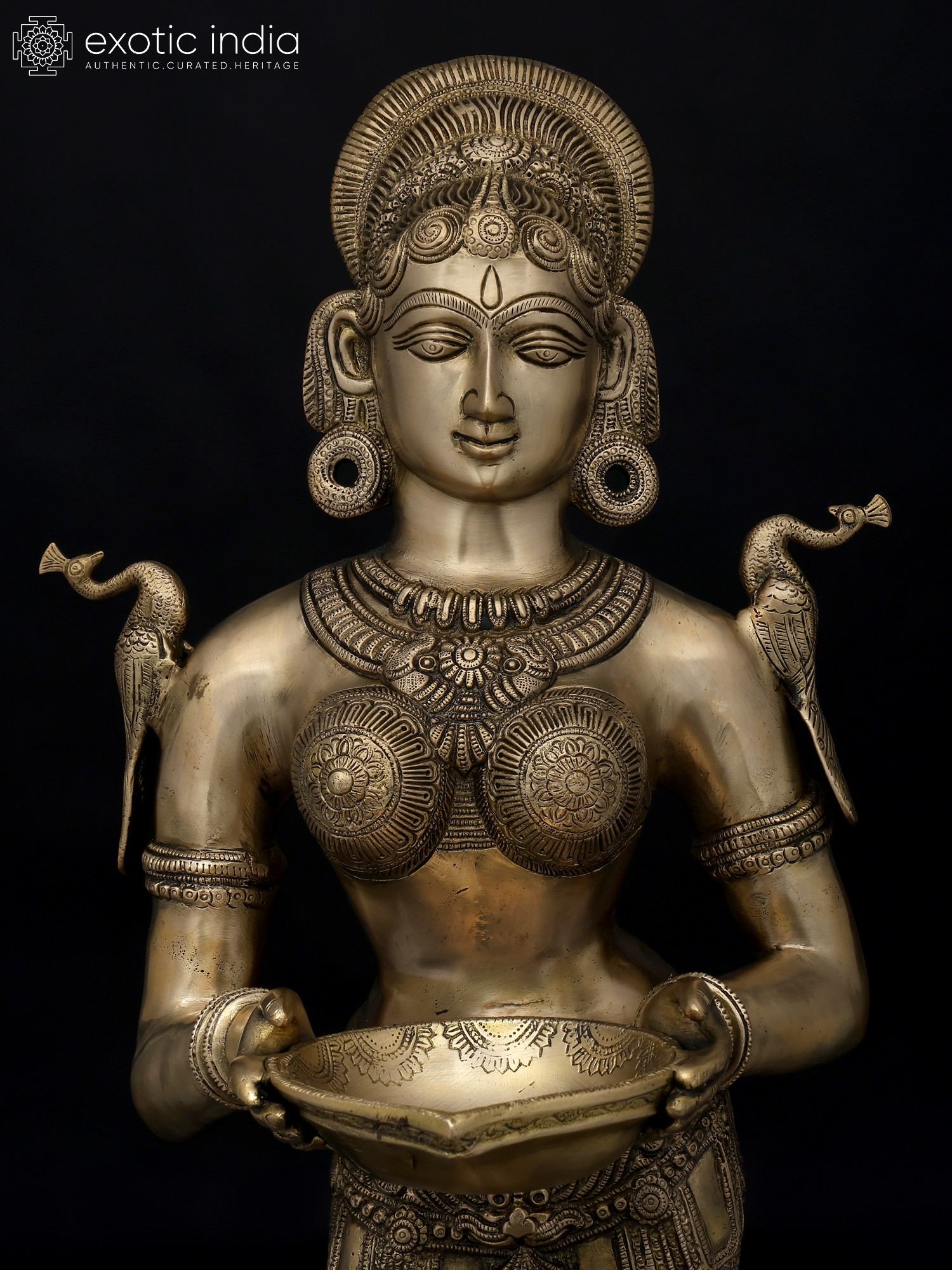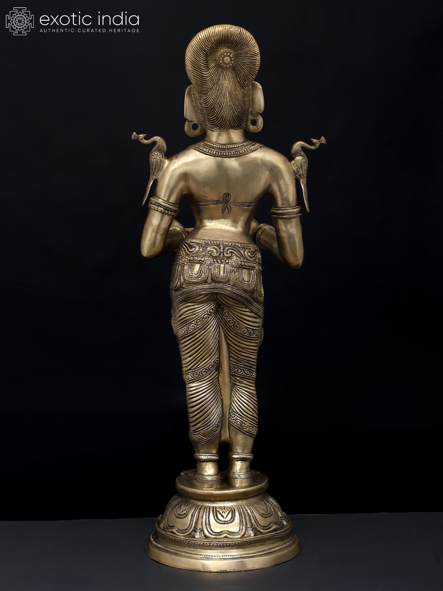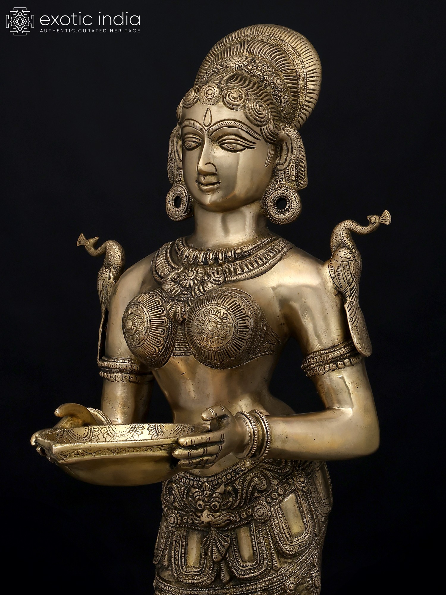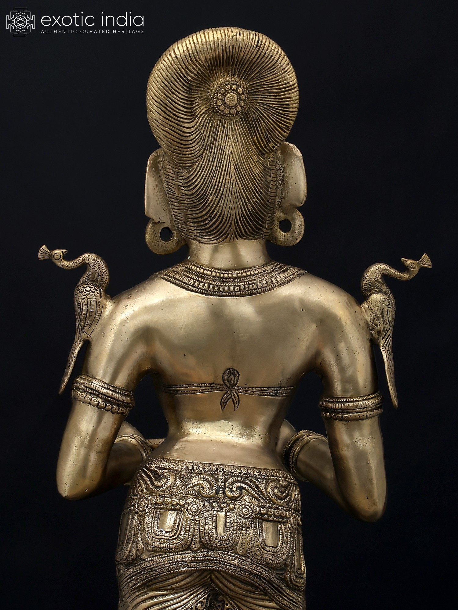 14" Pair of Deep Lakshmi Brass Statues with Inlay Work