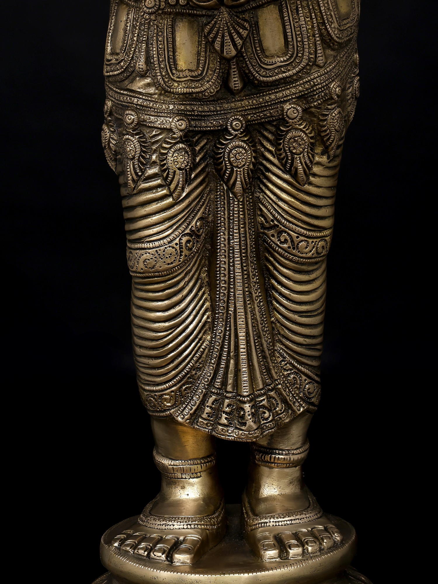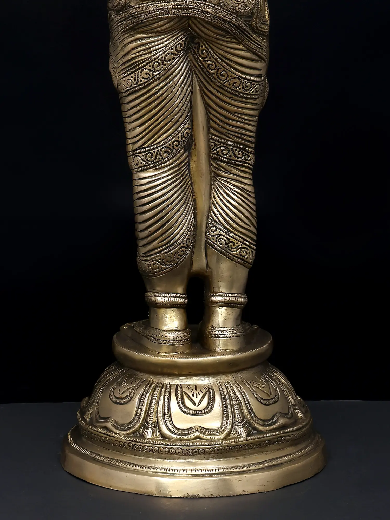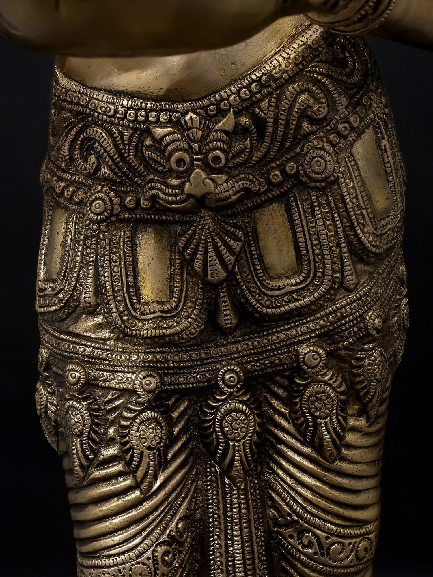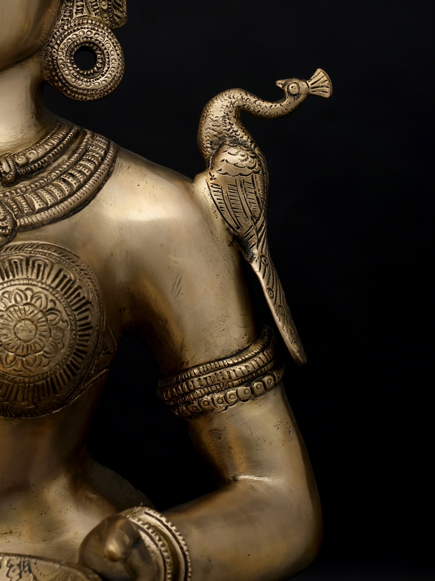 14" Pair of Deep Lakshmi Brass Statues with Inlay Work