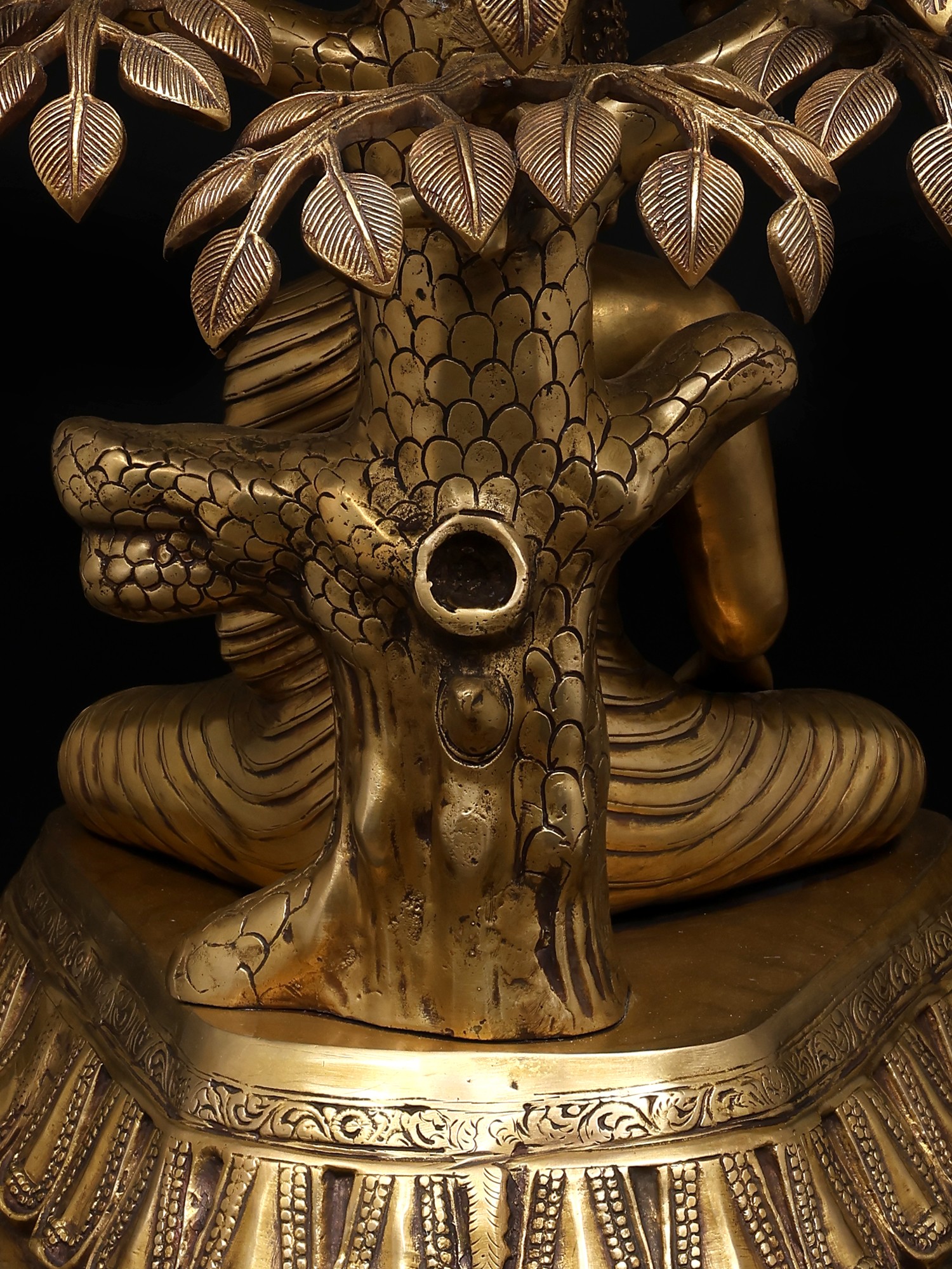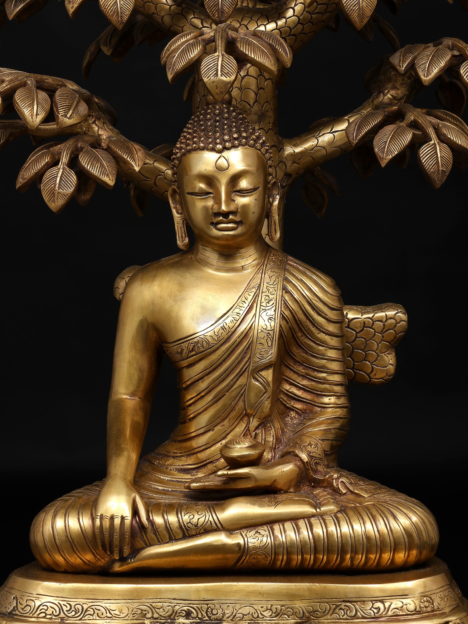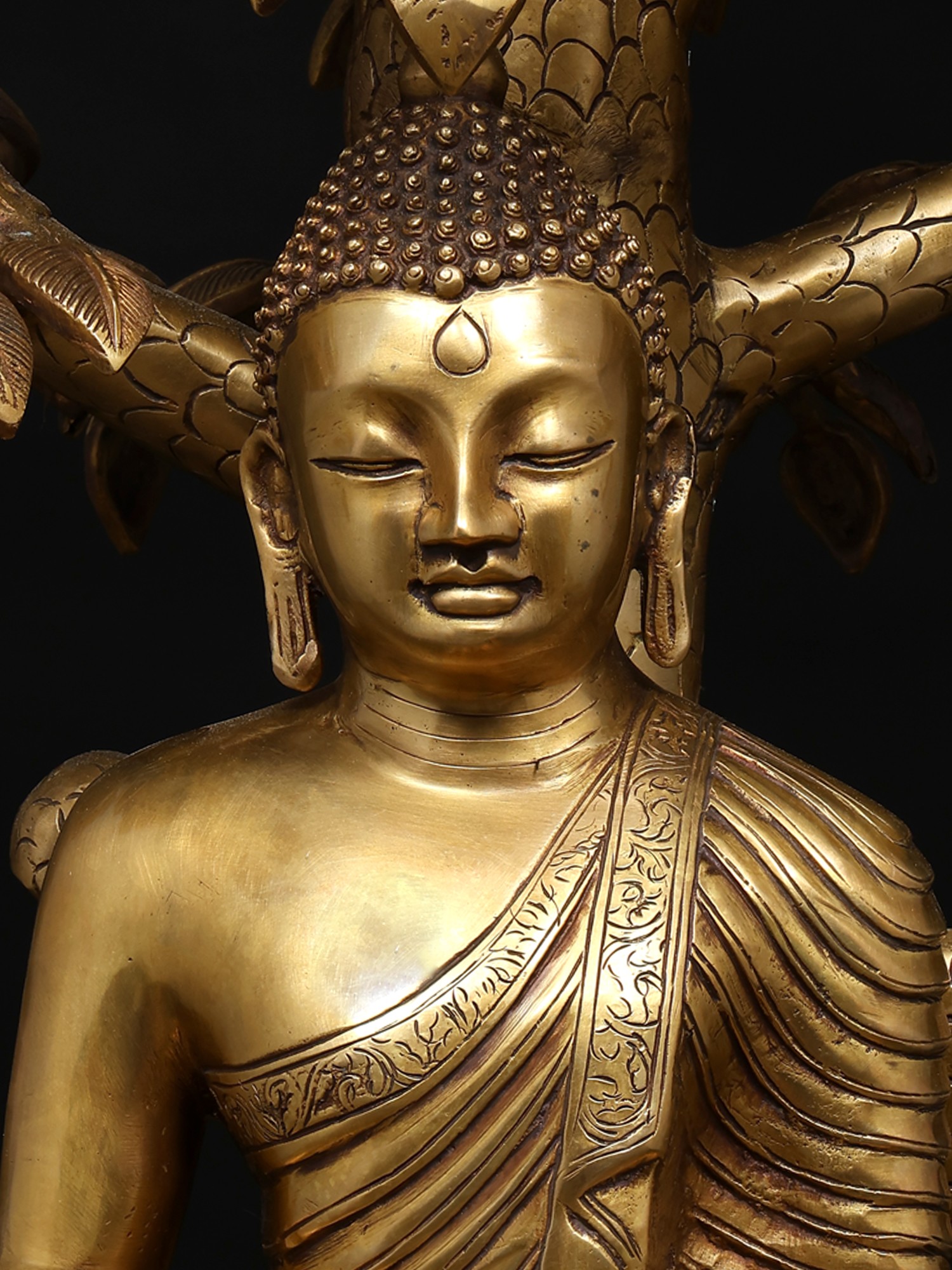 At the age of 35, on the night of a full moon, Buddha attained enlightenment. As he was alone with no one to endorse this momentous event, he called the Earth itself to be his witness by gently touching the ground with his right hand in a gesture known as the Bhumisparsha mudra. The tree of life is a common feature of salvation mythology and is said to be standing at the axis of the cosmos.