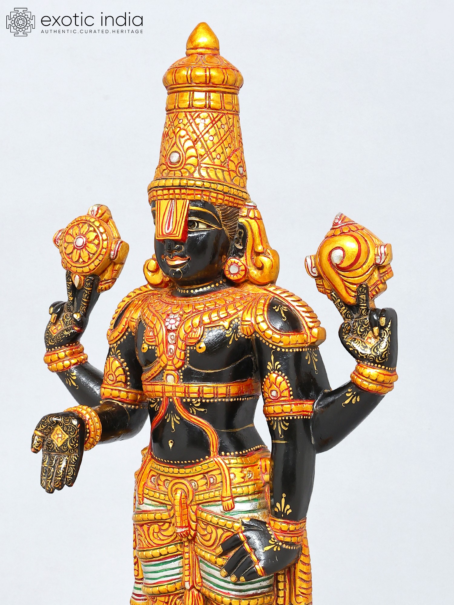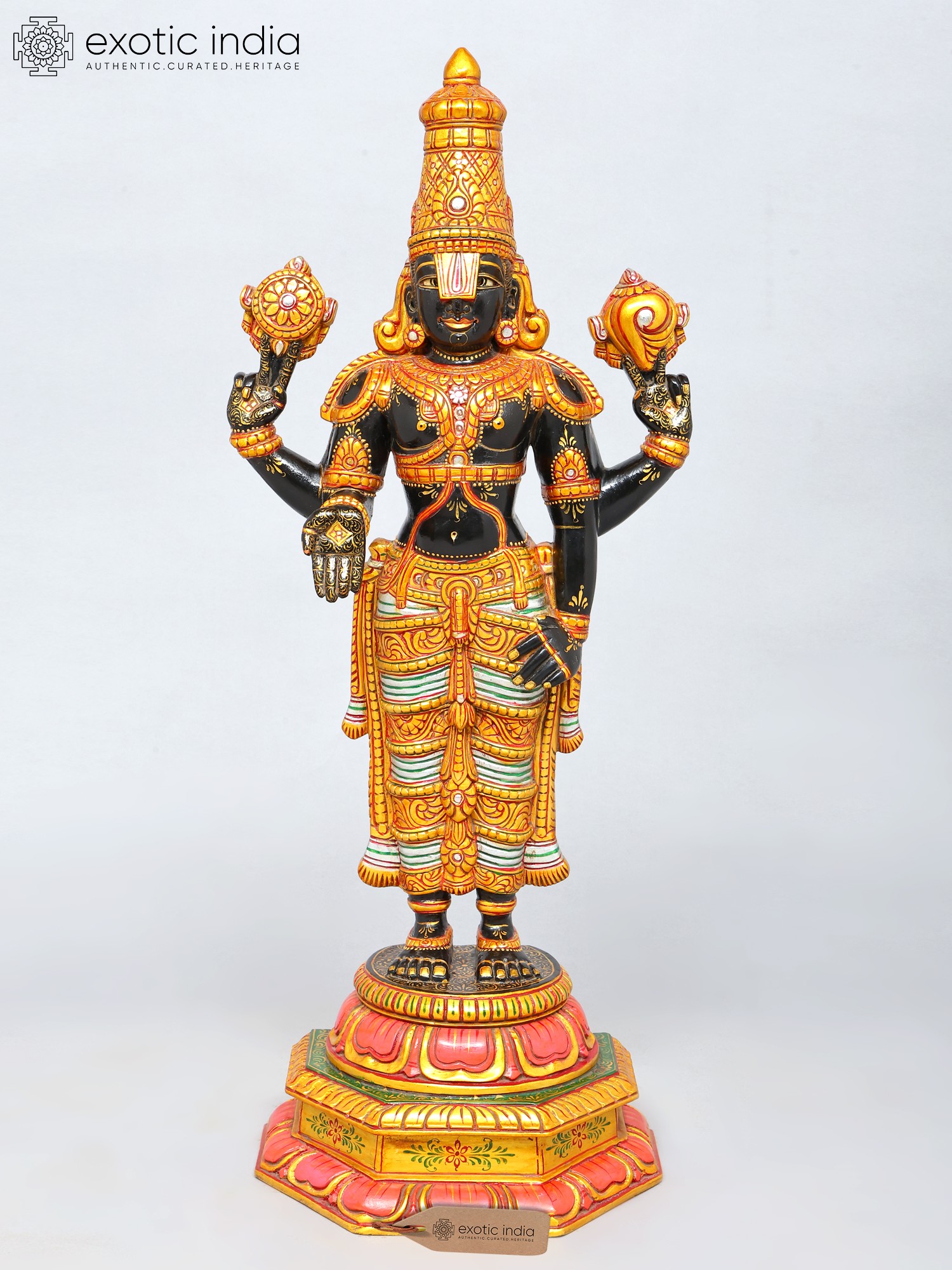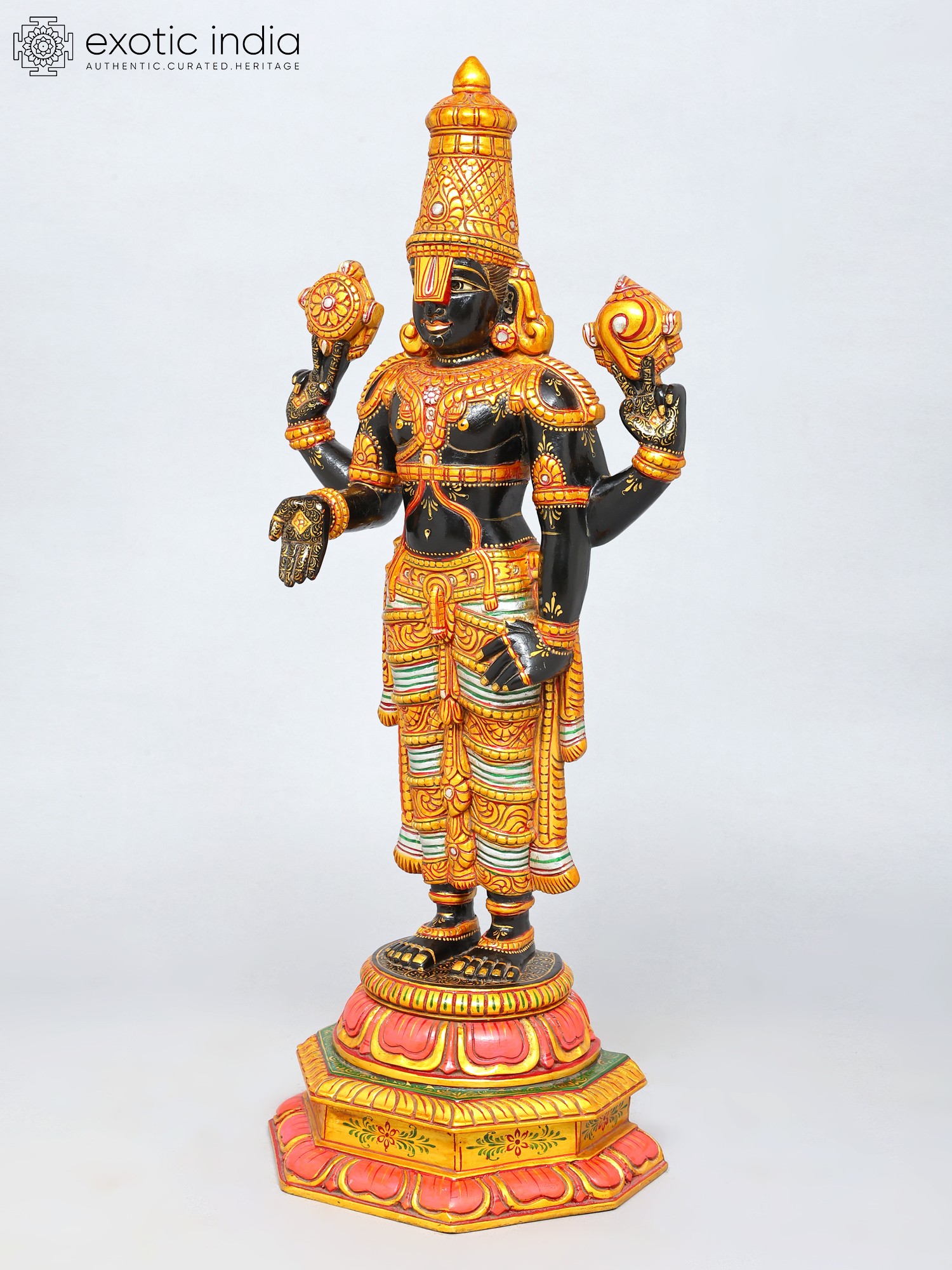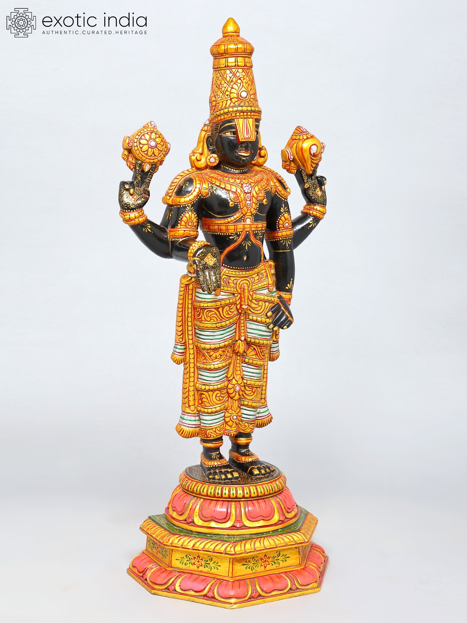 32" Large Beautifully Carved and Hand-Painted Tirupati Balaji (Venkateshvara) | Wood Carved Statue