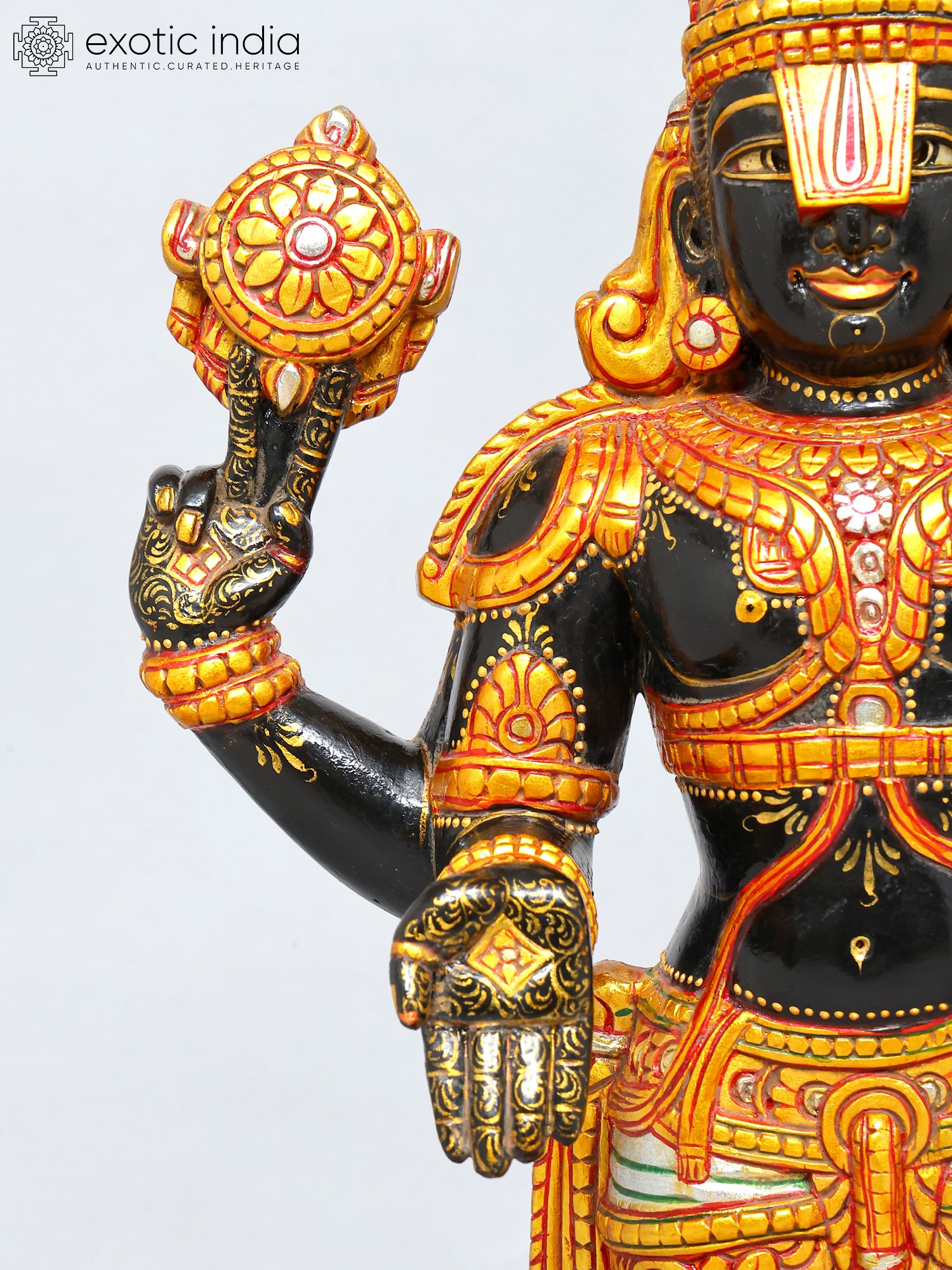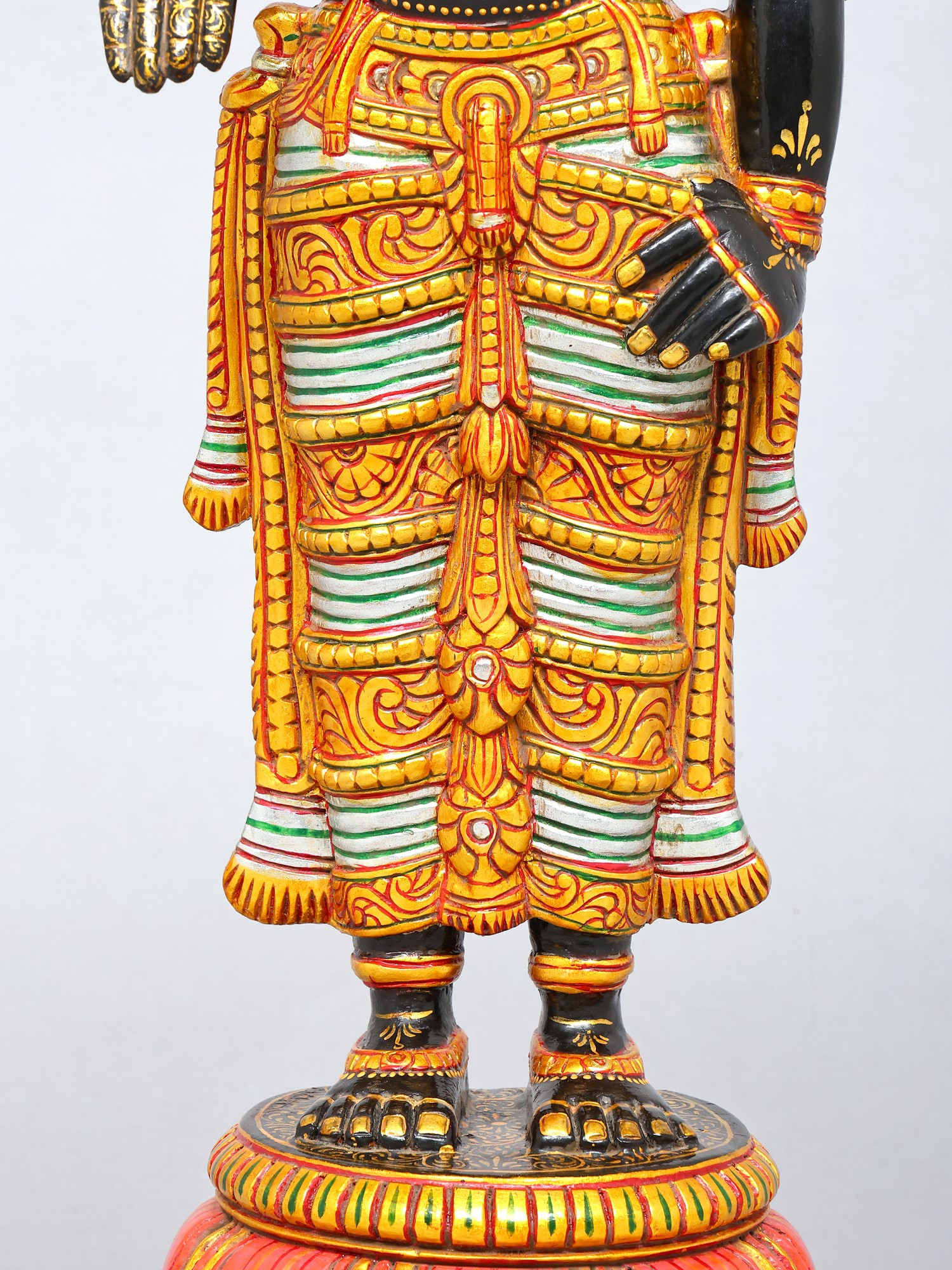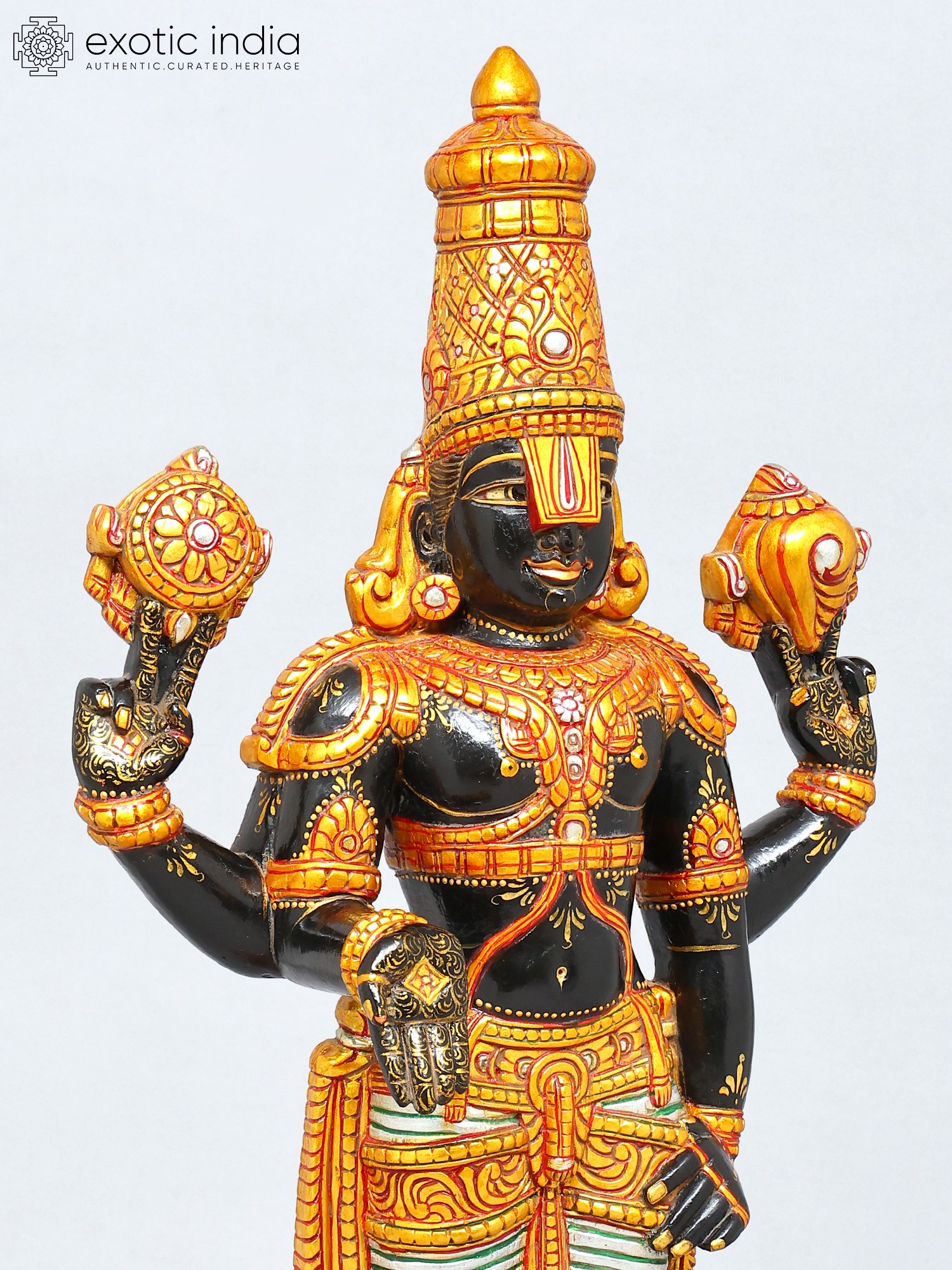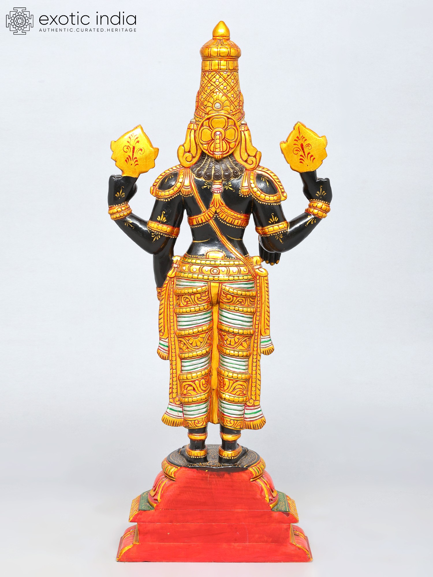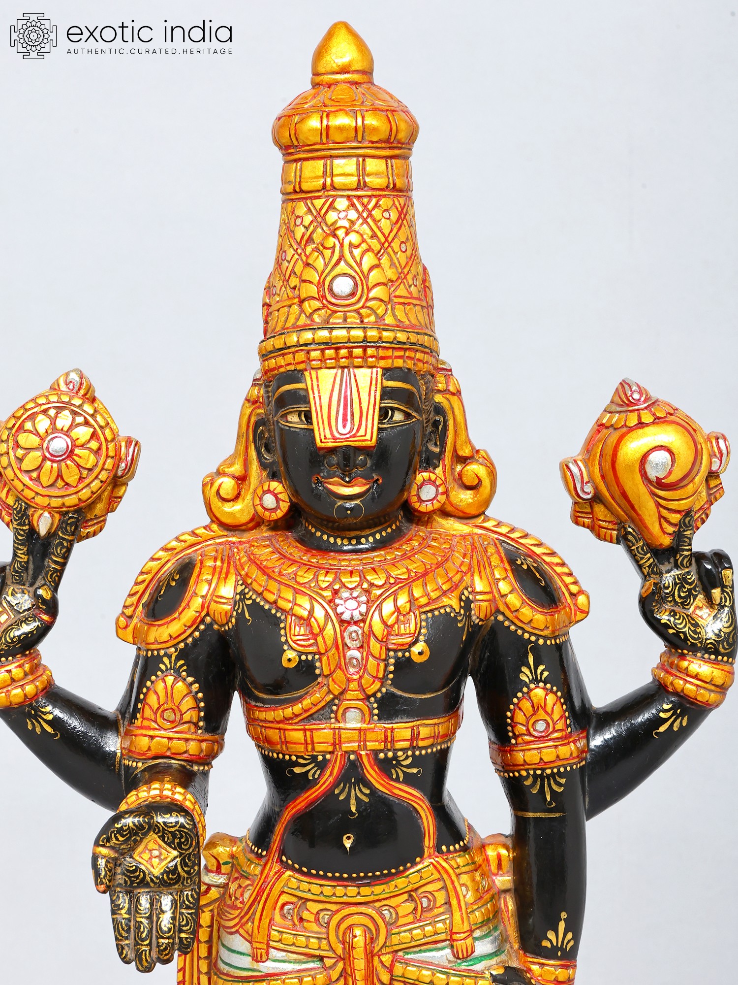 32" Large Beautifully Carved and Hand-Painted Tirupati Balaji (Venkateshvara) | Wood Carved Statue