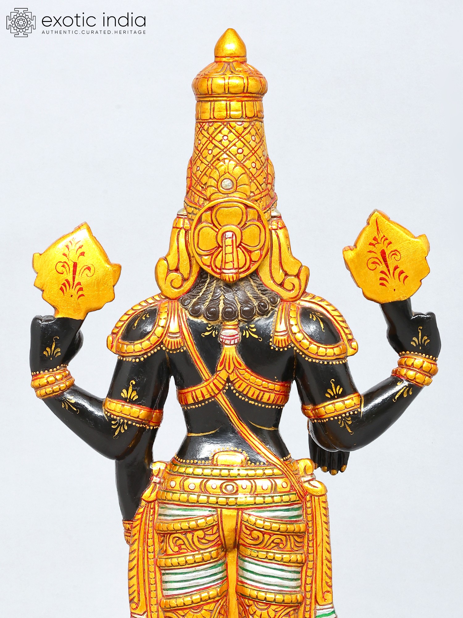 Lord Tirupati Balaji (Venkateshvara) - 12" Wooden Deity Sculpture