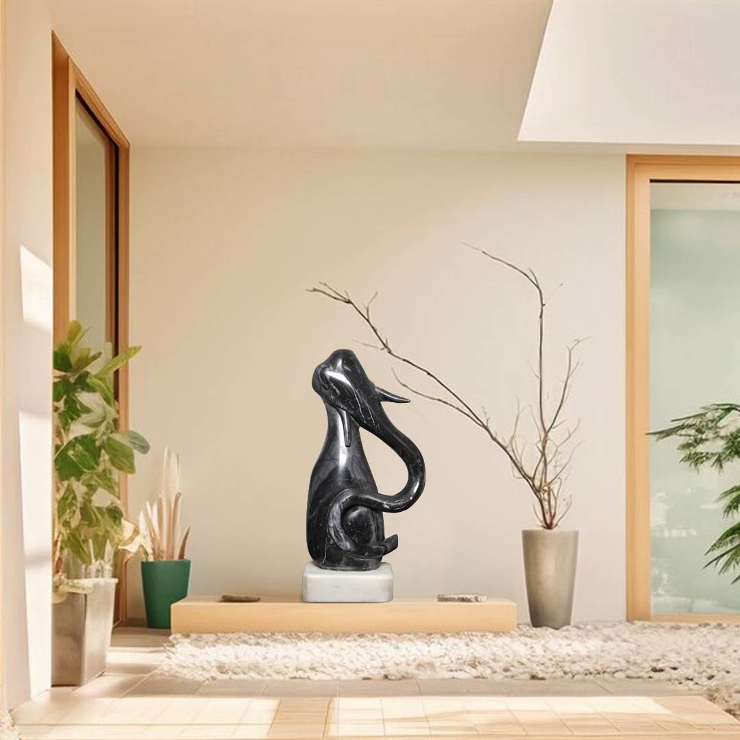66" Large Leaf Ganesha | Modern Green Stone Statue
