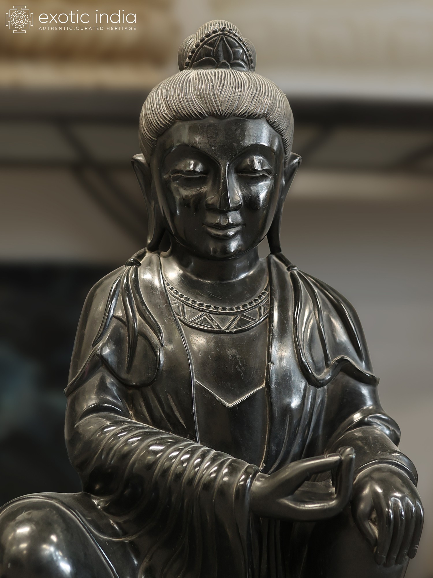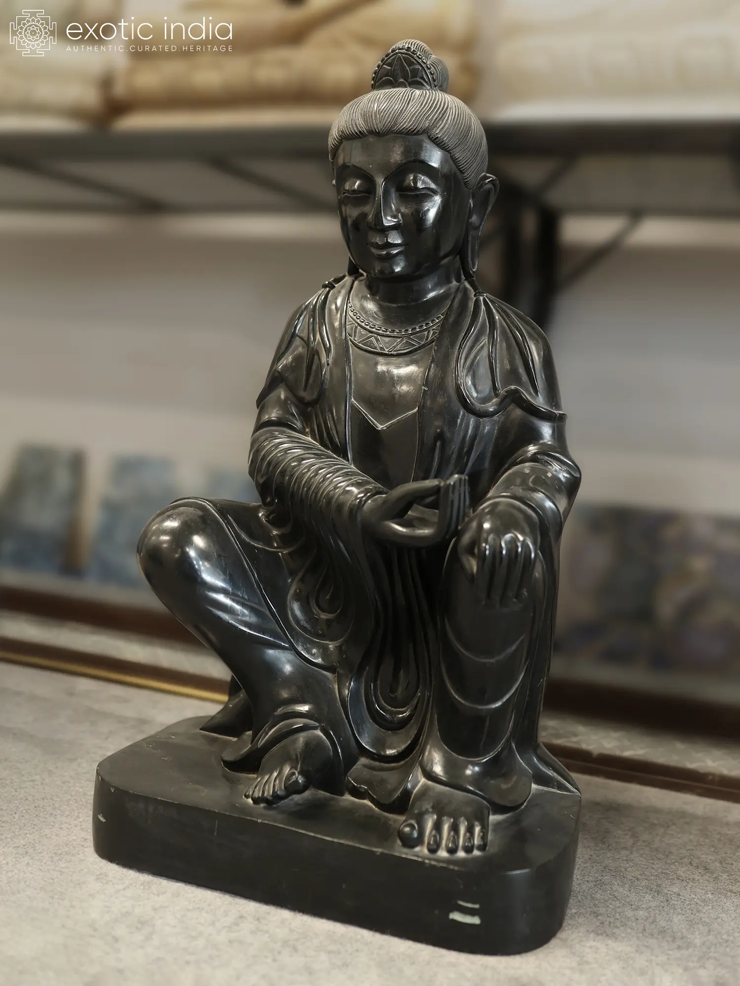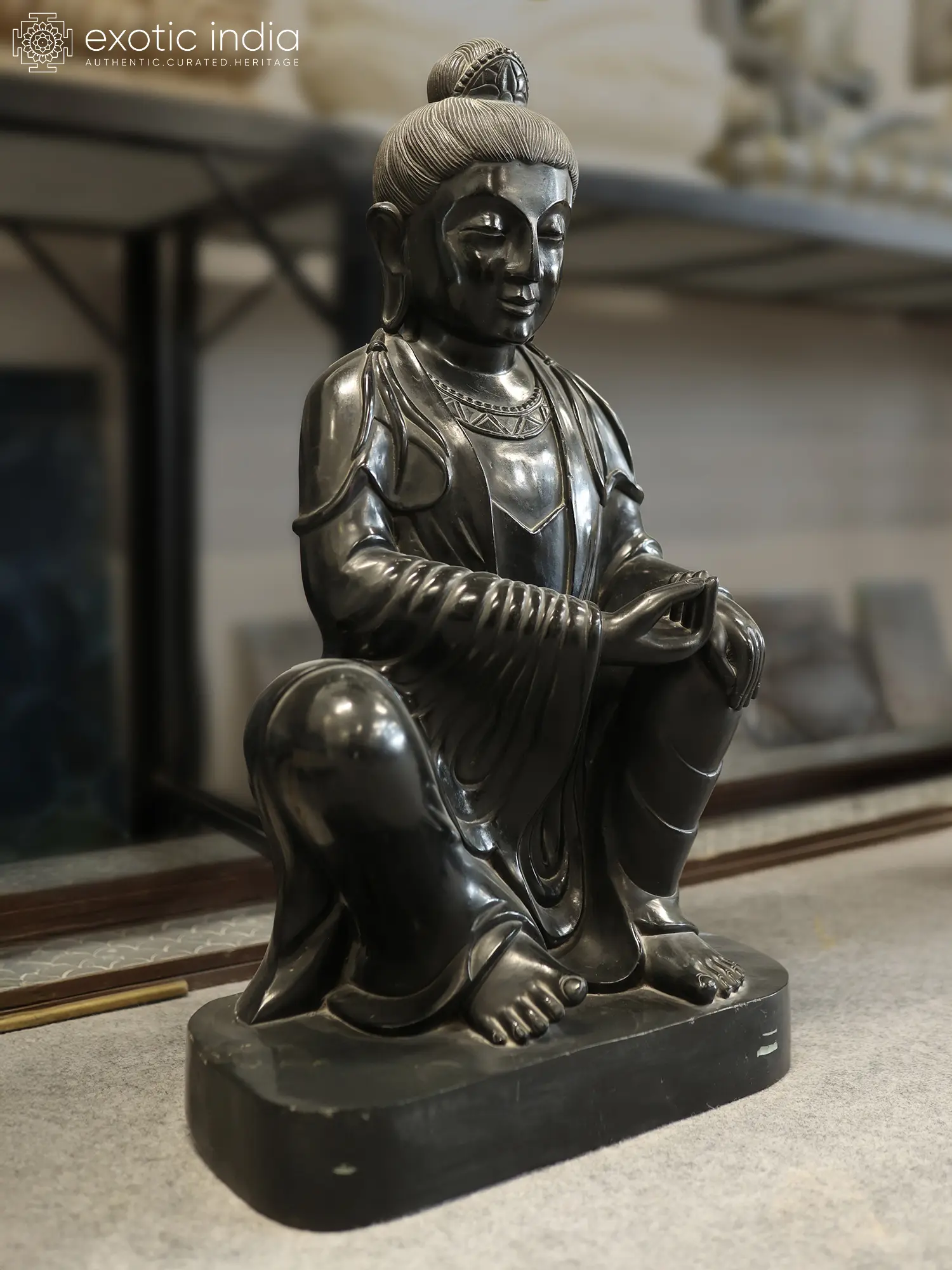 33" Bodhisattva - Lord Buddha | Black Marble Statue | Exquisite Indian Art