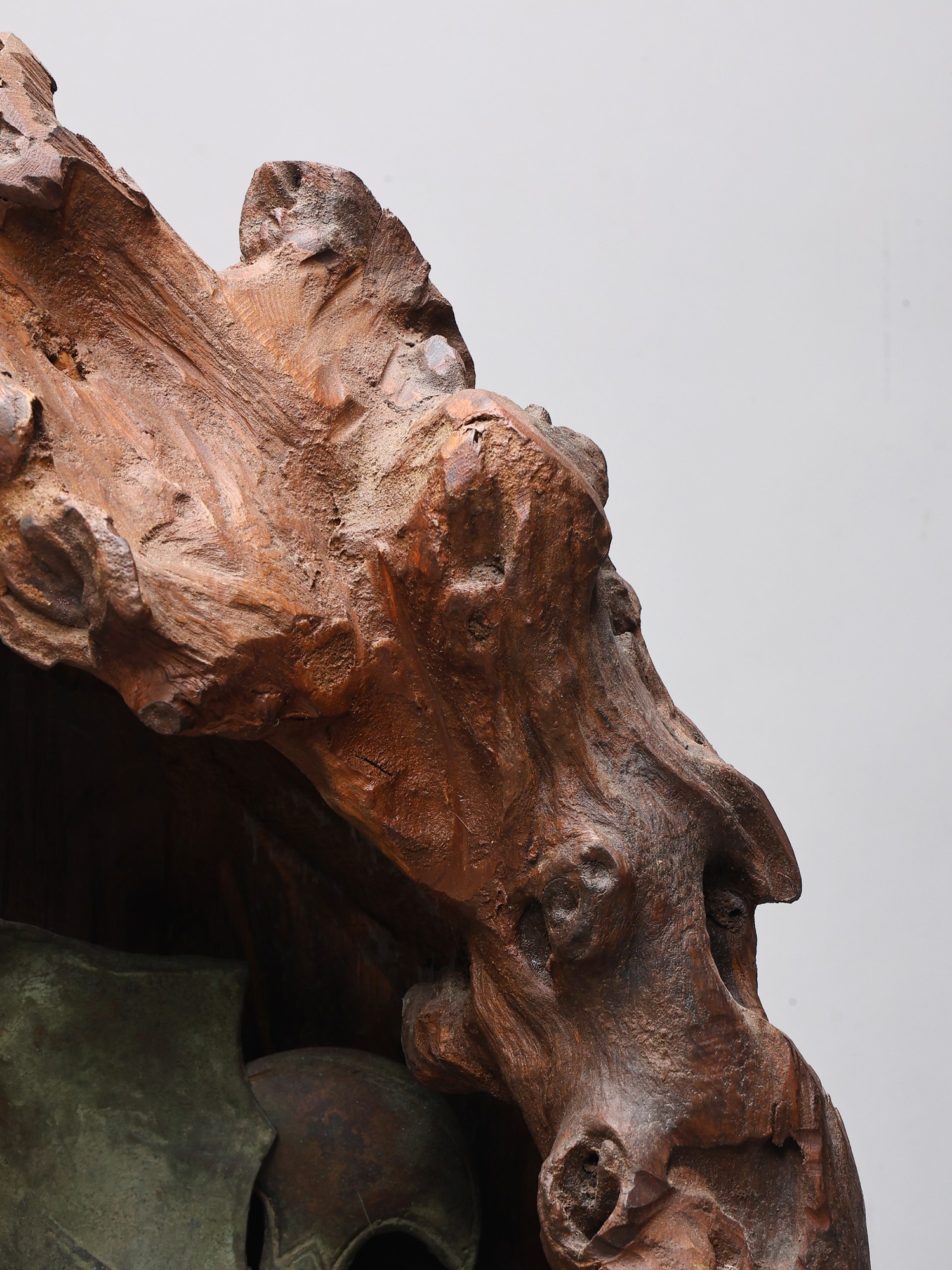 15" Wood Elephant On Ball With Lotus Base | Handmade Rosewood Figurine