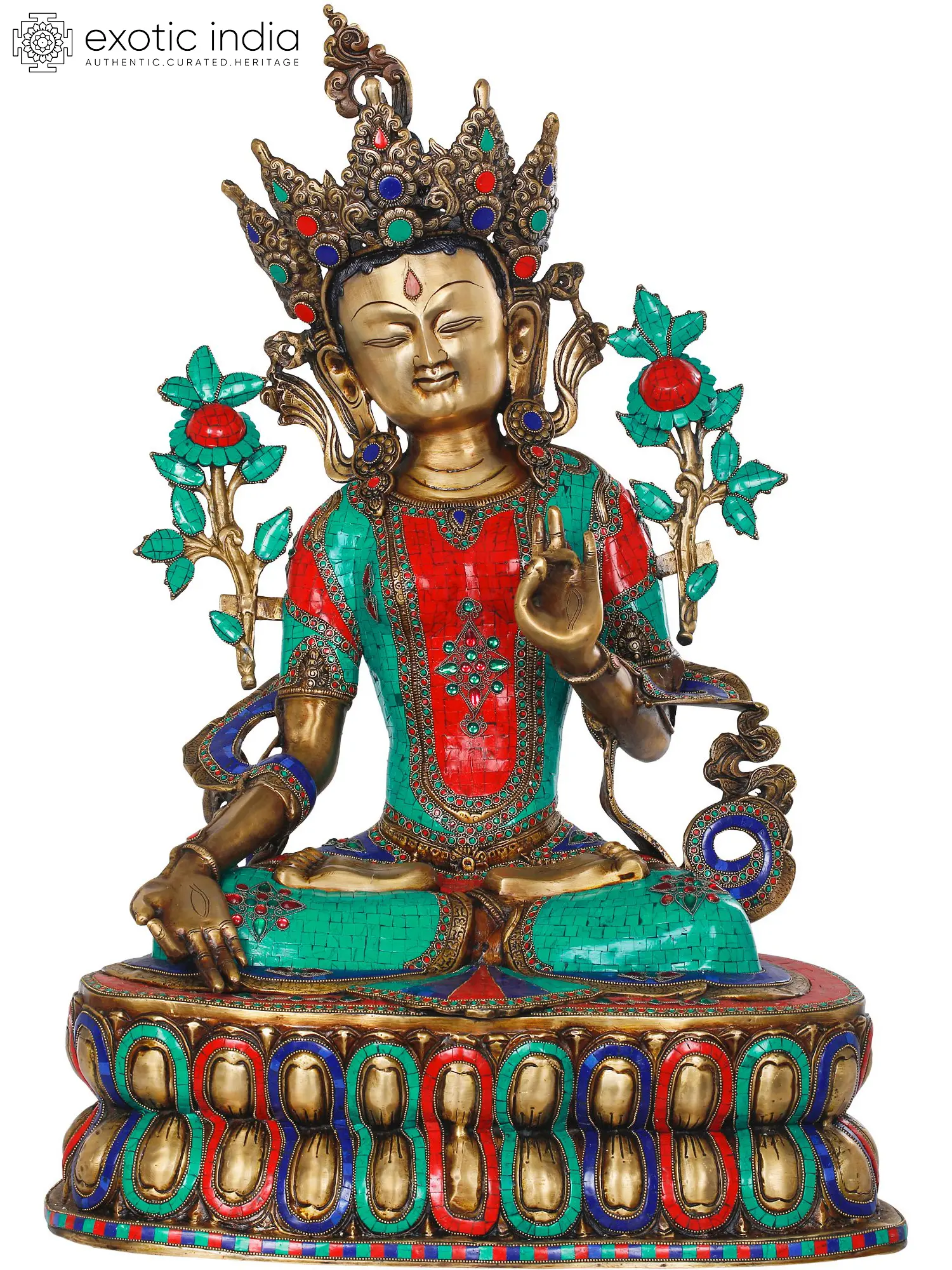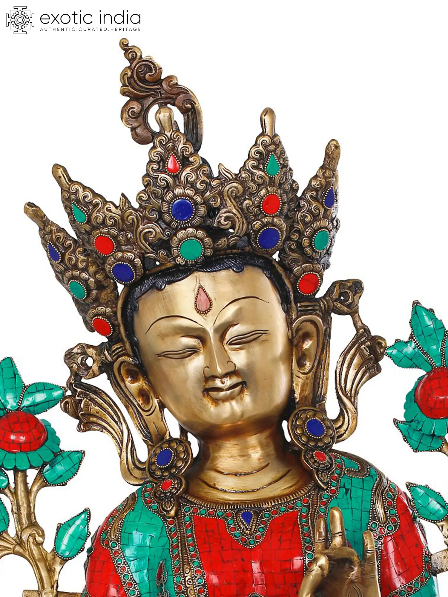 33" White Tara, The Supreme Female Deity In Tibetan Buddhism (Large Size) In Brass | Handmade | Made In India