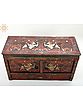 This exquisite hand-painted wooden chest embodies the rich artistic heritage and spiritual depth of Tibetan culture. Adorned with vibrant motifs and mythical creatures, it serves not only as a beautiful decorative piece but also as a vessel steeped in tradition. The deep red base color evokes a sense of warmth and auspiciousness, commonly associated with protection and good fortune in Tibetan symbolism.