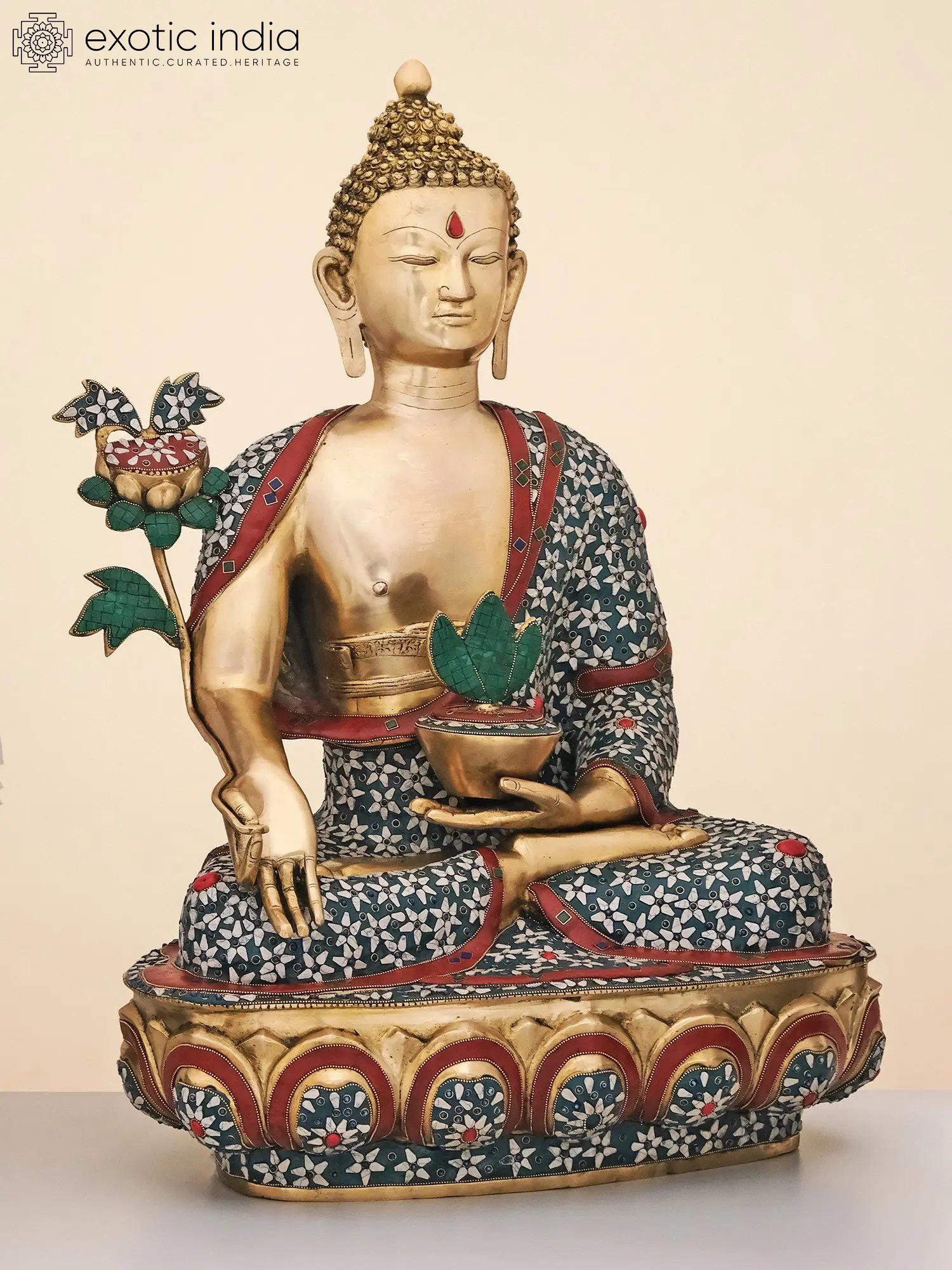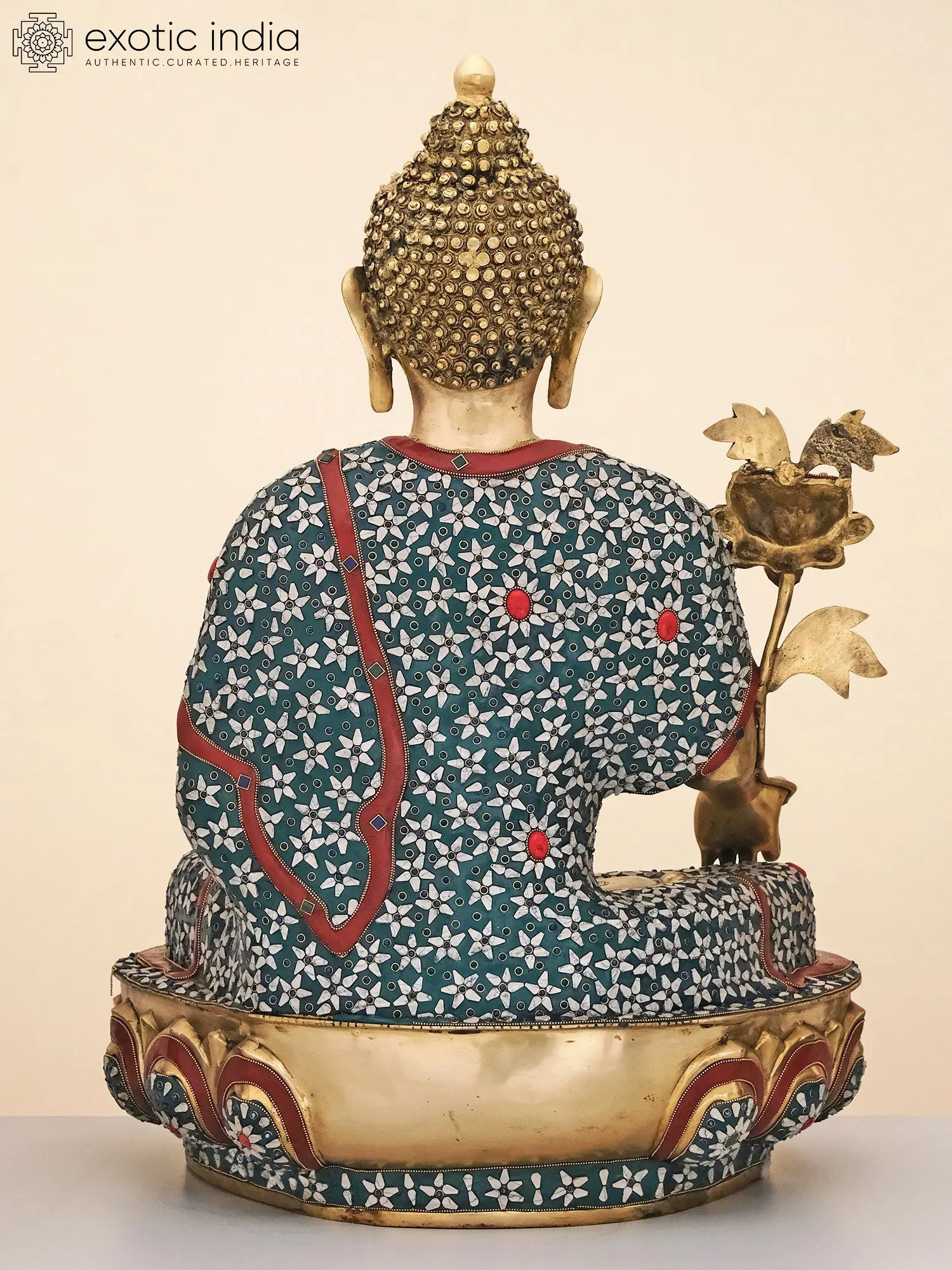 34" Large Brass Medicine Buddha with Inlay Work | Handmade