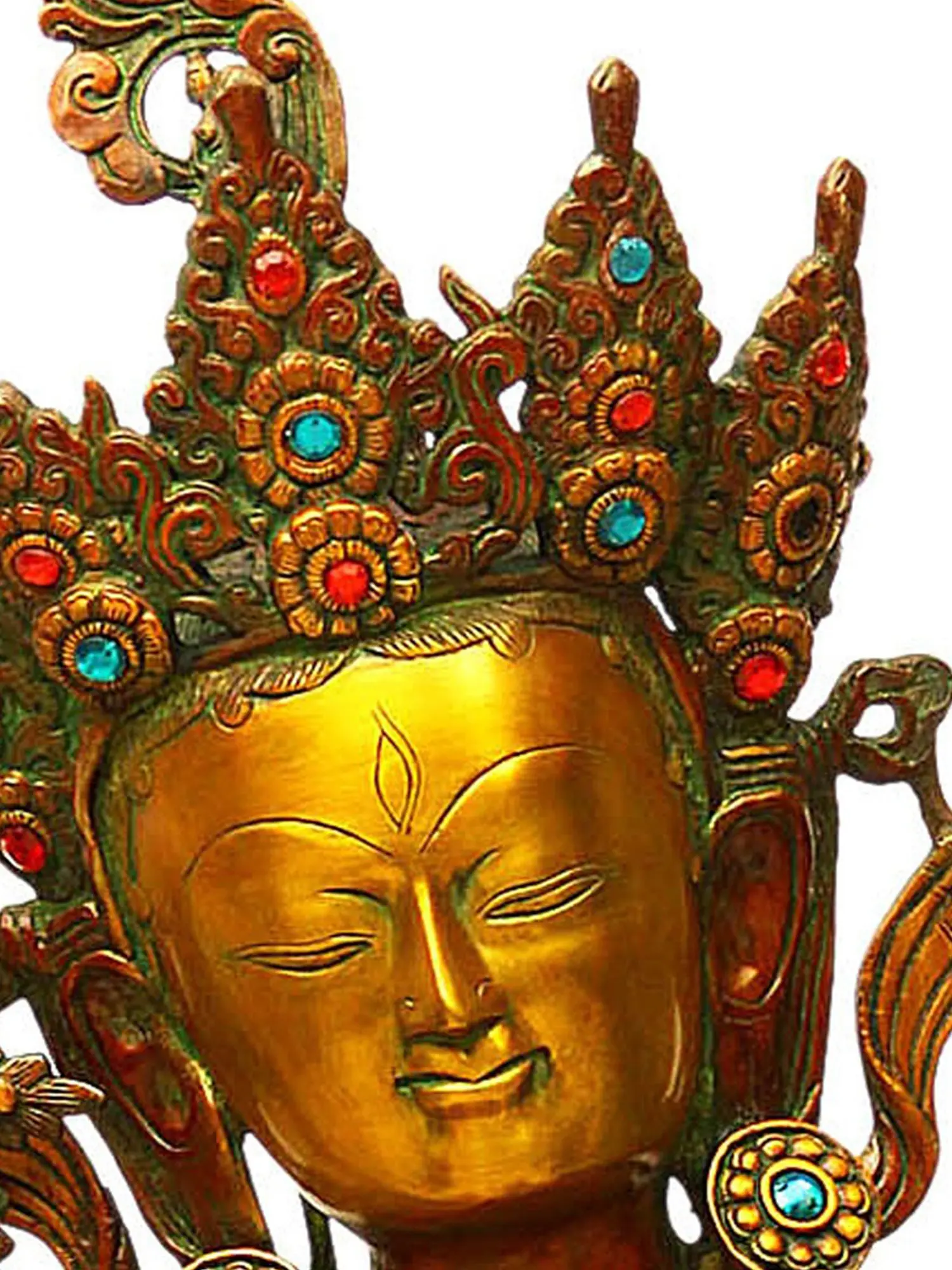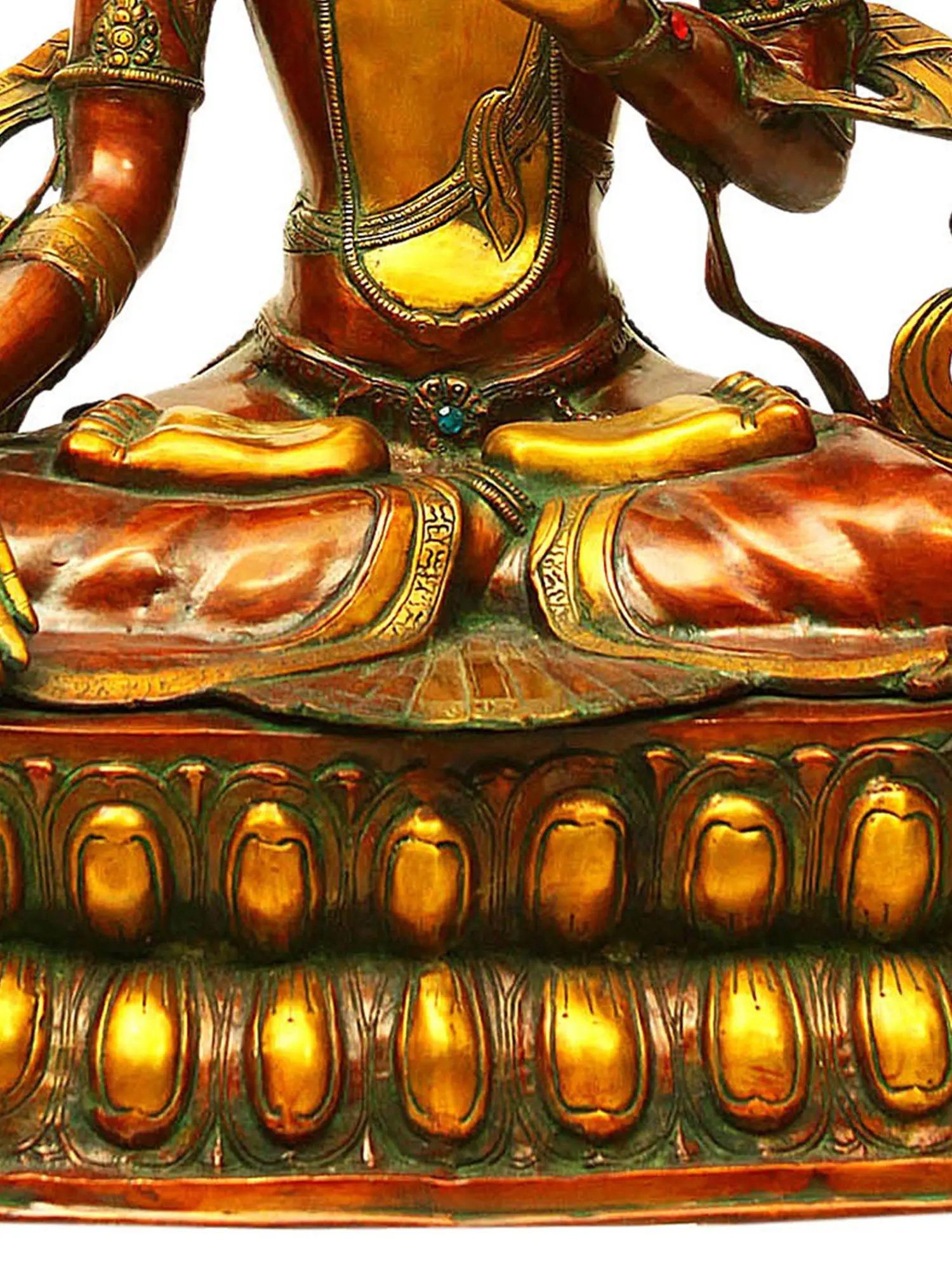 Tara is an important and revered deity in Tibetan Buddhism who appears as a female Bodhisattva. Buddhist monks and followers meditate on the image or deity of Tara to develop some good qualities such as compassion and kindness. Tara is known as the mother of compassion or liberation and is considered the female aspect of Avalokiteshvara (who possesses the compassion of all Buddhas). She manifests in different forms such as Green Tara and White Tara. Green Tara is associated with fearlessness and White Tara, as radiant as the moon, is associated with good health. Tara also appears in red, blue, and yellow colors.